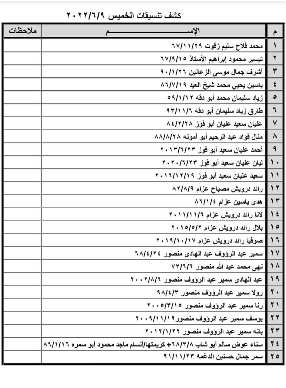 تعلن الهيئة العامة للمعابر والحدود بوزارة الداخلية والأمن الوطني عن وصول كشف "تنسيقات مصرية" للسفر عبر معبر رفح البري يوم غد الخميس (9 يونيو)، والذين عليهم التوجه لإجراء فحص كورونا بدءاً من الساعة 9 صباح اليوم في المراكز الصحية المعلن عنها مسبقاً بجميع المحافظات.