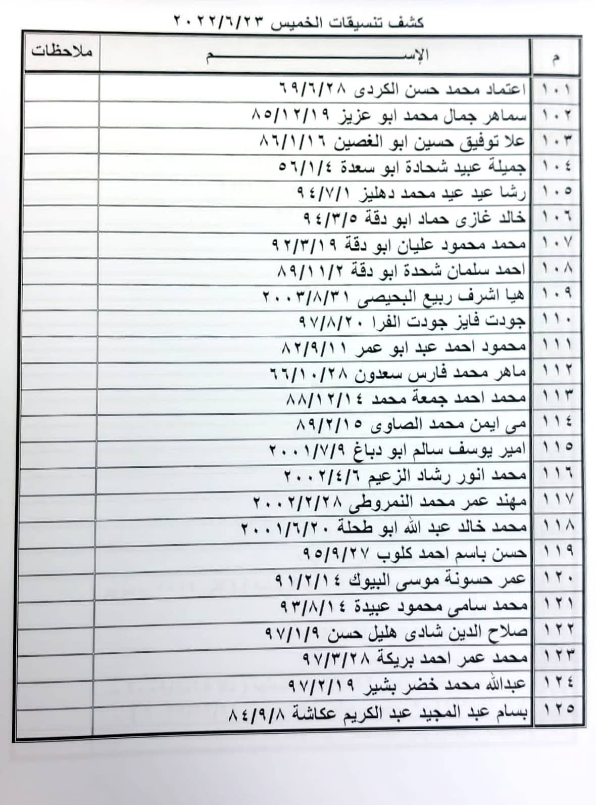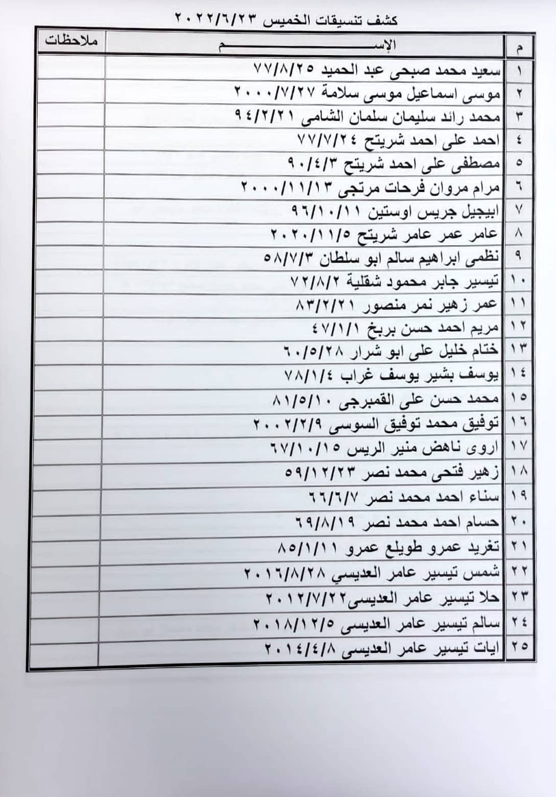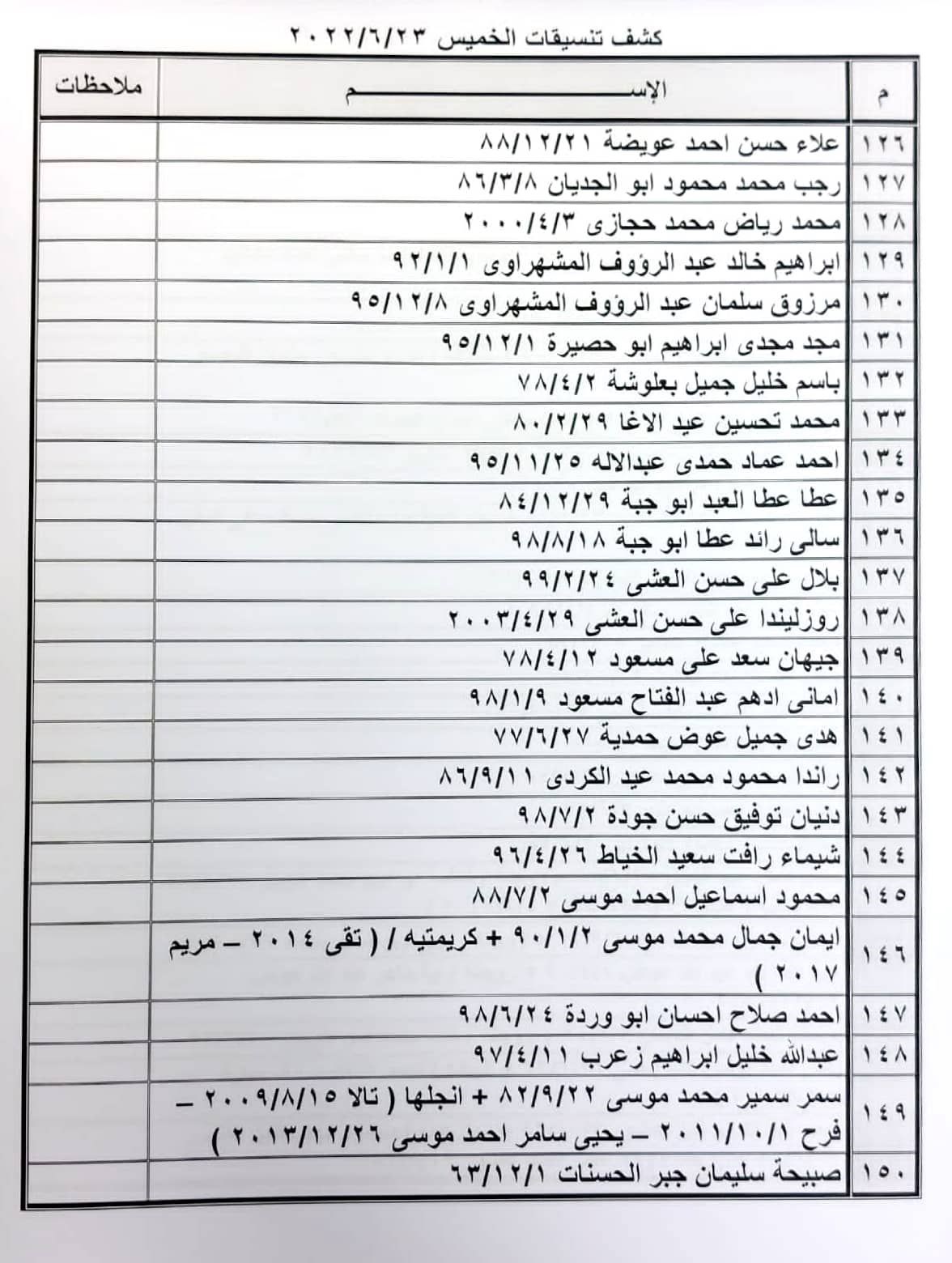 تعلن الهيئة العامة للمعابر والحدود بوزارة الداخلية والأمن الوطني عن وصول كشف "تنسيقات مصرية" للسفر عبر معبر رفح البري يوم غد الخميس (23 يونيو)، والذين عليهم التواجد س 8:00 صباحاً في الصالة الخارجية للمعبر لتسهيل سفرهم.