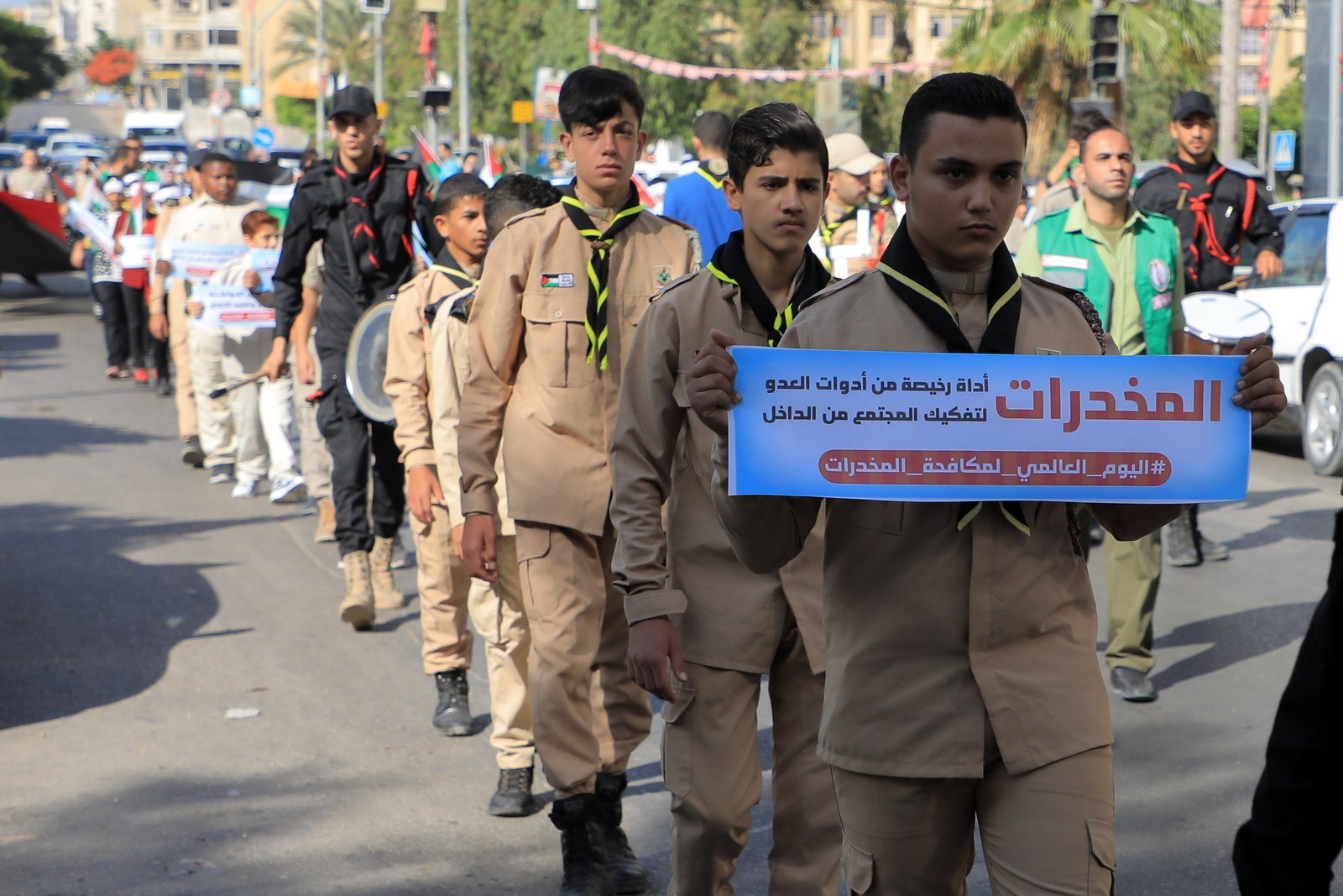 وأُطلقت فعاليات إحياء "اليوم العالمي لمكافحة المخدرات"، الذي يصادف السادس والعشرين من حزيران لكل عام، من ساحة الكتيبة غربي مدينة غزة مرورًا بمدينة عرفات للشرطة "الجوازات"، وانتهاءً بمقر المجلس التشريعي، تحت عنوان "شباب بلا مخدرات 2".