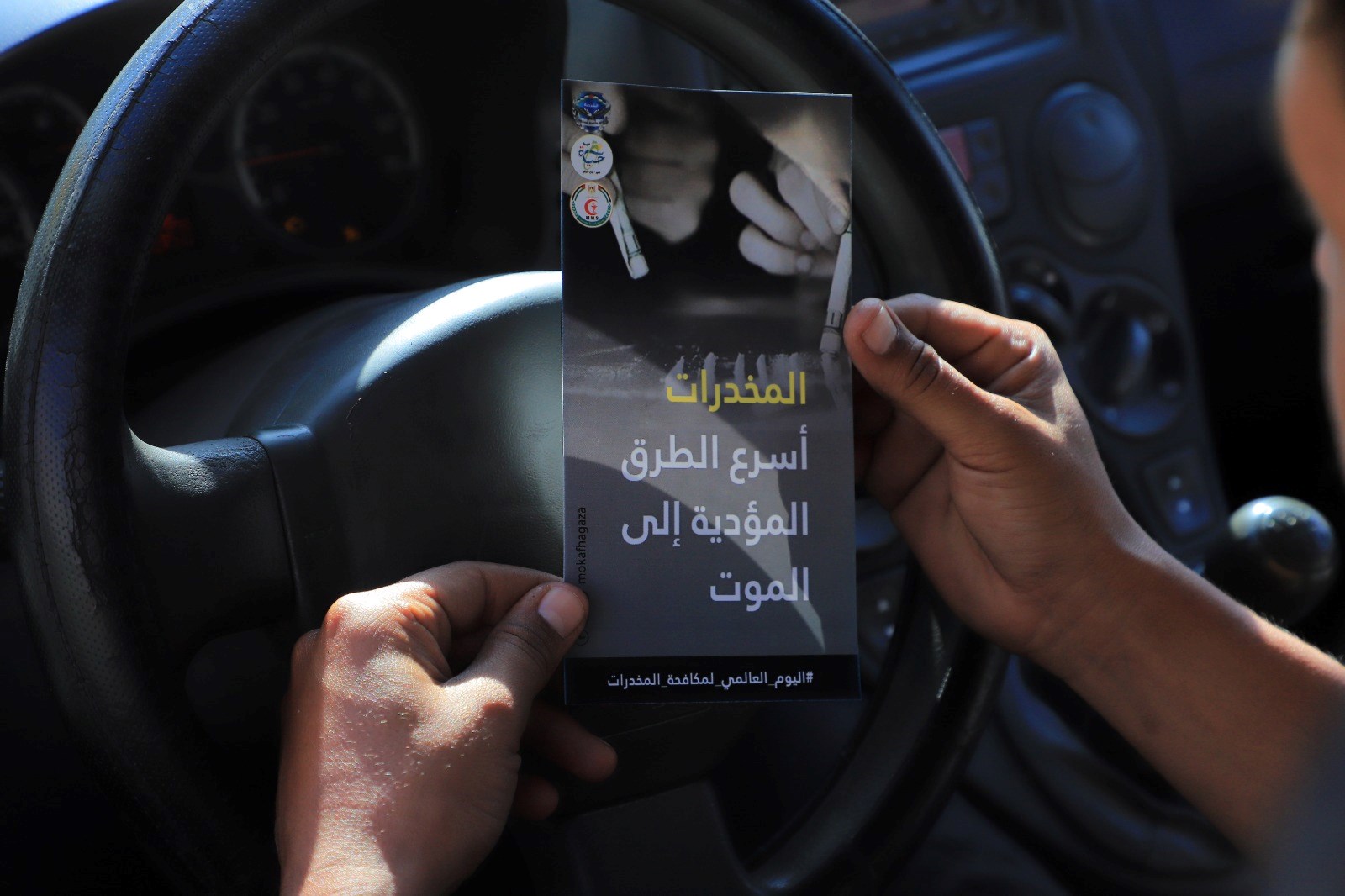 واختتمت فعاليات اليوم العالمي لمكافحة المخدرات بتوزيع "بوسترات" على المواطنين والسائقين على مفترقات الطرق وأمام المؤسسات التعليمية في محافظات قطاع غزة.
