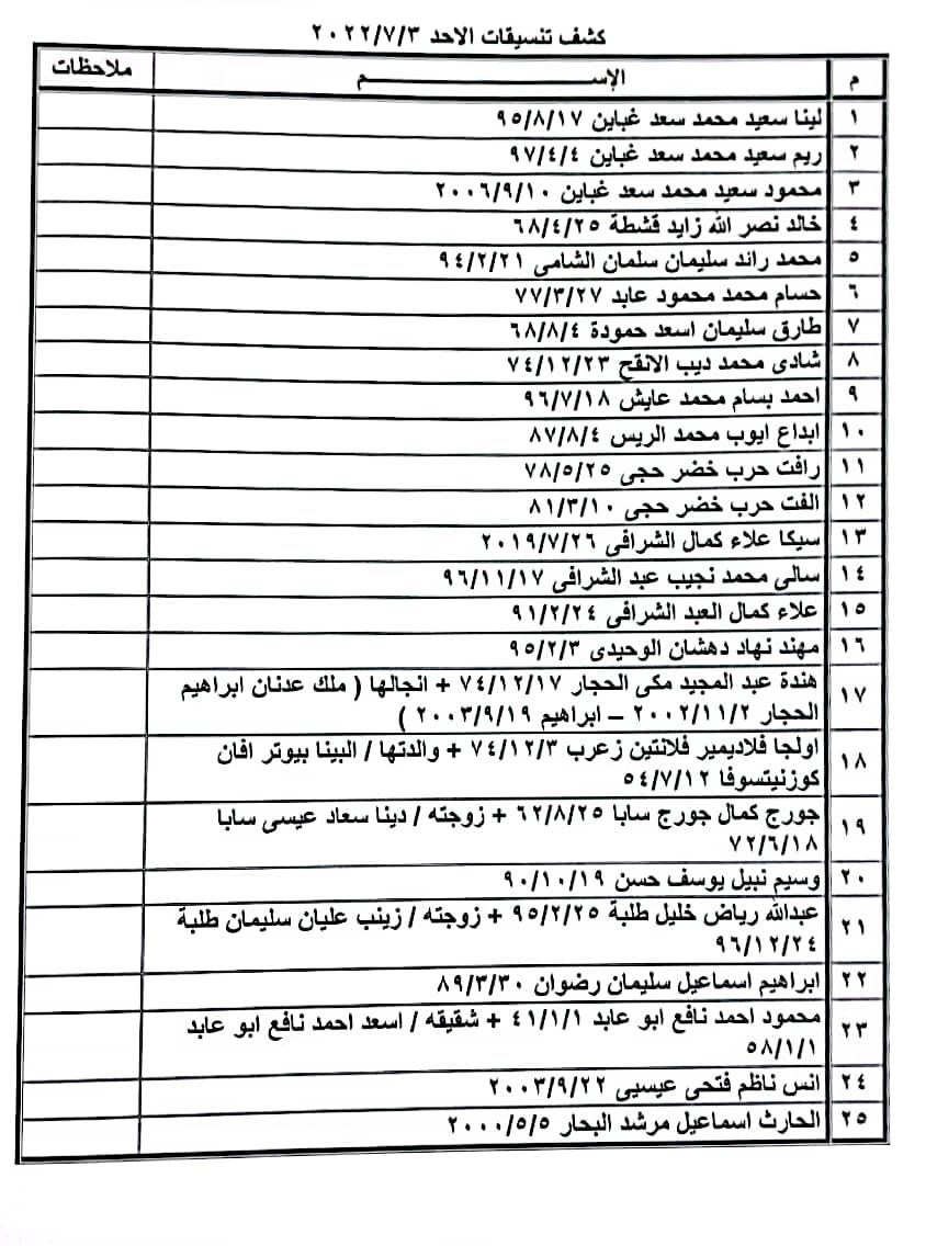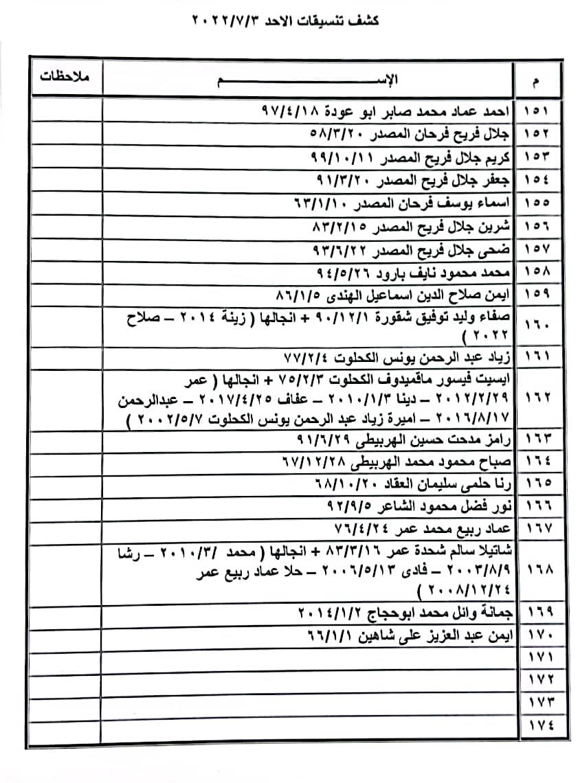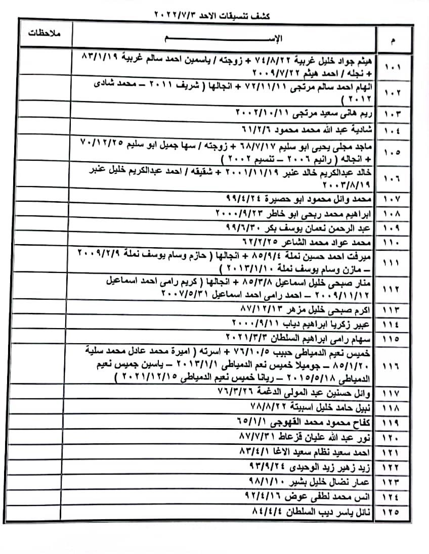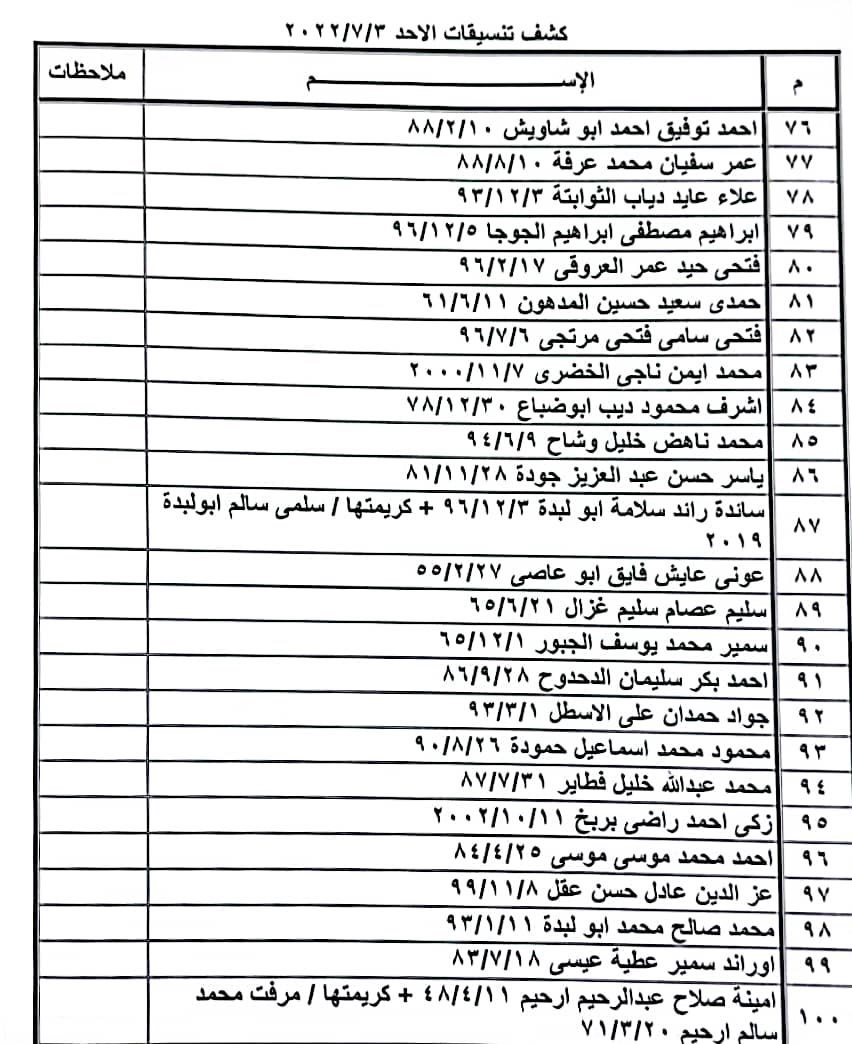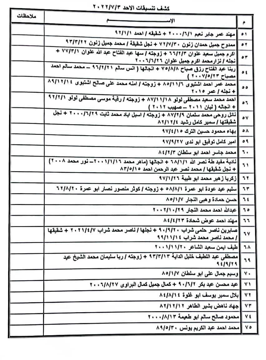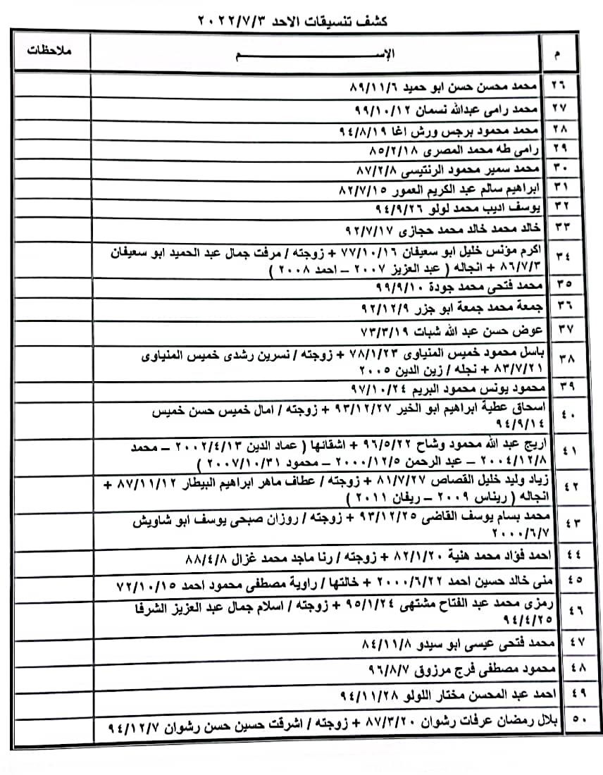 تعلن الهيئة العامة للمعابر والحدود بوزارة الداخلية والأمن الوطني عن وصول كشف "تنسيقات مصرية" للسفر عبر معبر رفح البري يوم الأحد (3 يوليو)، والذين عليهم التواجد س 8:00 صباحاً في الصالة الخارجية للمعبر لتسهيل سفرهم.
