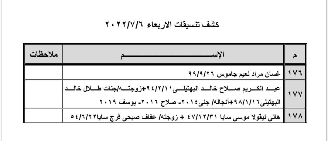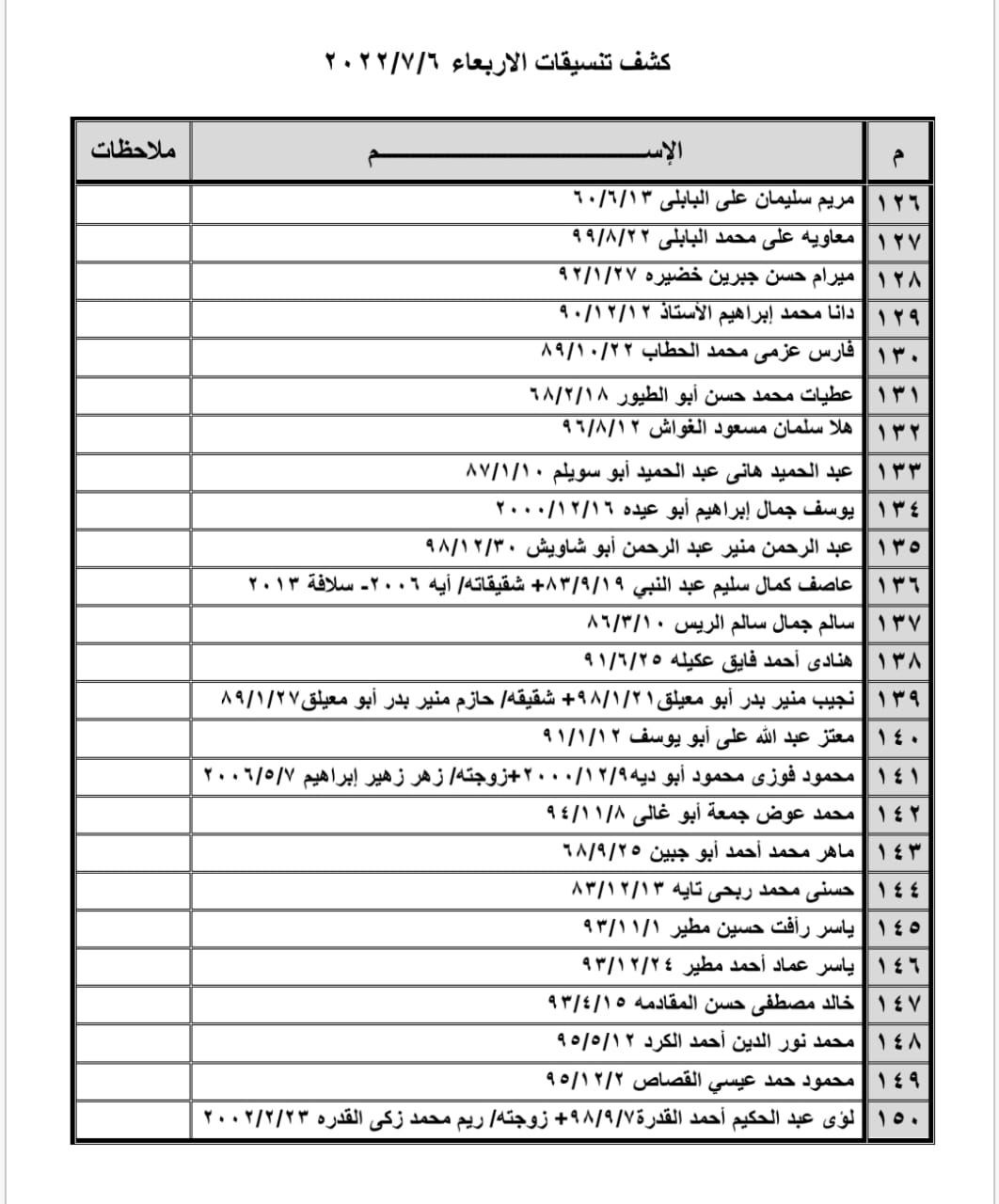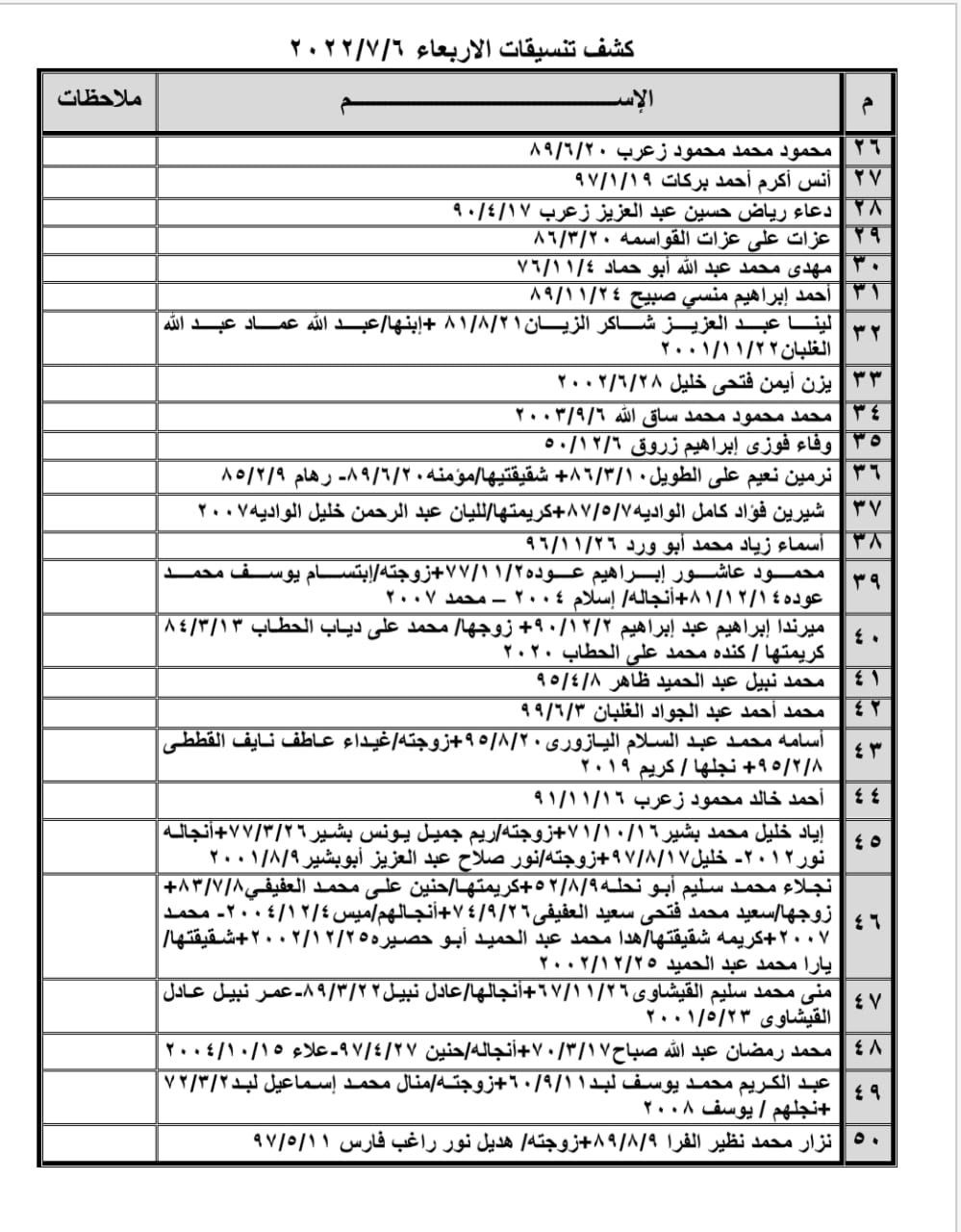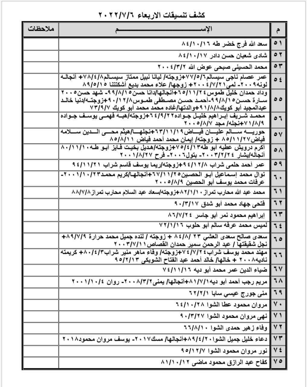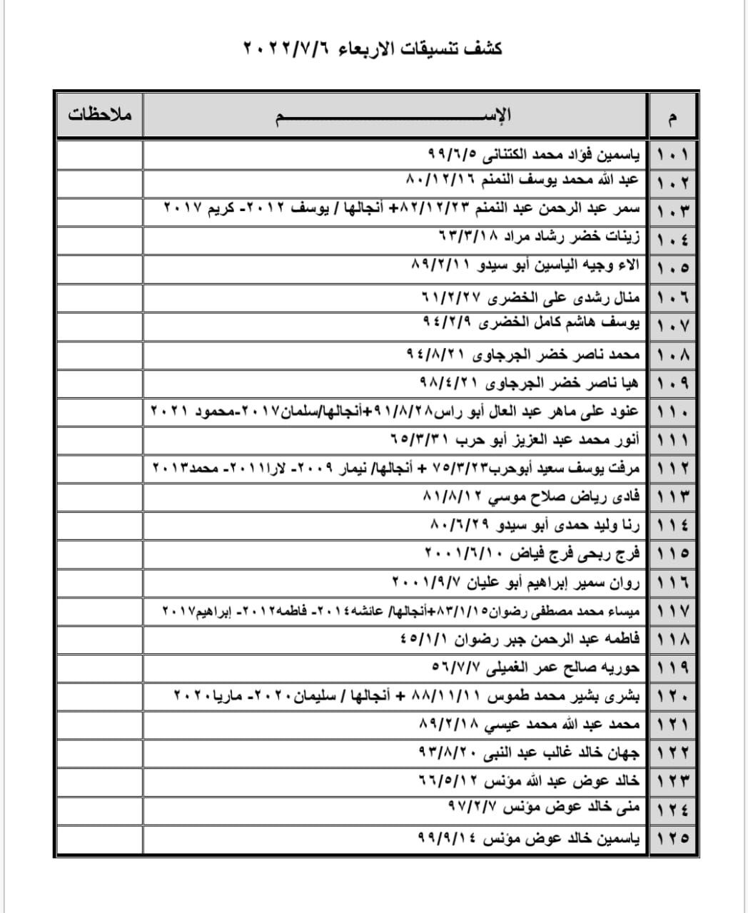 تعلن الهيئة العامة للمعابر والحدود بوزارة الداخلية والأمن الوطني عن وصول كشف "تنسيقات مصرية" للسفر عبر معبر رفح البري يوم الأربعاء (6 يوليو)، والذين عليهم التواجد س 8:00 صباحاً في الصالة الخارجية للمعبر لتسهيل سفرهم.