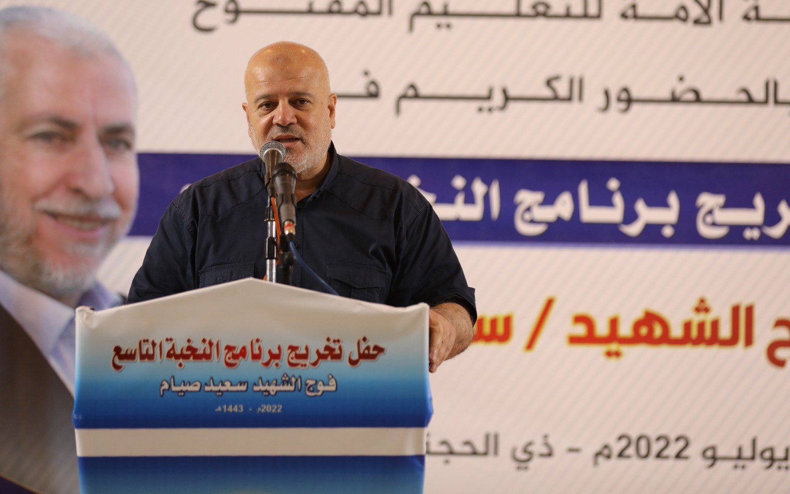 كما وشارك بحفل الاختتام اللواء محمد خلف مدير عام المديرية العامة للتدريب بالداخلية، ود. نصر الدين مدوخ رئيس جامعة الأمة، وذوي الشهيد الوزير سعيد صيام، ولفيف من قادة الأجهزة الأمنية، والطلبة الخريجين.