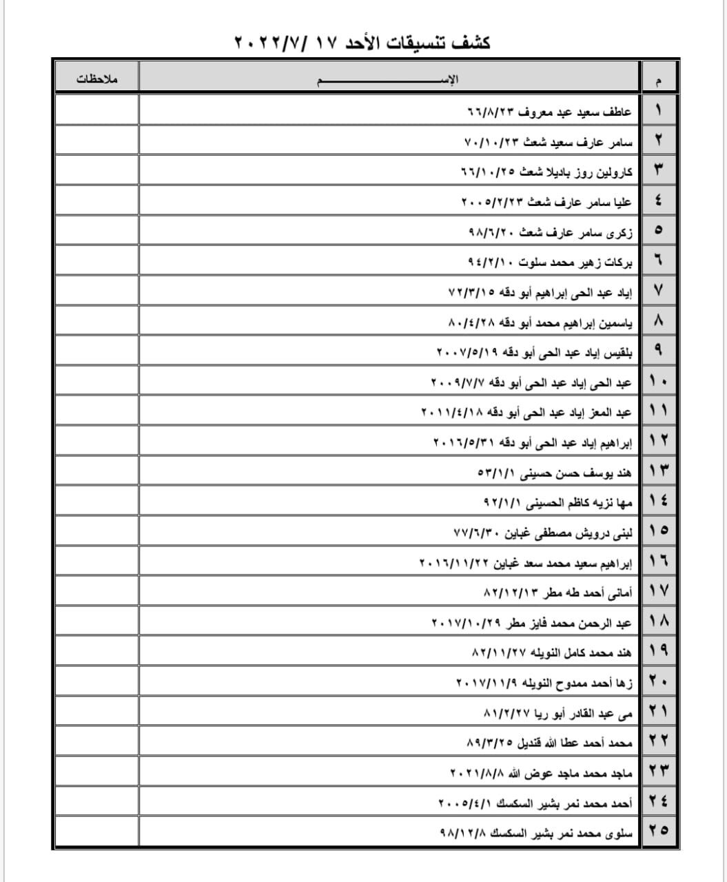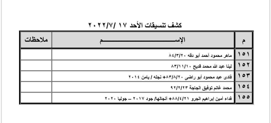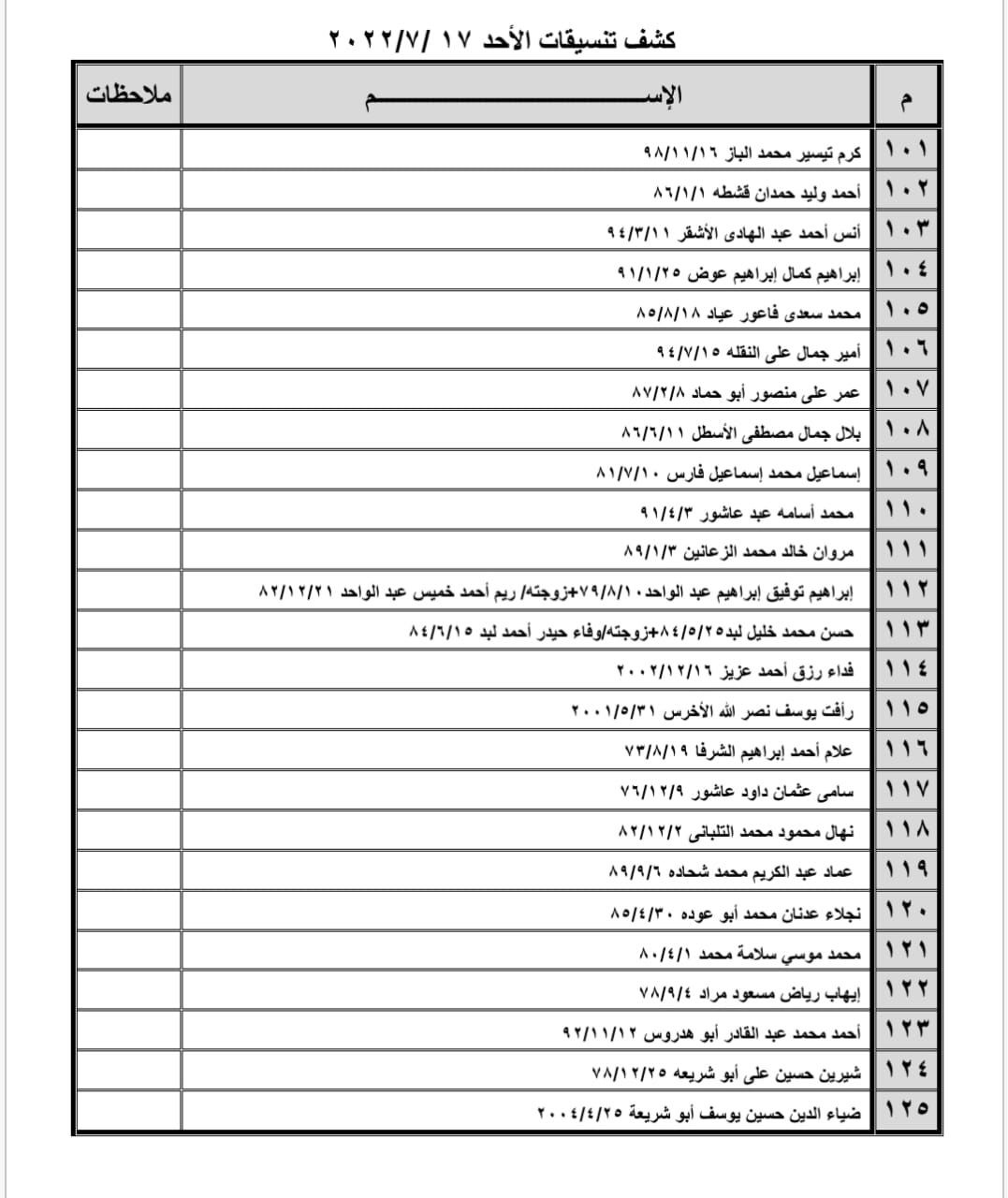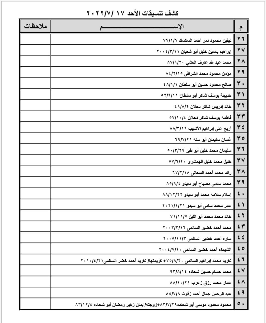 تعلن الهيئة العامة للمعابر والحدود بوزارة الداخلية والأمن الوطني عن وصول كشف "تنسيقات مصرية" للسفر عبر معبر رفح البري يوم الأحد (17 يوليو)، والذين عليهم التواجد س 8:00 صباحاً في الصالة الخارجية للمعبر لتسهيل سفرهم.