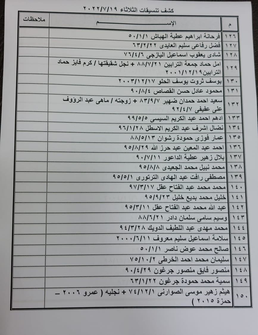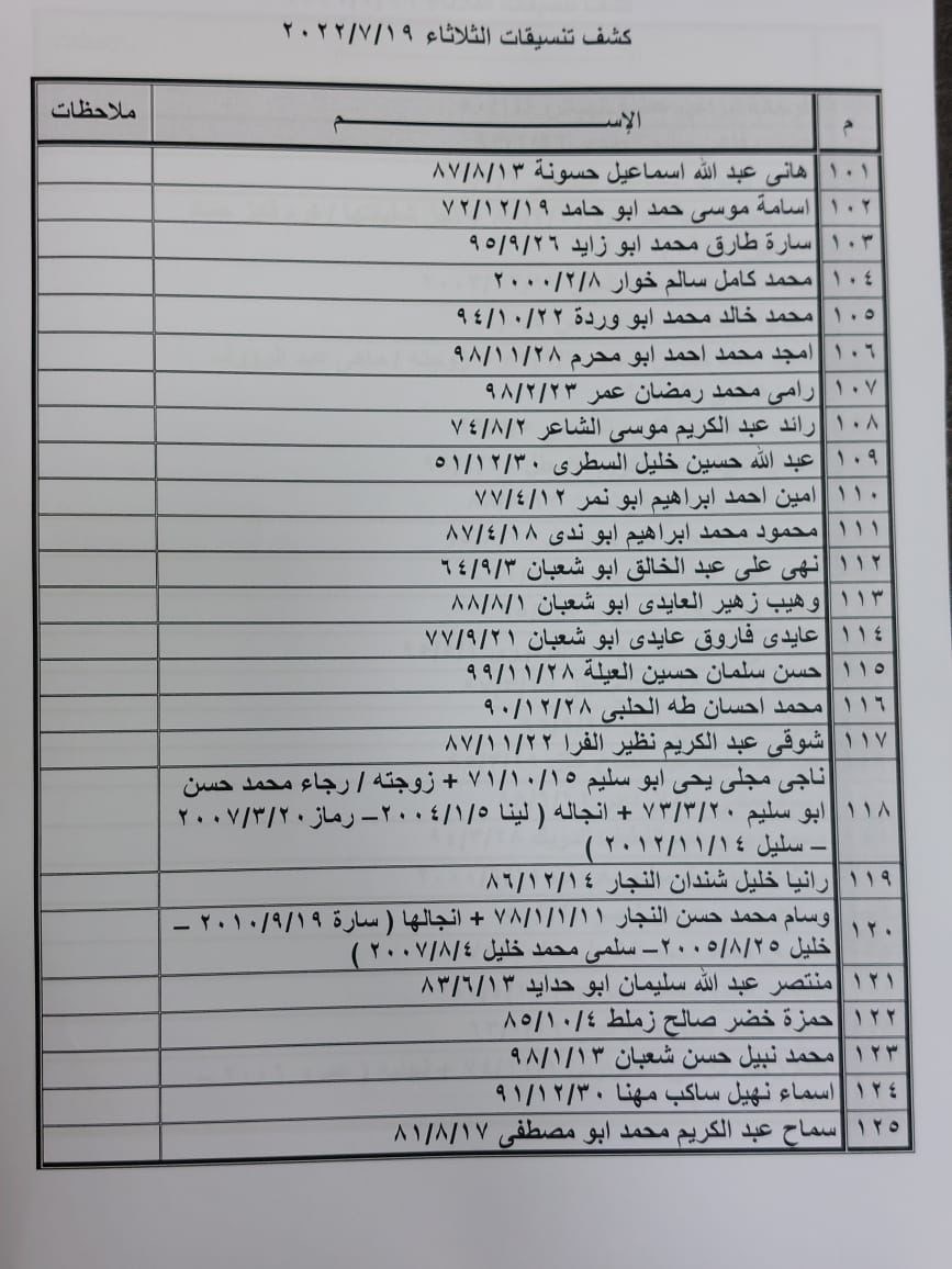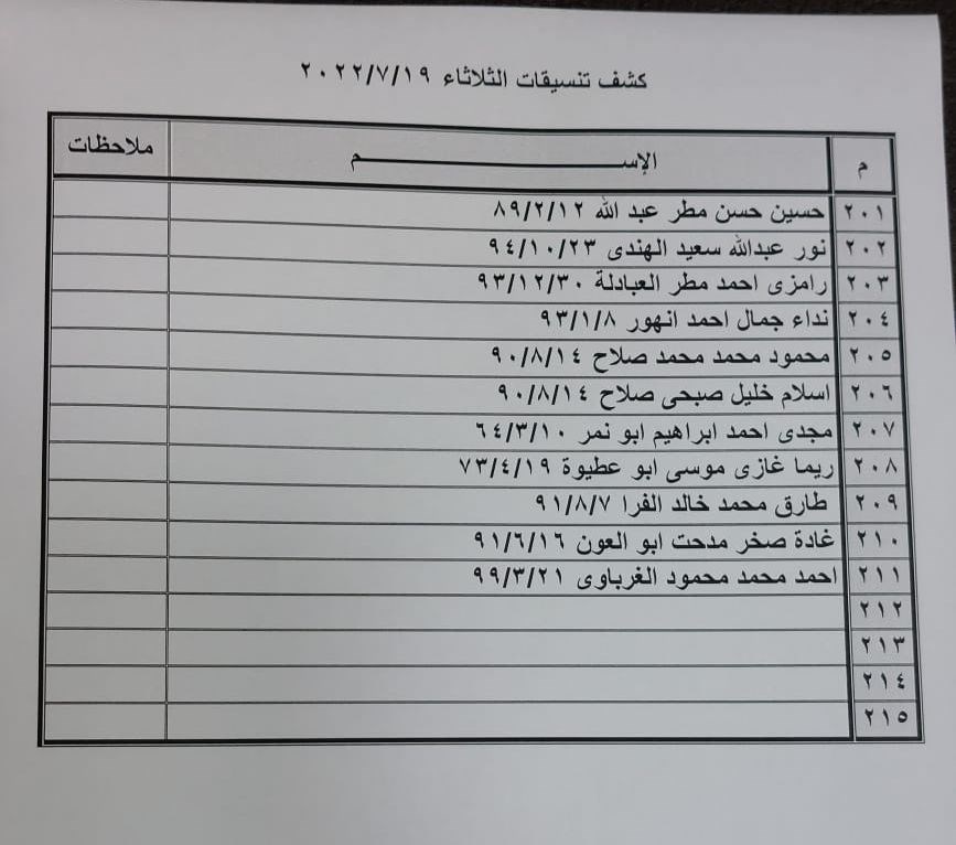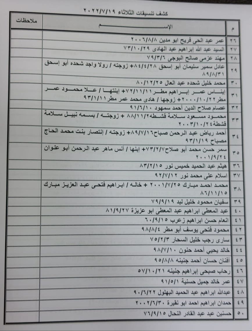 تعلن الهيئة العامة للمعابر والحدود بوزارة الداخلية والأمن الوطني عن وصول كشف "تنسيقات مصرية" للسفر عبر معبر رفح البري يوم الثلاثاء (19 يوليو)، والذين عليهم التواجد س 8:00 صباحاً في الصالة الخارجية للمعبر لتسهيل سفرهم.