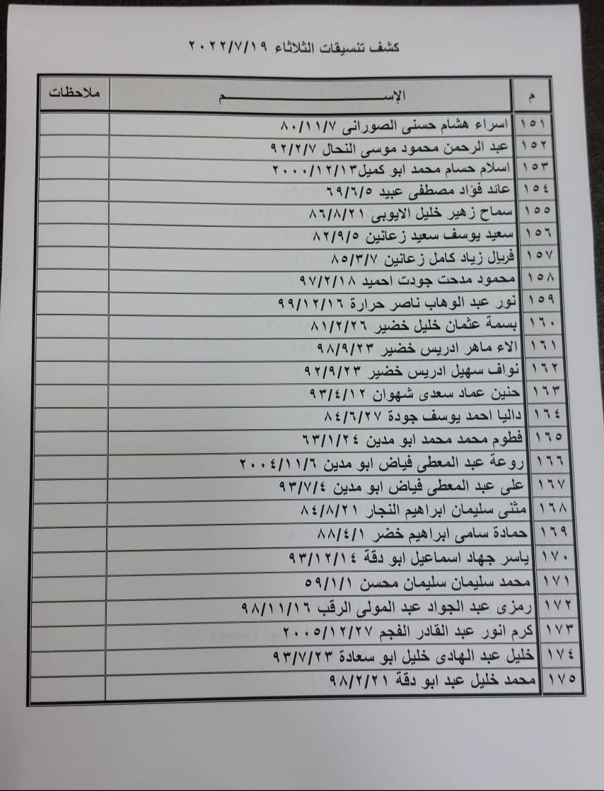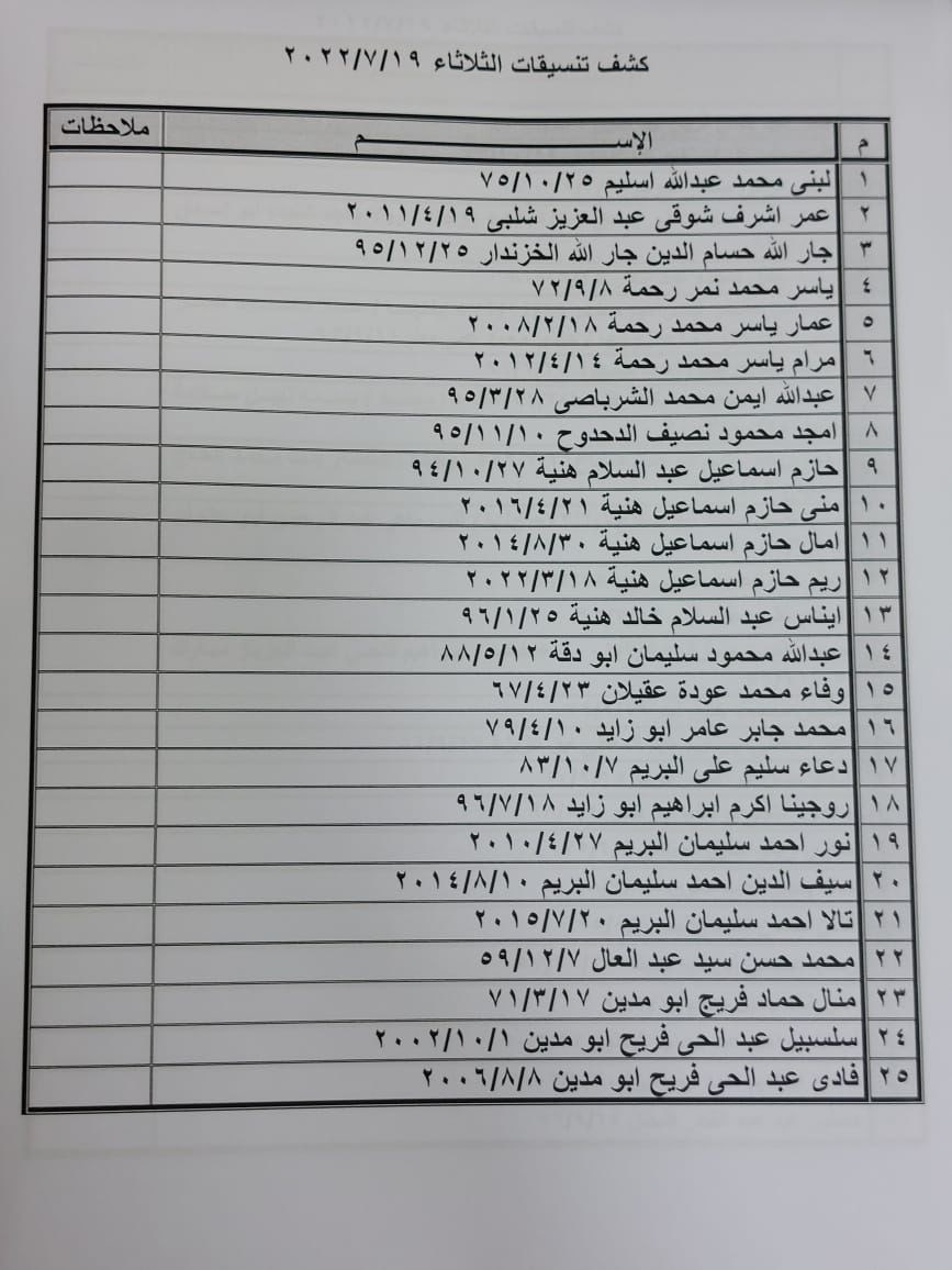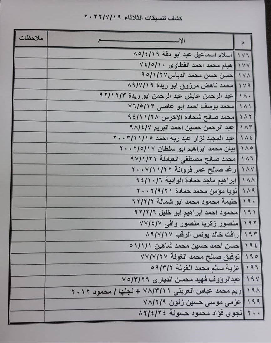 تعلن الهيئة العامة للمعابر والحدود بوزارة الداخلية والأمن الوطني عن وصول كشف "تنسيقات مصرية" للسفر عبر معبر رفح البري يوم الثلاثاء (19 يوليو)، والذين عليهم التواجد س 8:00 صباحاً في الصالة الخارجية للمعبر لتسهيل سفرهم.