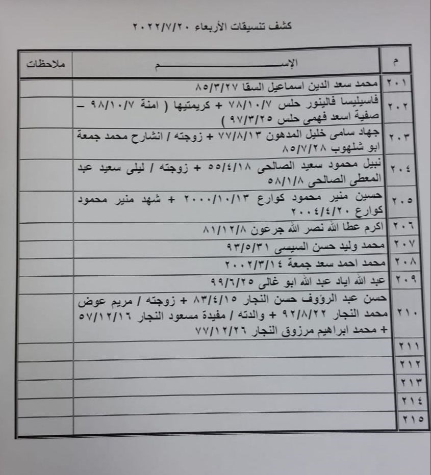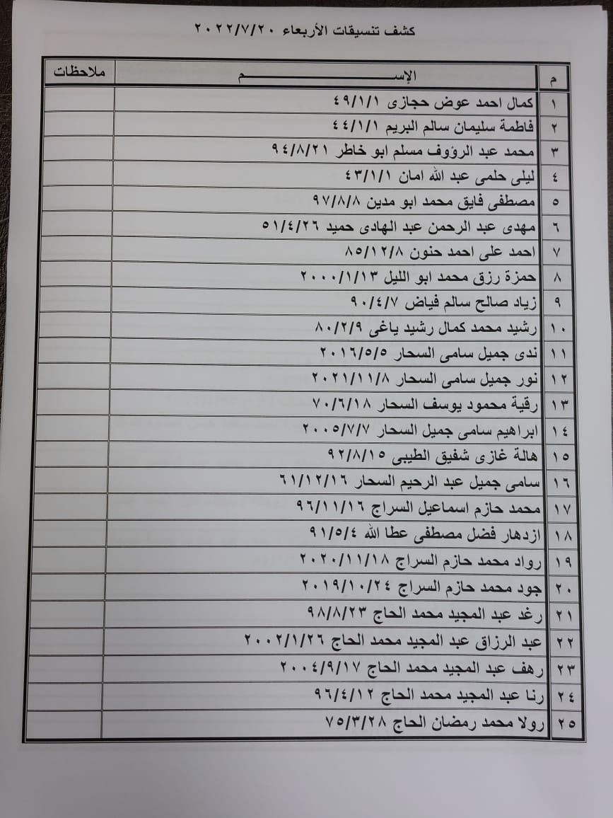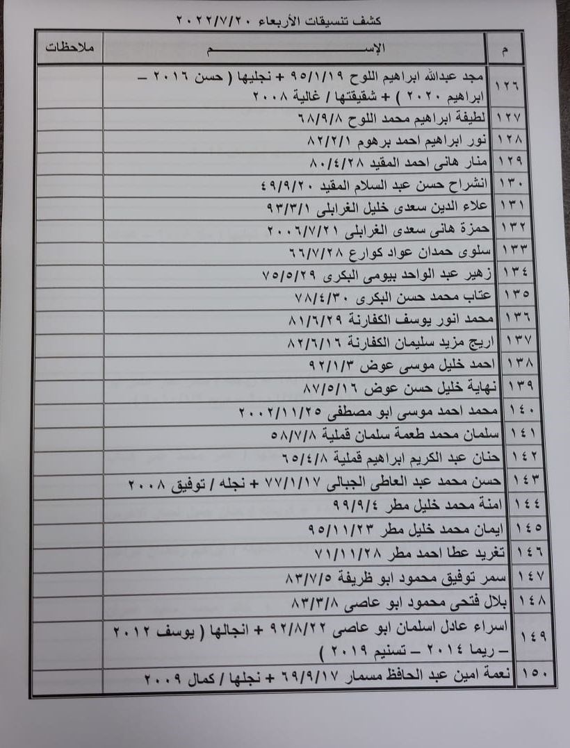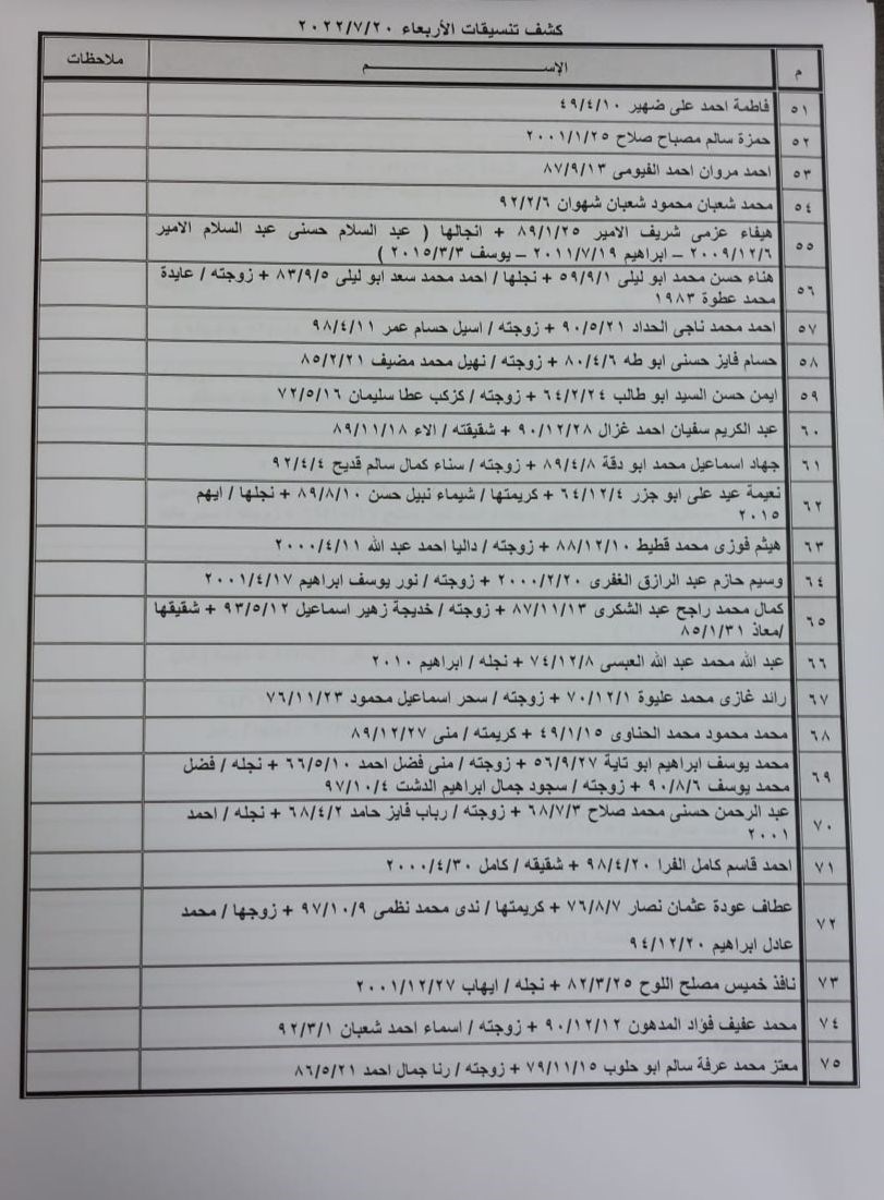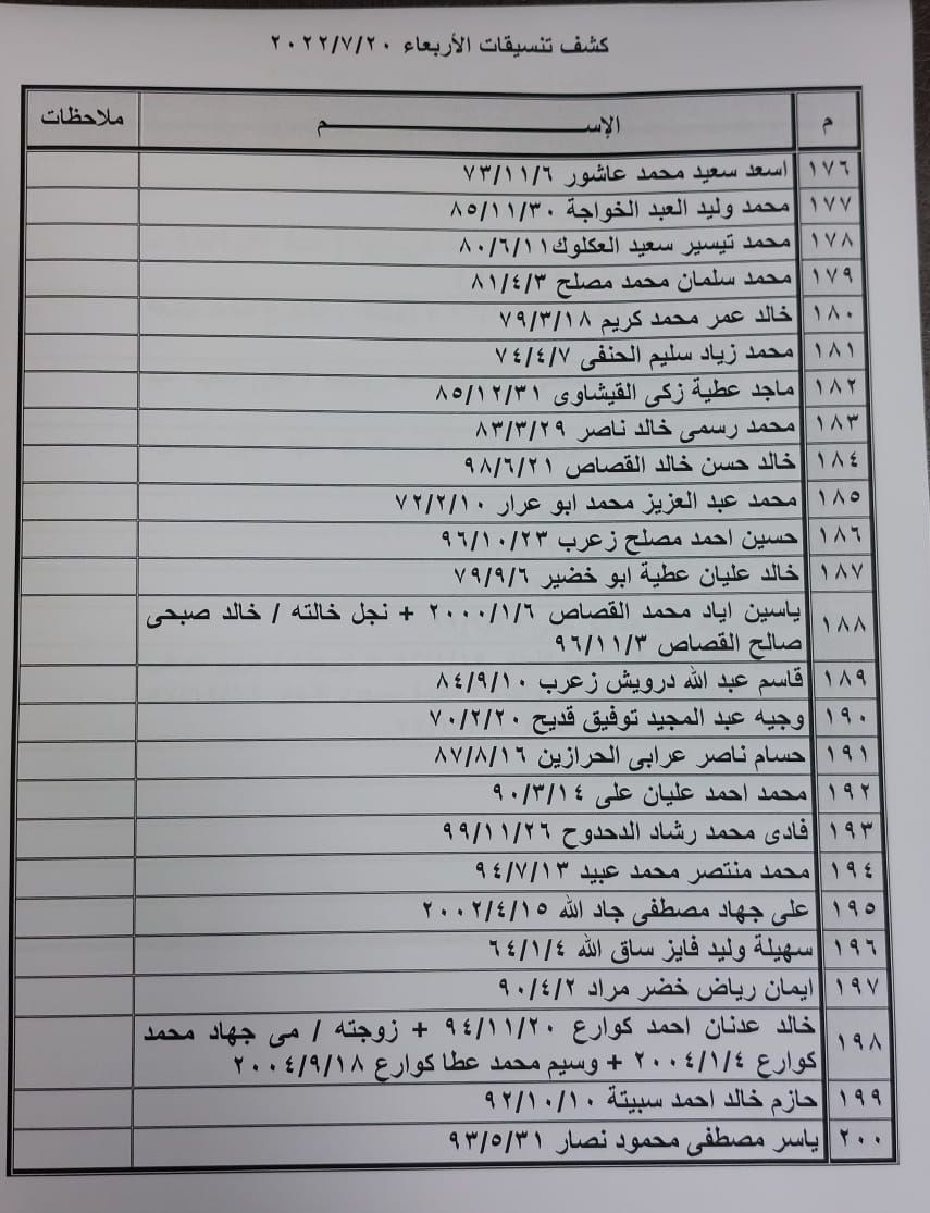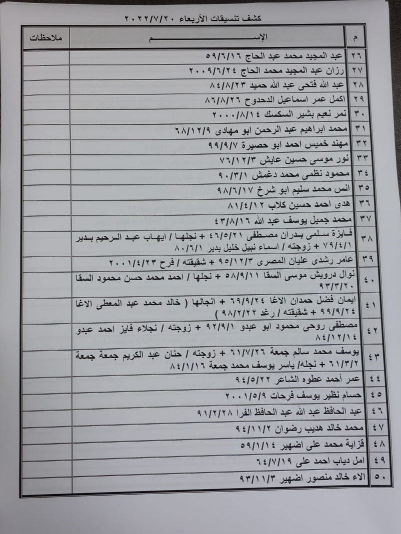 تعلن الهيئة العامة للمعابر والحدود بوزارة الداخلية والأمن الوطني عن وصول كشف "تنسيقات مصرية" للسفر عبر معبر رفح البري يوم الأربعاء (20 يوليو)، والذين عليهم التواجد س 8:00 صباحاً في الصالة الخارجية للمعبر لتسهيل سفرهم.