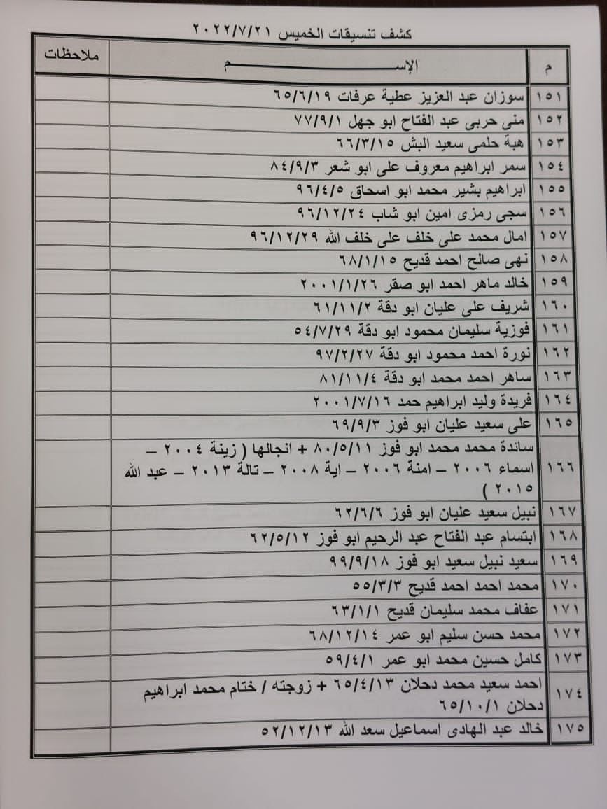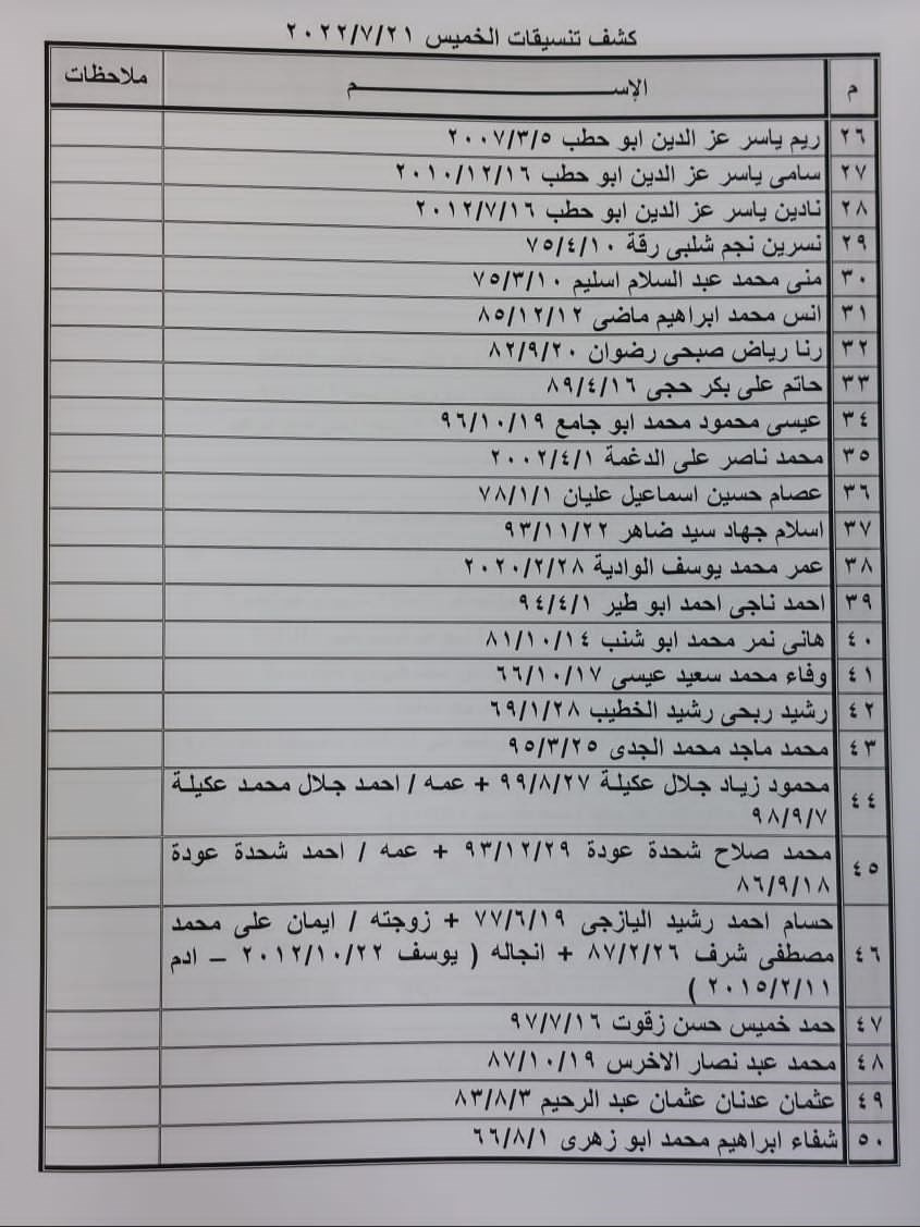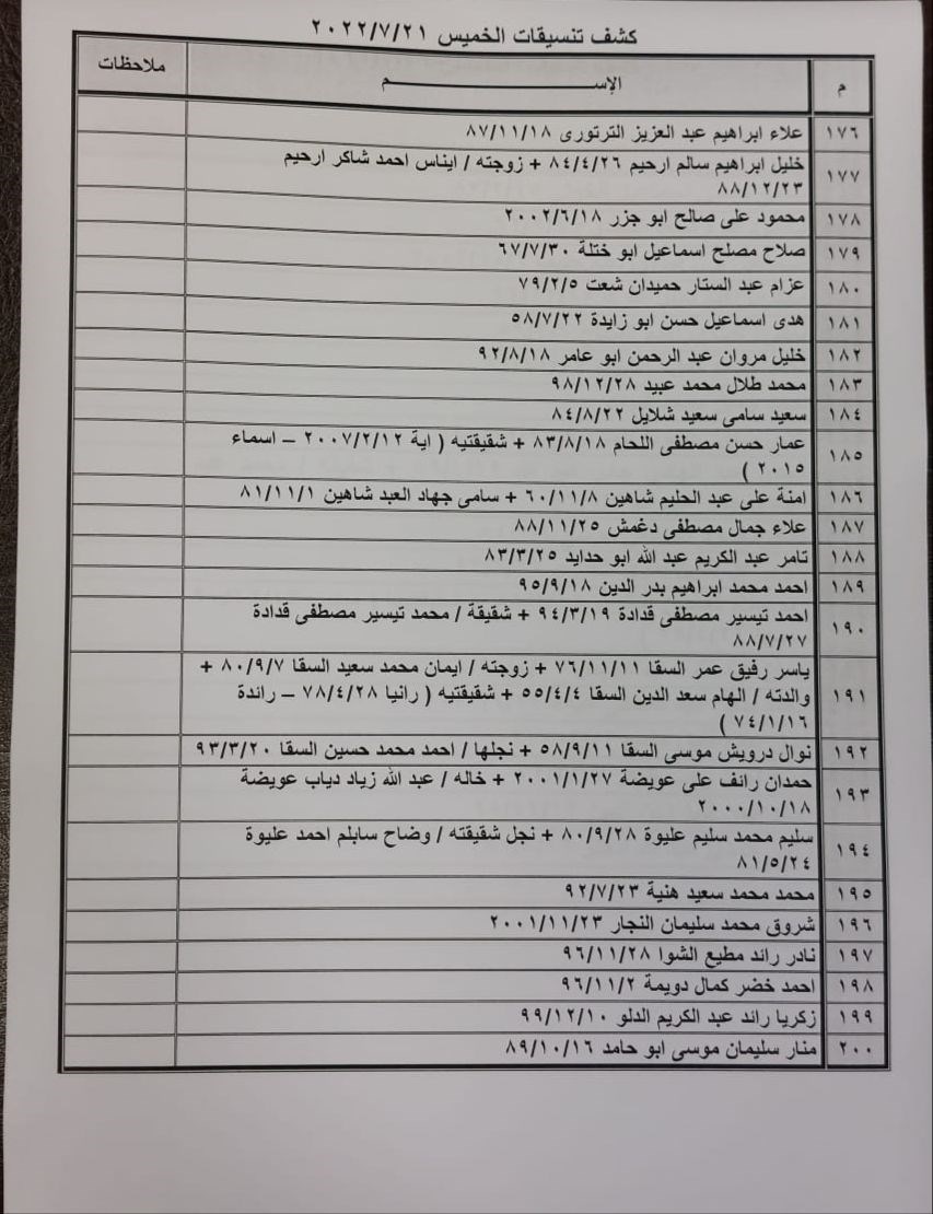 تعلن الهيئة العامة للمعابر والحدود بوزارة الداخلية والأمن الوطني عن وصول كشف "تنسيقات مصرية" للسفر عبر معبر رفح البري يوم الخميس (21 يوليو)، والذين عليهم التواجد س 8:00 صباحاً في الصالة الخارجية للمعبر لتسهيل سفرهم.