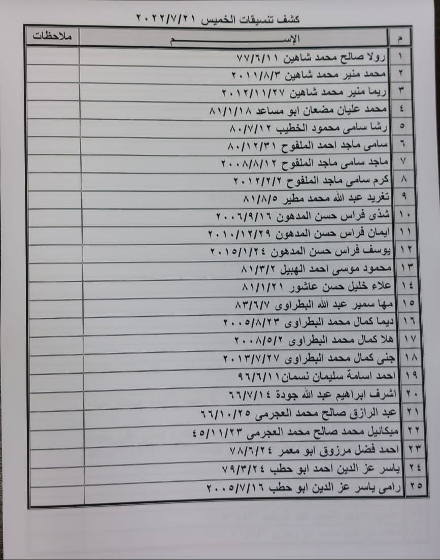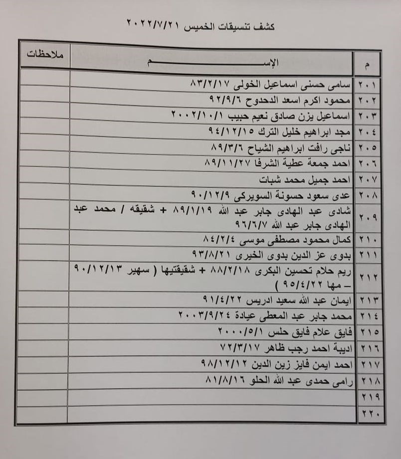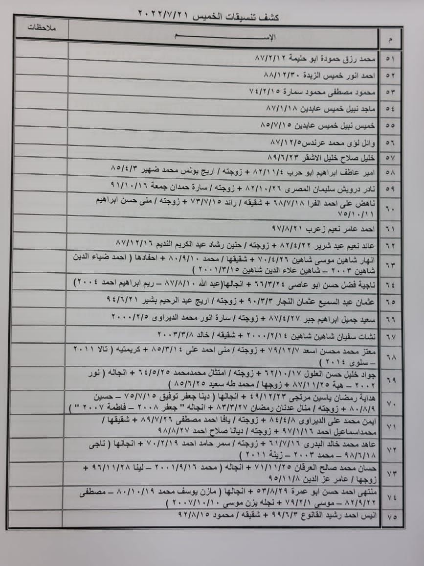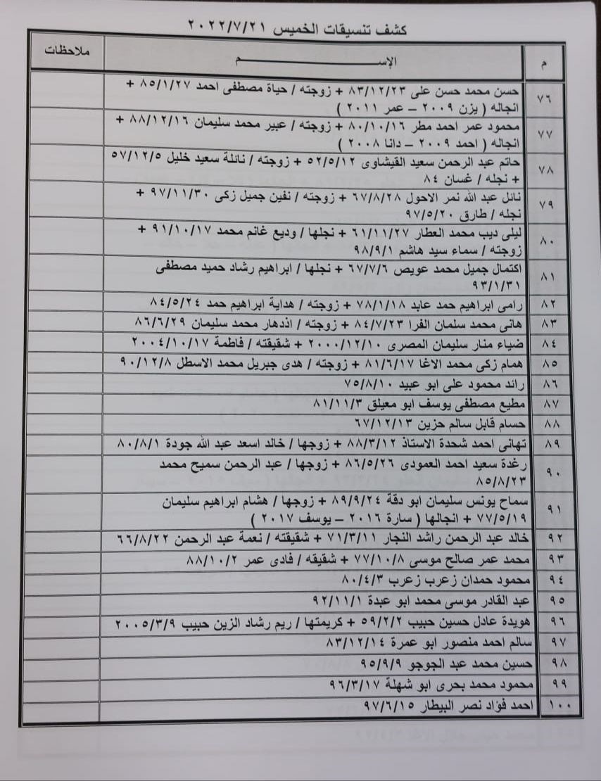 تعلن الهيئة العامة للمعابر والحدود بوزارة الداخلية والأمن الوطني عن وصول كشف "تنسيقات مصرية" للسفر عبر معبر رفح البري يوم الخميس (21 يوليو)، والذين عليهم التواجد س 8:00 صباحاً في الصالة الخارجية للمعبر لتسهيل سفرهم.