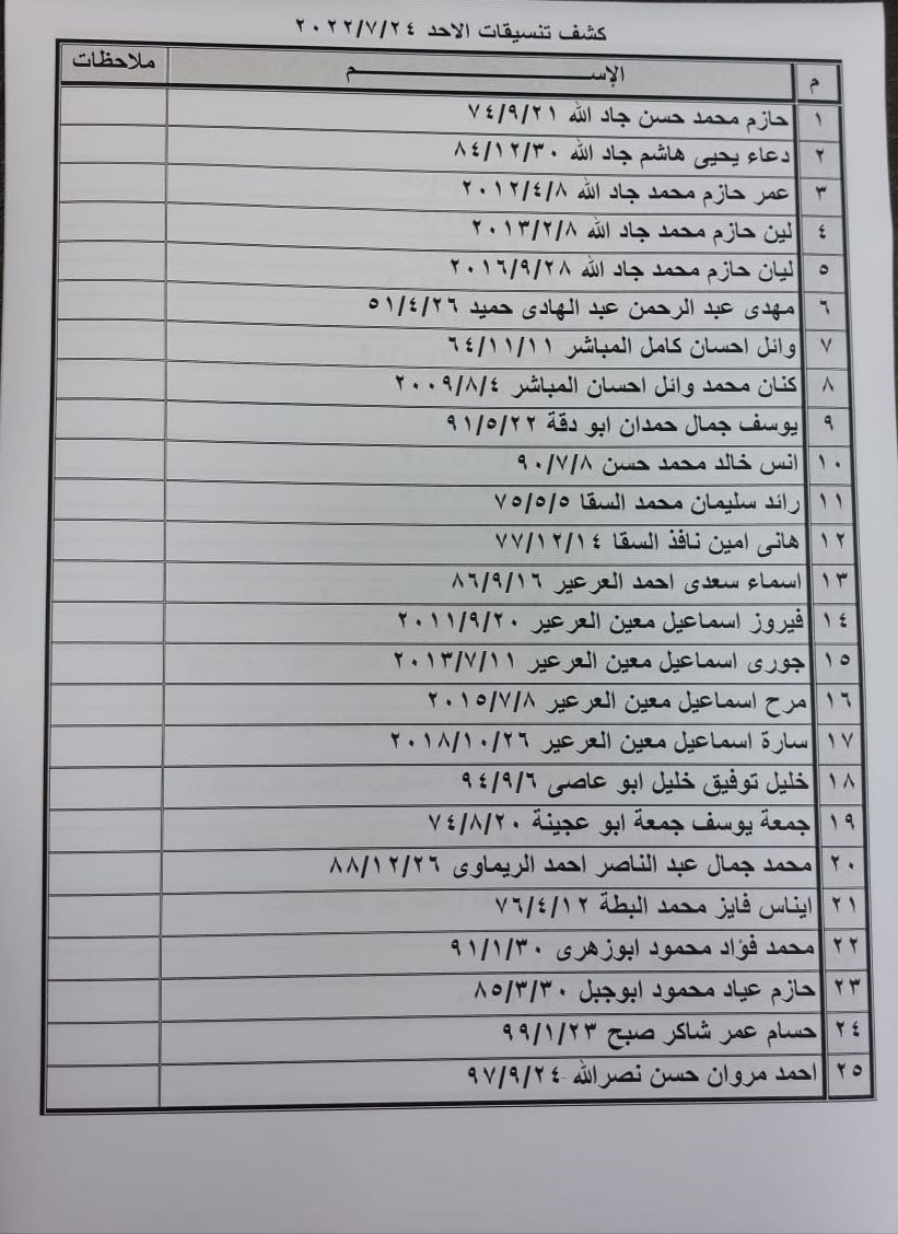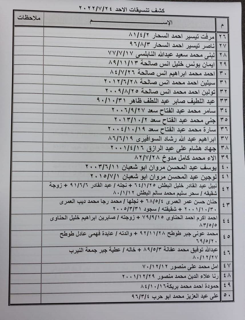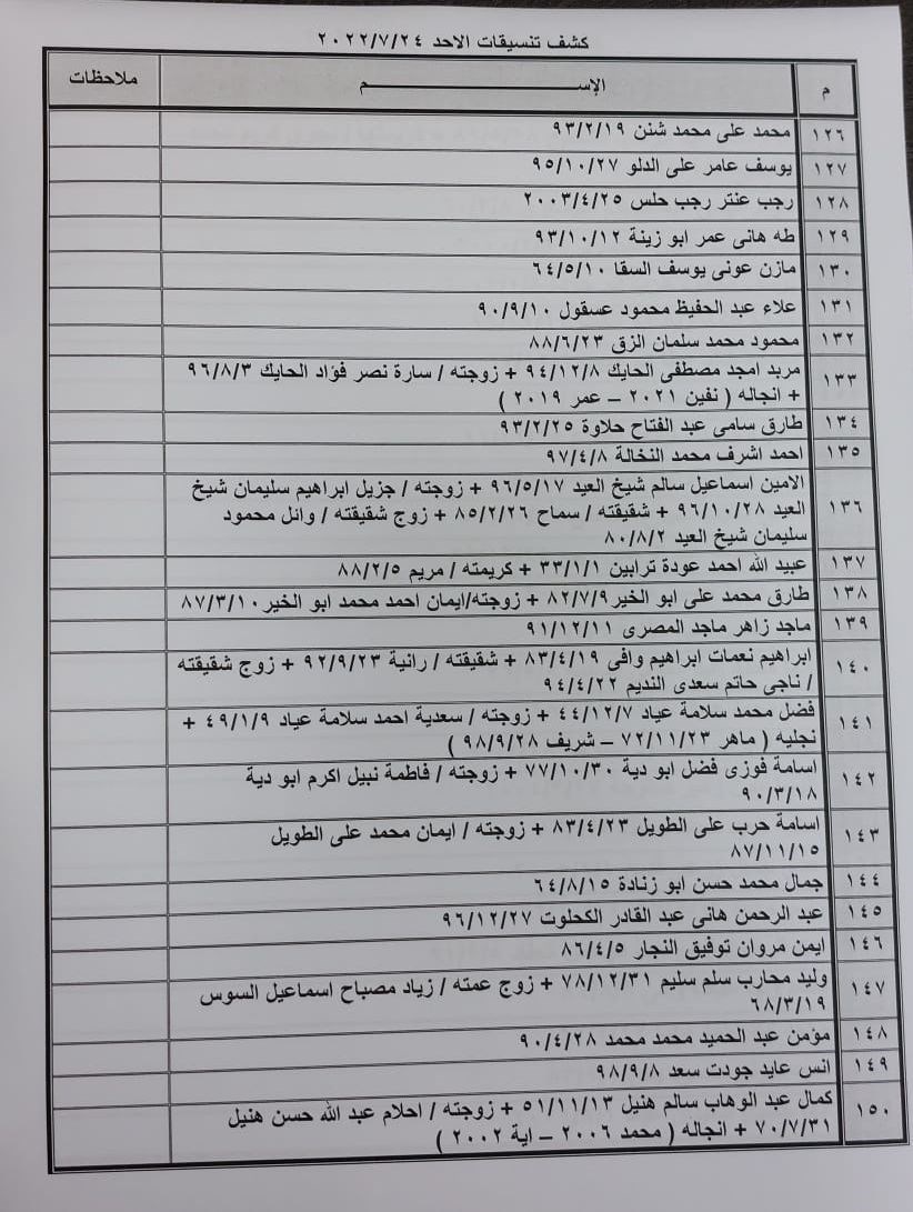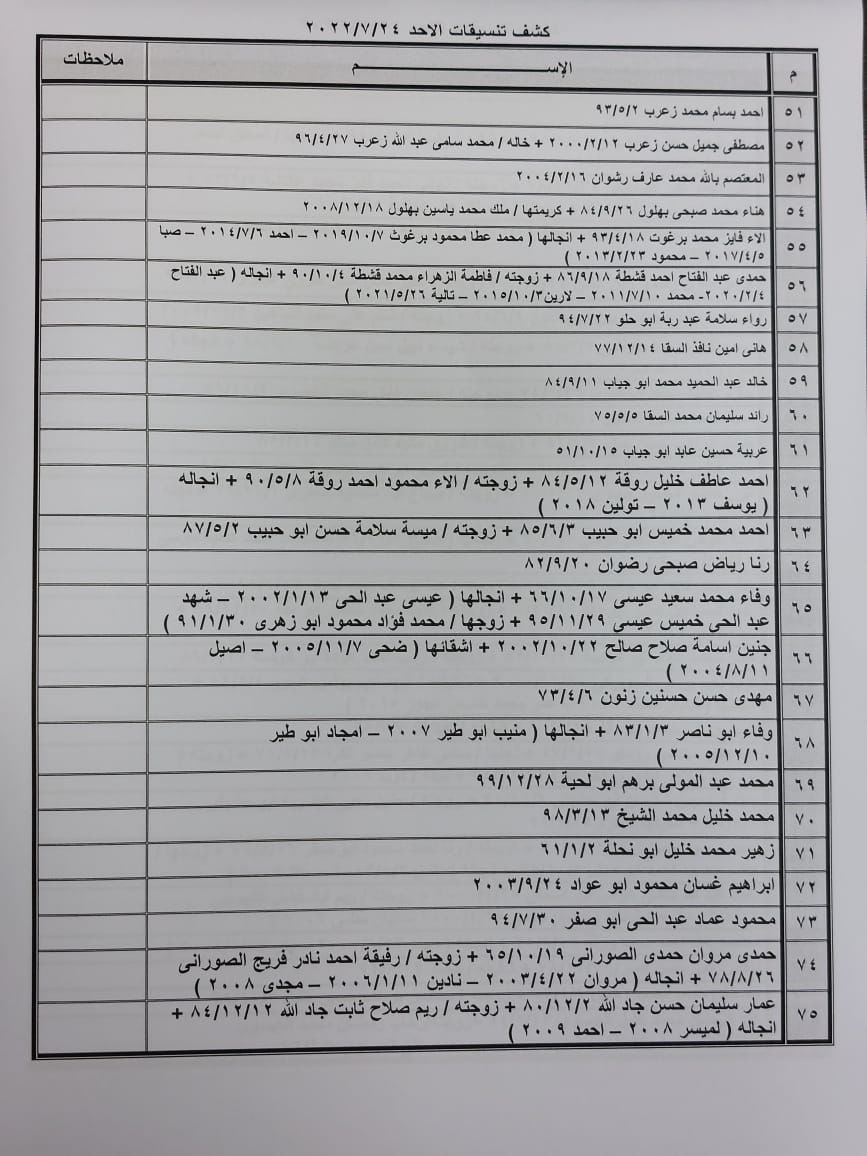 تعلن الهيئة العامة للمعابر والحدود بوزارة الداخلية والأمن الوطني عن وصول كشف "تنسيقات مصرية" للسفر عبر معبر رفح البري يوم الأحد (24 يوليو)، والذين عليهم التواجد س 8:00 صباحاً في الصالة الخارجية للمعبر لتسهيل سفرهم.