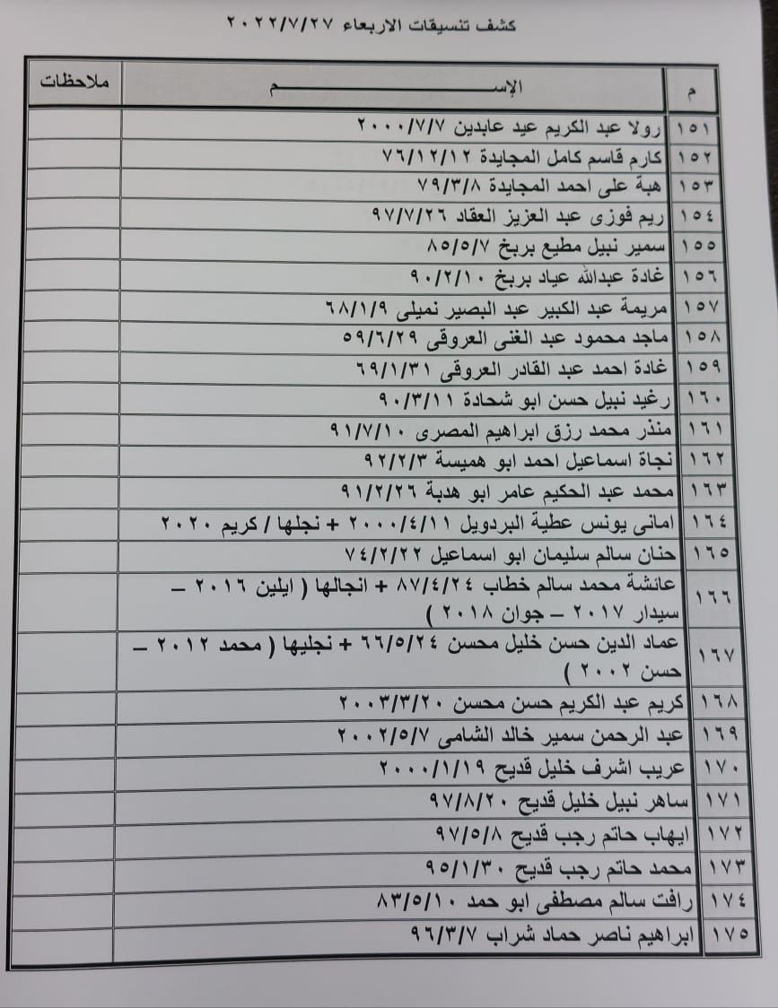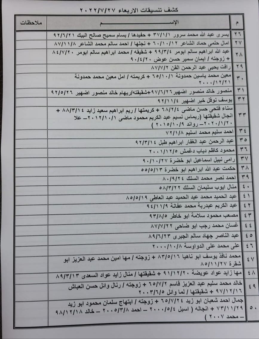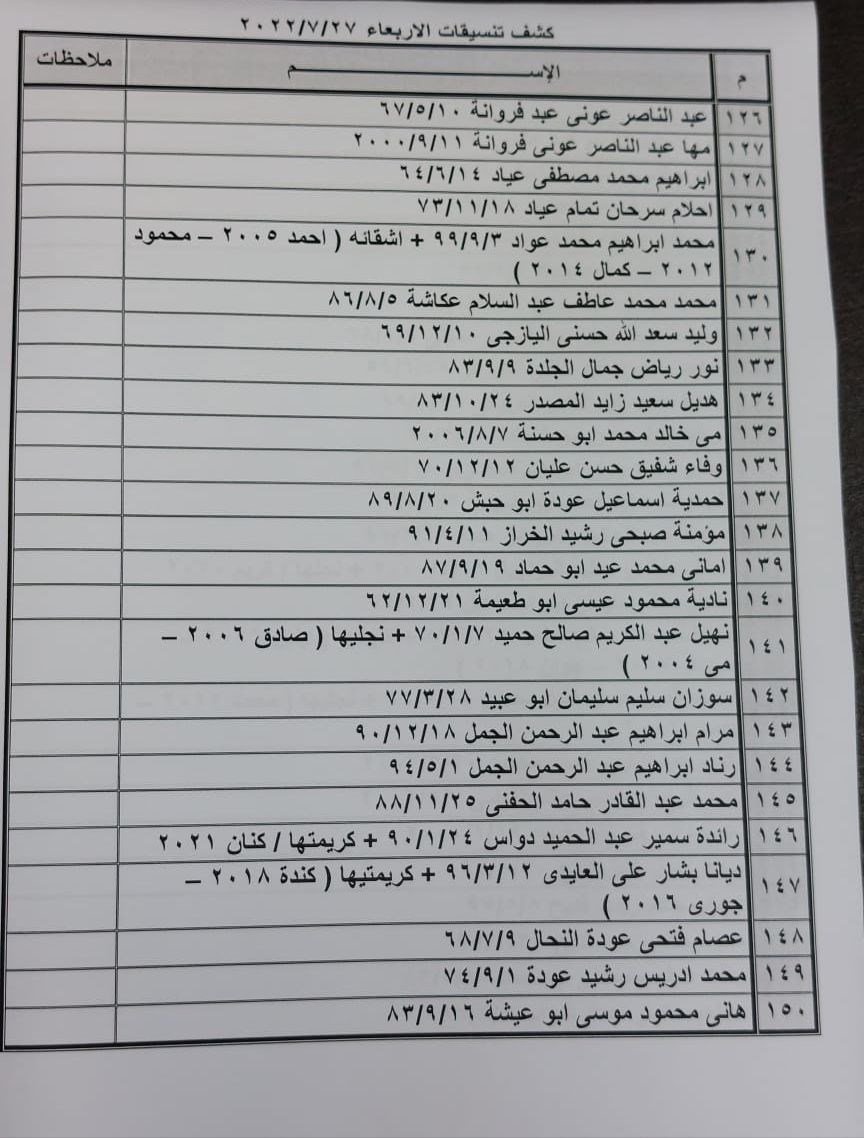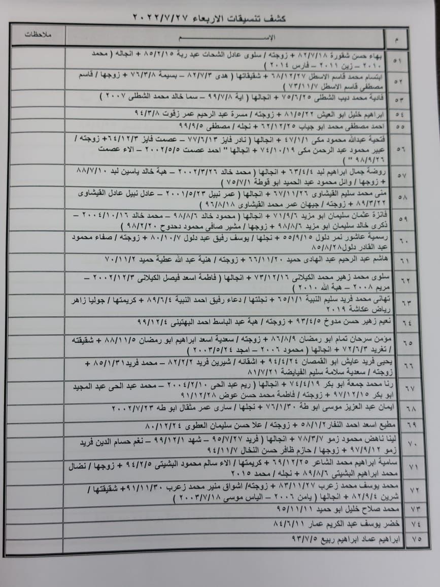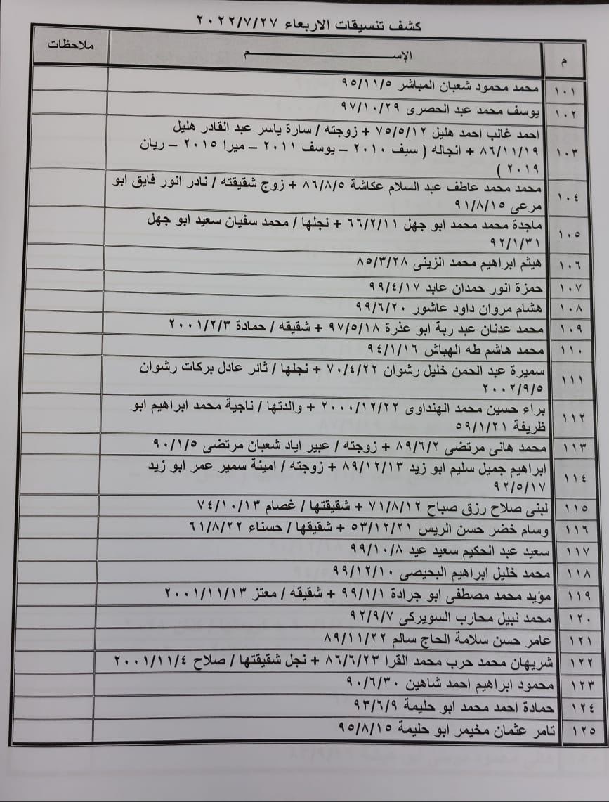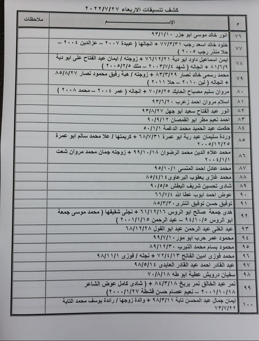 تعلن الهيئة العامة للمعابر والحدود بوزارة الداخلية والأمن الوطني عن وصول كشف "تنسيقات مصرية" للسفر عبر معبر رفح البري يوم غد الأربعاء (27 يوليو)، والذين عليهم التواجد س 8:00 صباحاً في الصالة الخارجية للمعبر لتسهيل سفرهم.