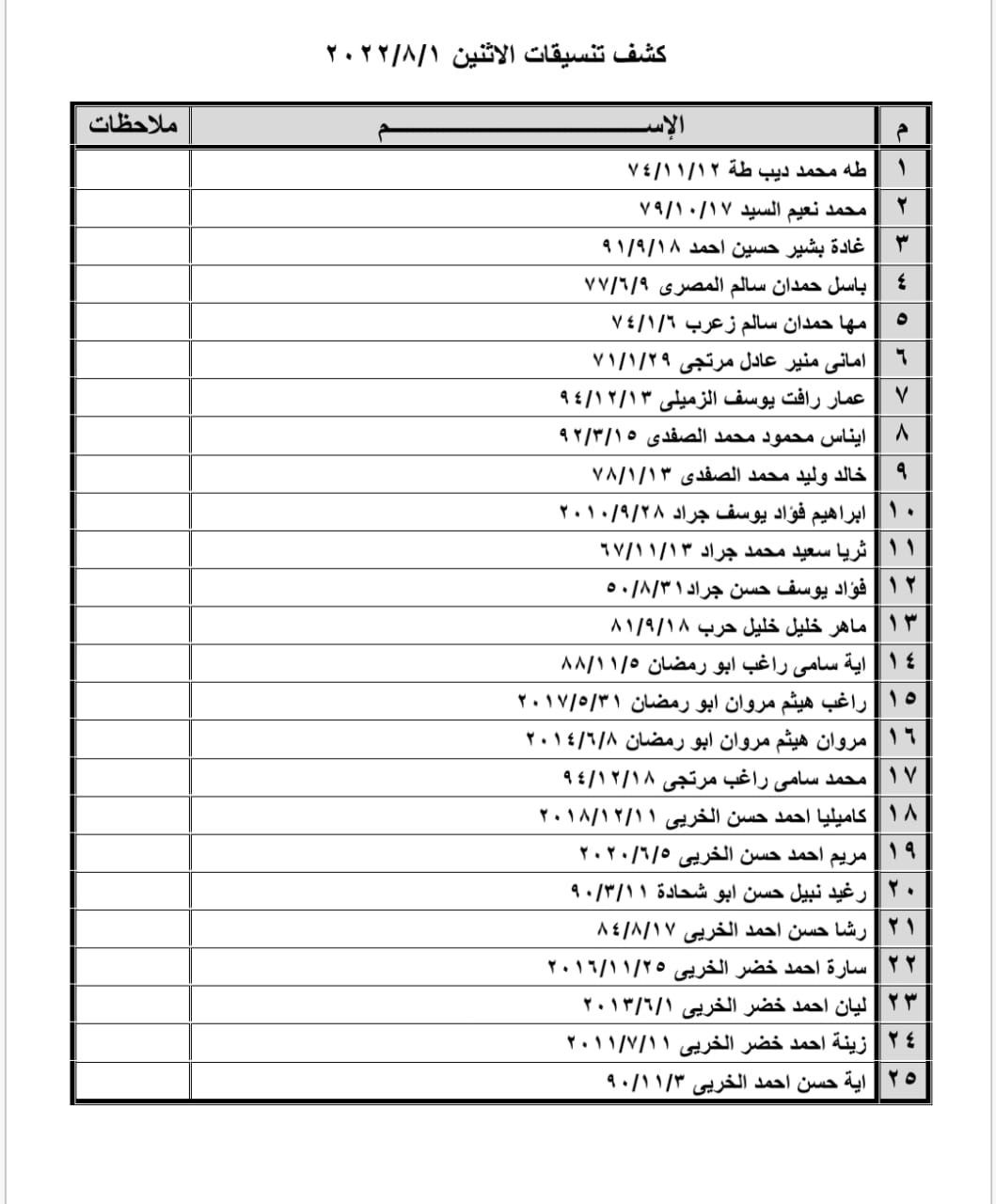 تعلن الهيئة العامة للمعابر والحدود بوزارة الداخلية والأمن الوطني عن وصول كشف "تنسيقات مصرية" للسفر عبر معبر رفح البري يوم غد الإثنين (1 أغسطس)، والذين عليهم التواجد س 8:00 صباحاً في الصالة الخارجية للمعبر لتسهيل سفرهم.