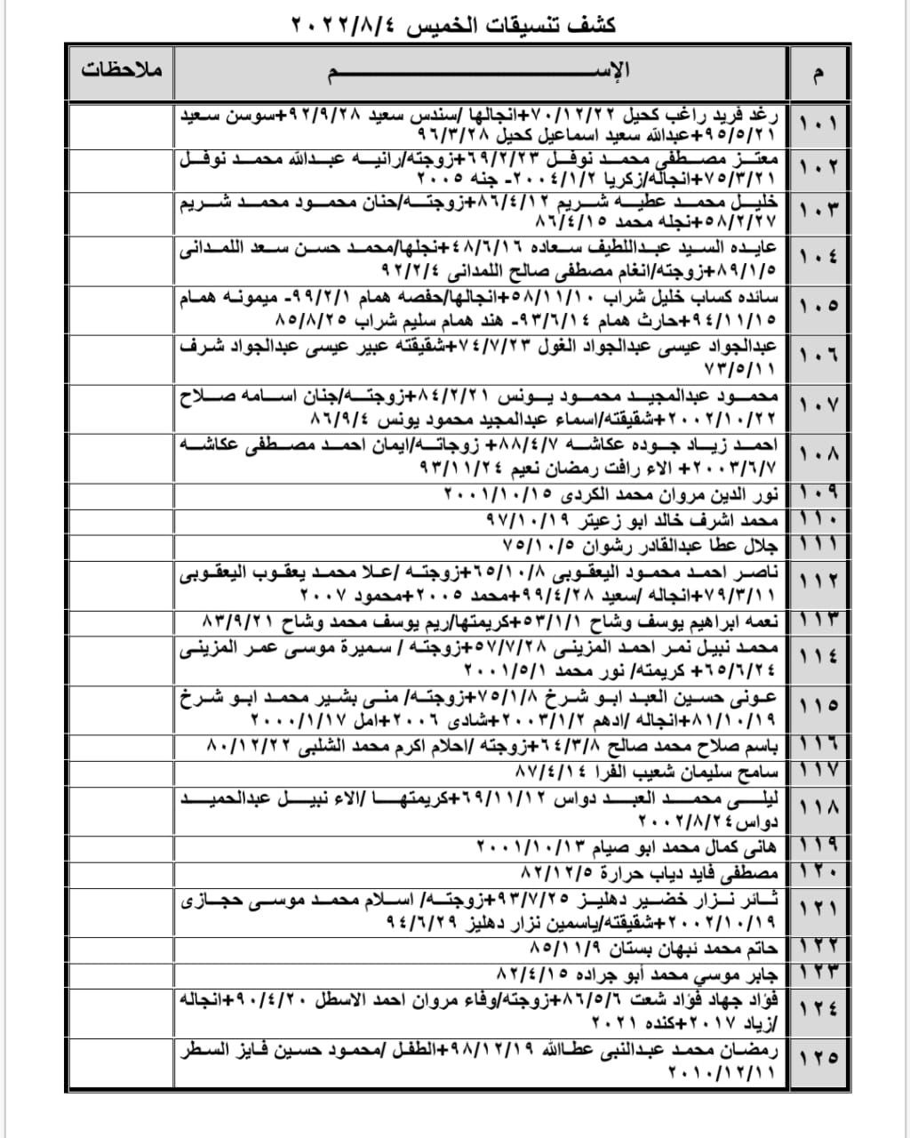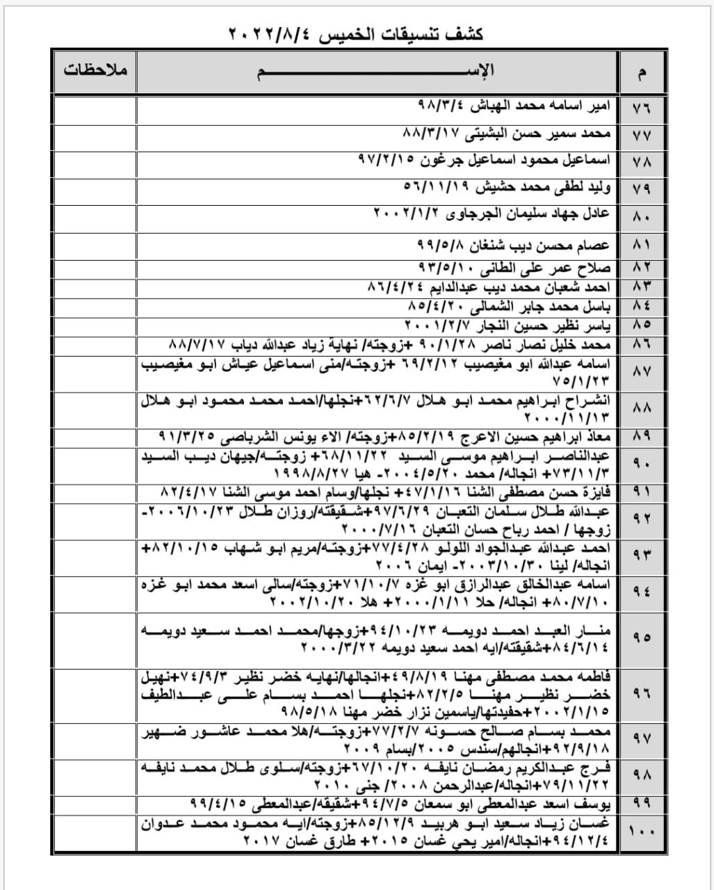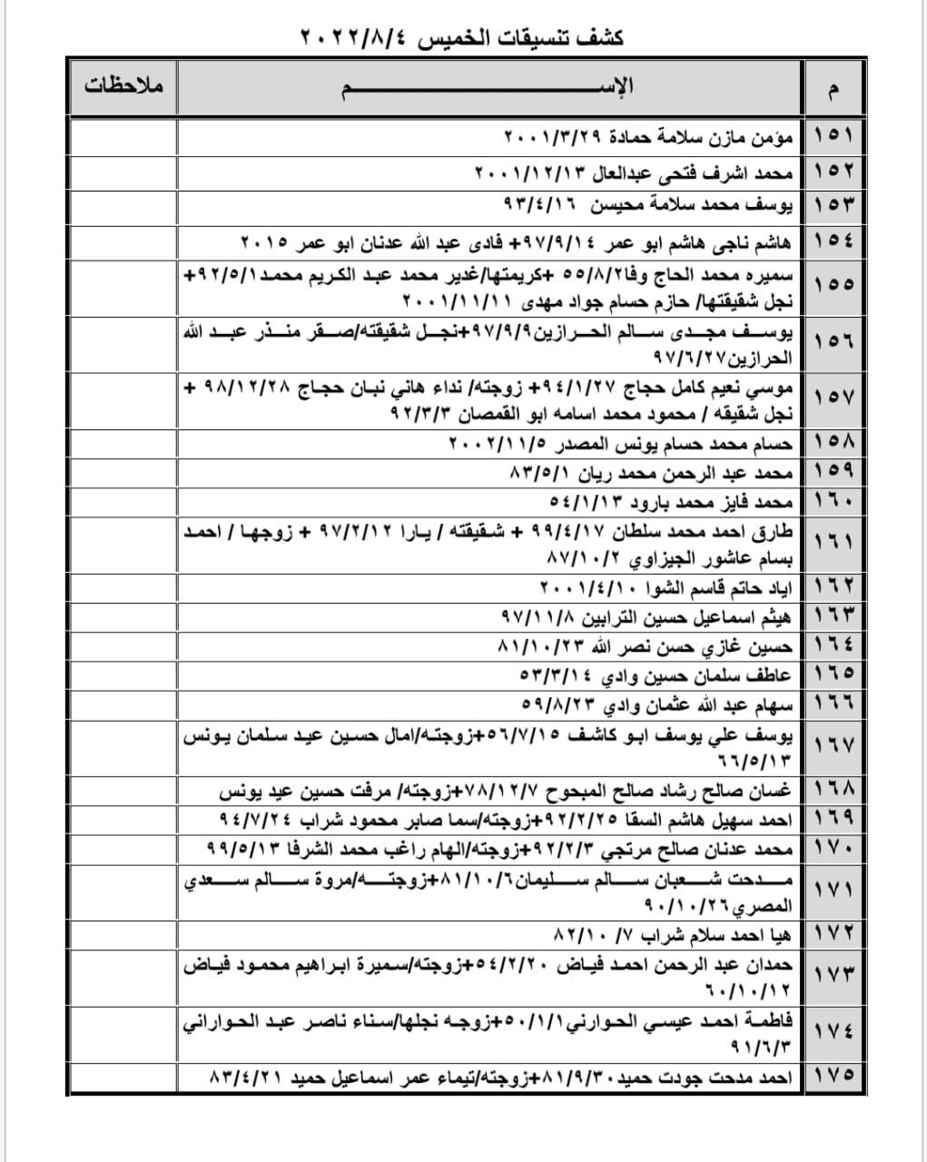 تعلن الهيئة العامة للمعابر والحدود بوزارة الداخلية والأمن الوطني عن وصول كشف "تنسيقات مصرية" للسفر عبر معبر رفح البري يوم غد الخميس (4 أغسطس)، والذين عليهم التواجد س 8:00 صباحاً في الصالة الخارجية للمعبر لتسهيل سفرهم.