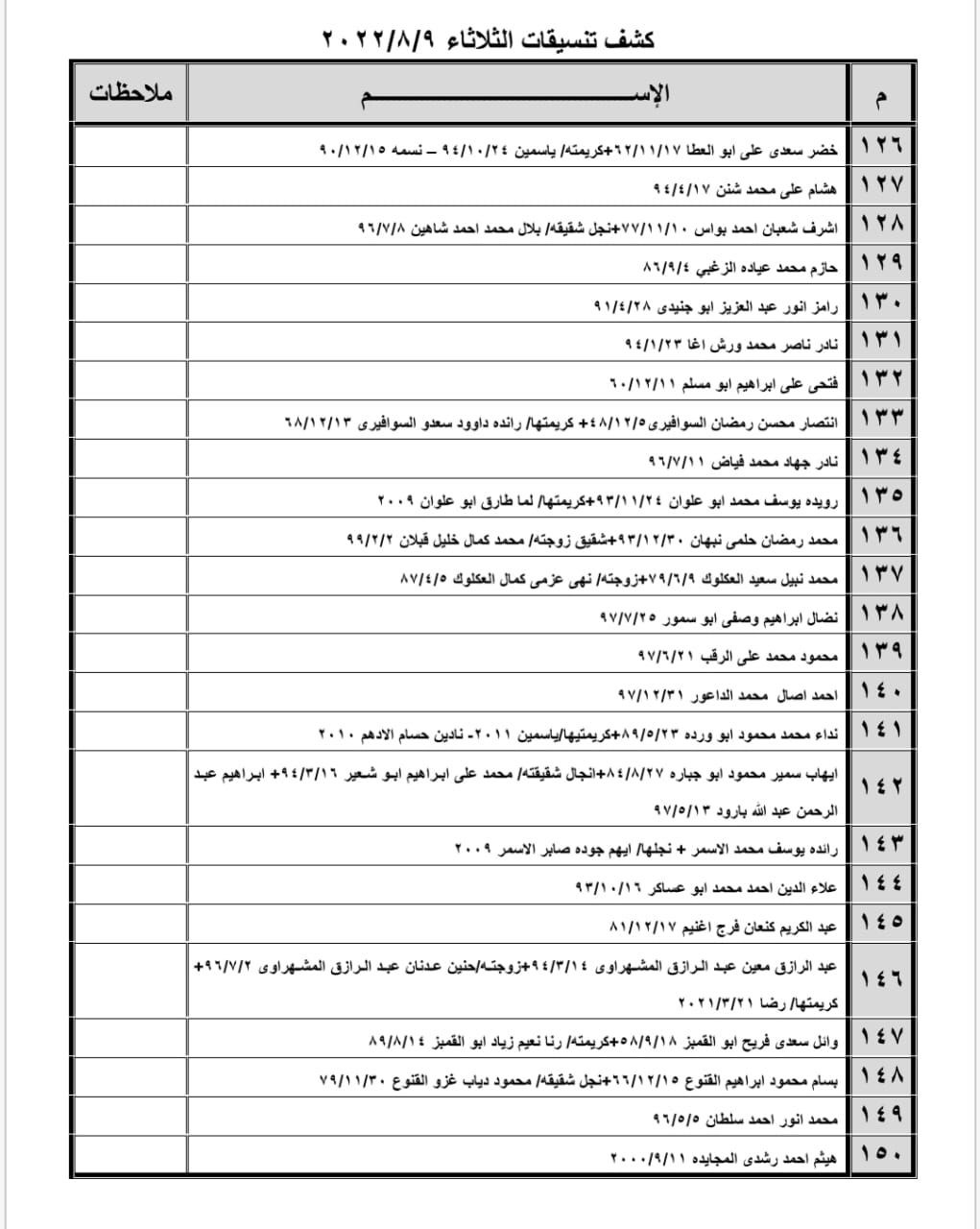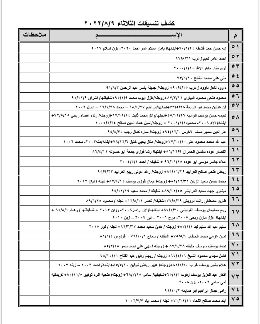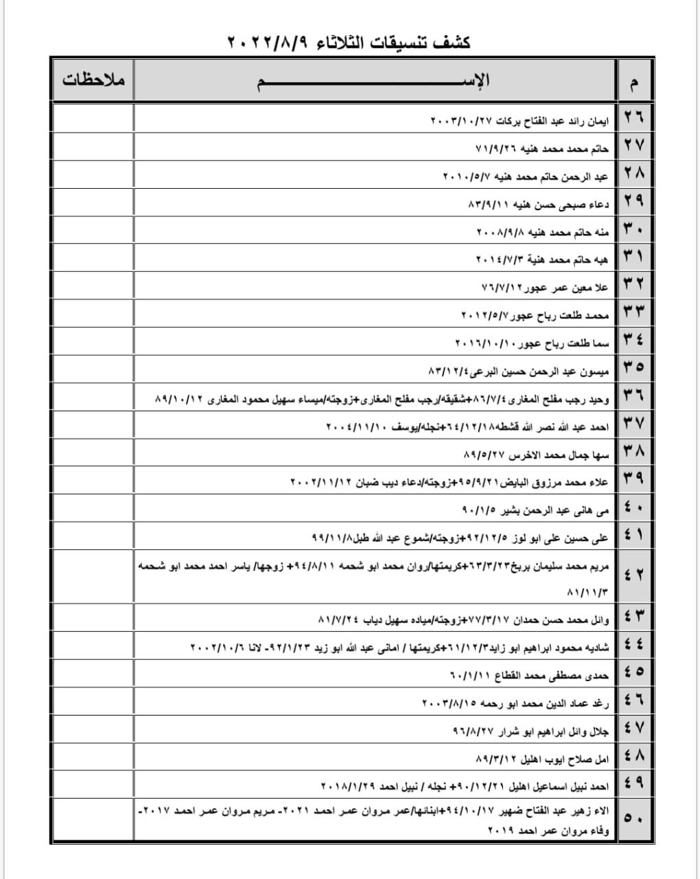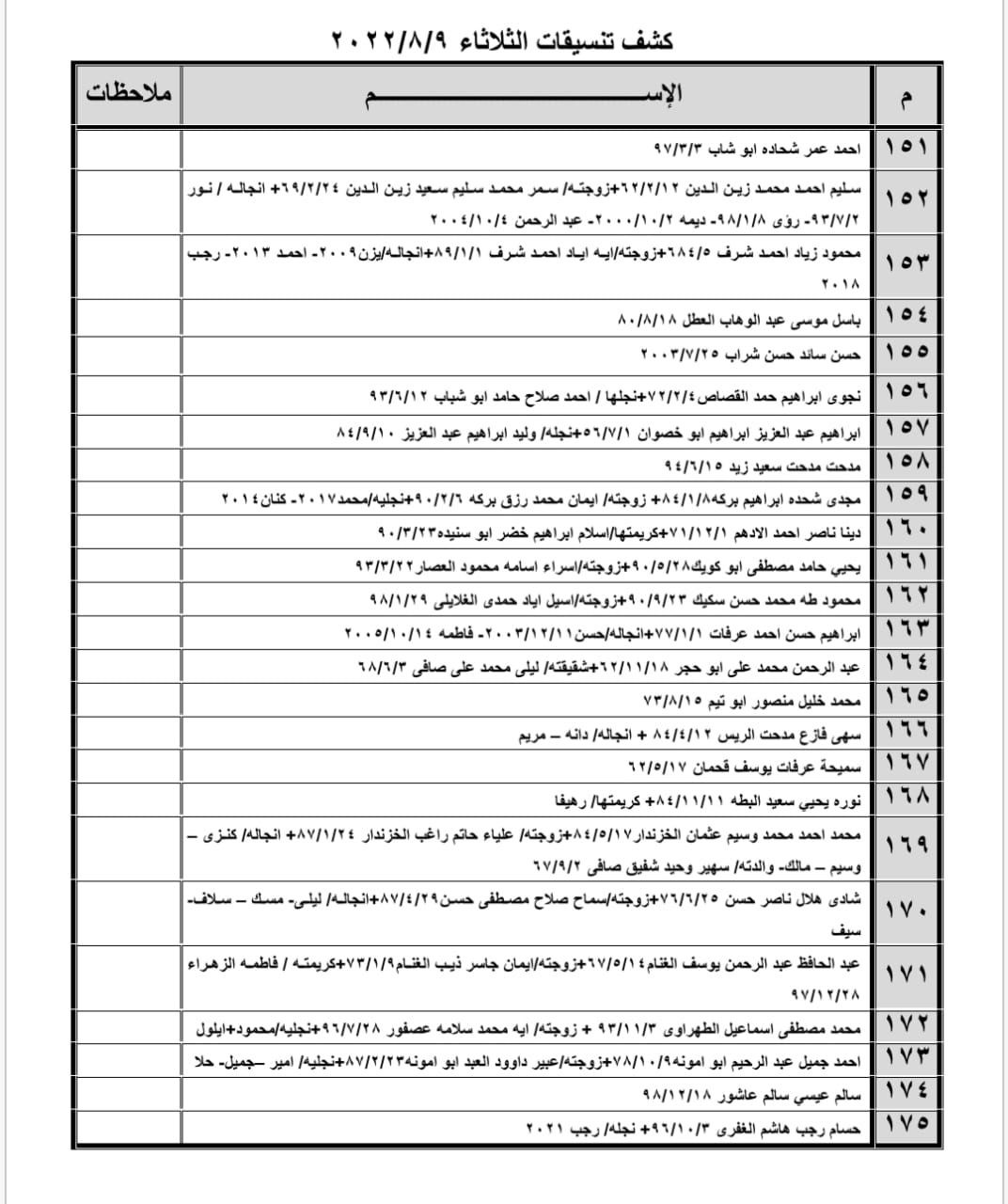 تعلن الهيئة العامة للمعابر والحدود بوزارة الداخلية والأمن الوطني عن وصول كشف "تنسيقات مصرية" للسفر عبر معبر رفح البري يوم غد الثلاثاء (9 أغسطس)، والذين عليهم التواجد س 8:00 صباحاً في الصالة الخارجية للمعبر لتسهيل سفرهم.