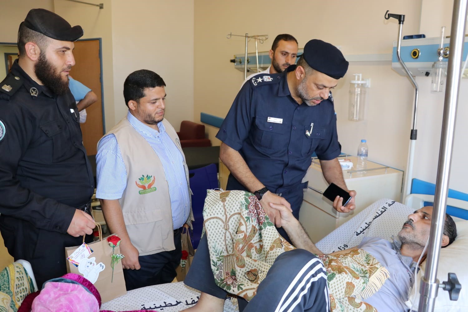وتفقدت الشرطة المجتمعية المصابين والجرحى في المستشفيات بكافة محافظات قطاع غزة، حيث أشادت خلالها بصمودهم وصبرهم وثباتهم في وجه العدوان "الإسرائيلي".