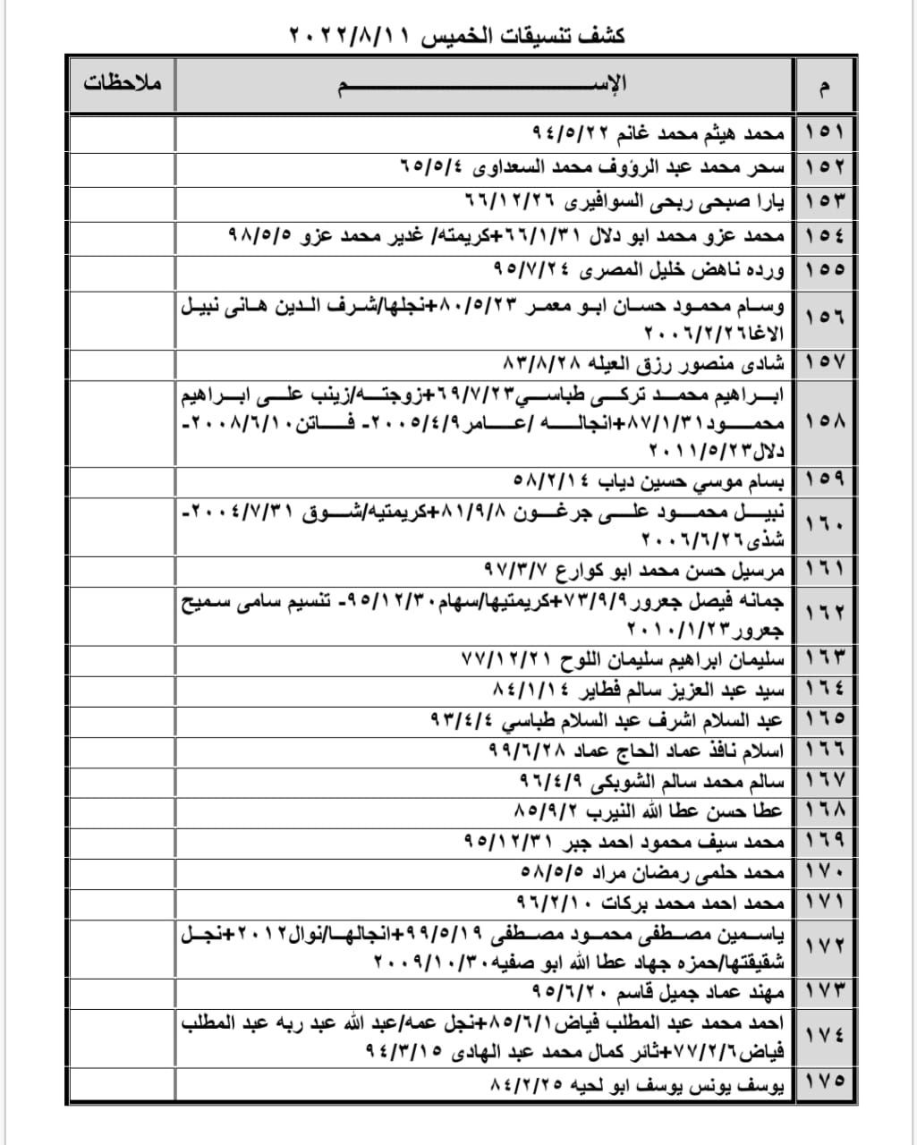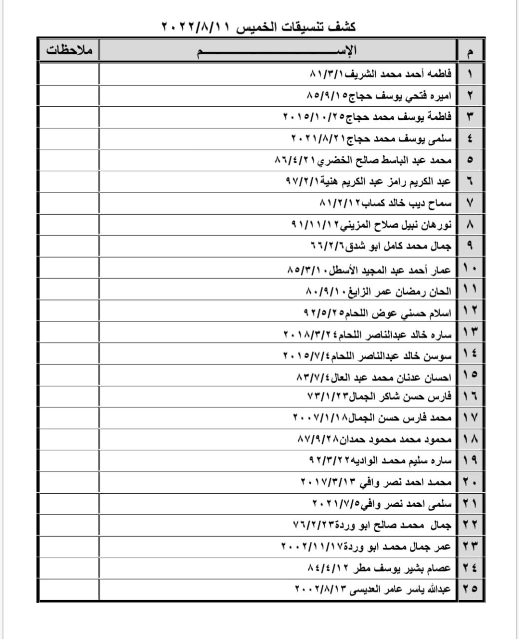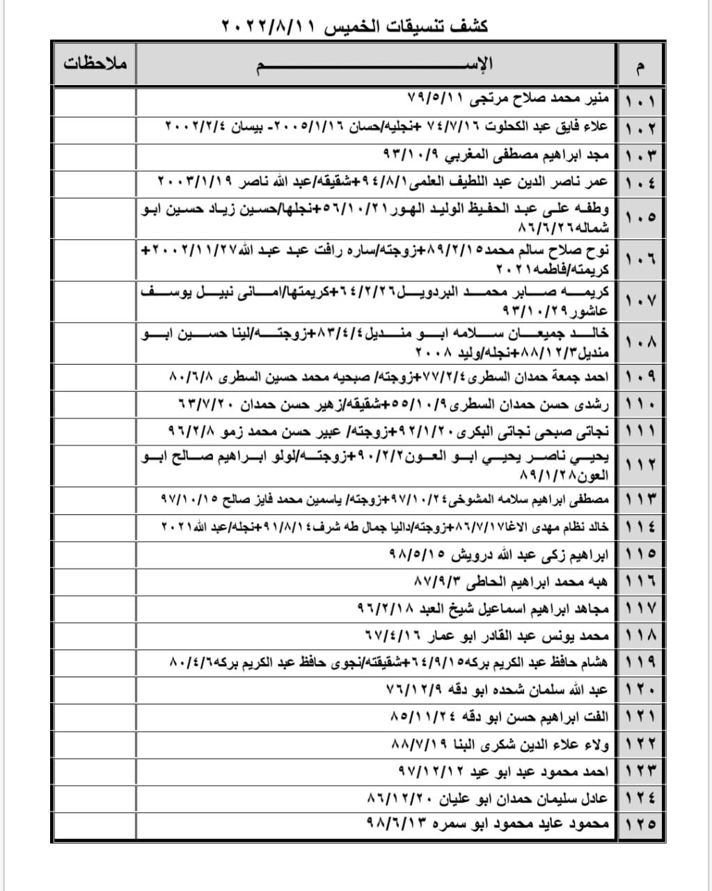 تعلن الهيئة العامة للمعابر والحدود بوزارة الداخلية والأمن الوطني عن وصول كشف "تنسيقات مصرية" للسفر عبر معبر رفح البري يوم الخميس (11 أغسطس)، والذين عليهم التواجد س 8:00 صباحاً في الصالة الخارجية للمعبر لتسهيل سفرهم.