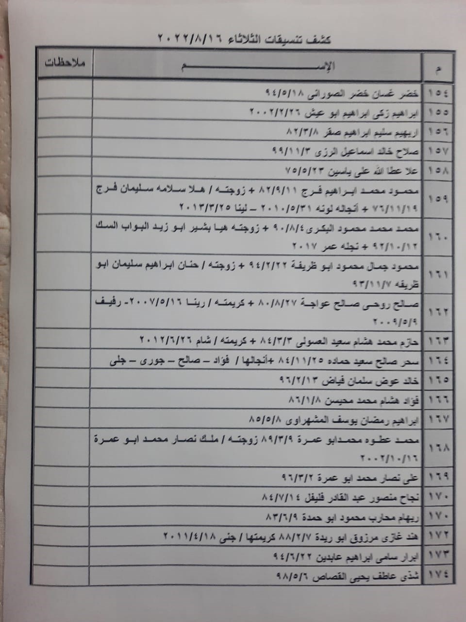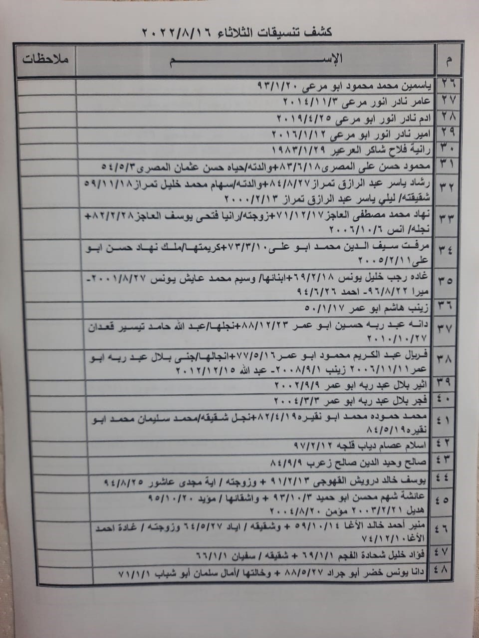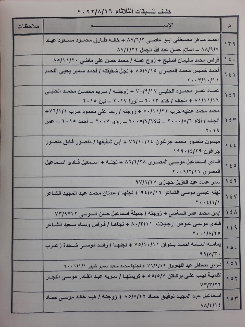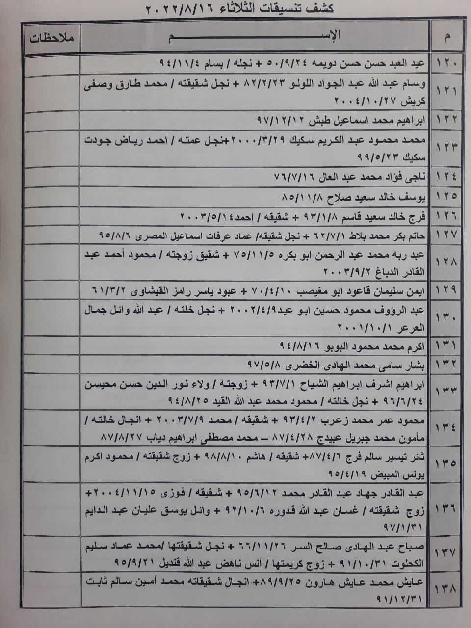 تعلن الهيئة العامة للمعابر والحدود بوزارة الداخلية والأمن الوطني عن وصول كشف "تنسيقات مصرية" للسفر عبر معبر رفح البري يوم الثلاثاء (16 أغسطس)، والذين عليهم التواجد س 8:00 صباحاً في الصالة الخارجية للمعبر لتسهيل سفرهم.
