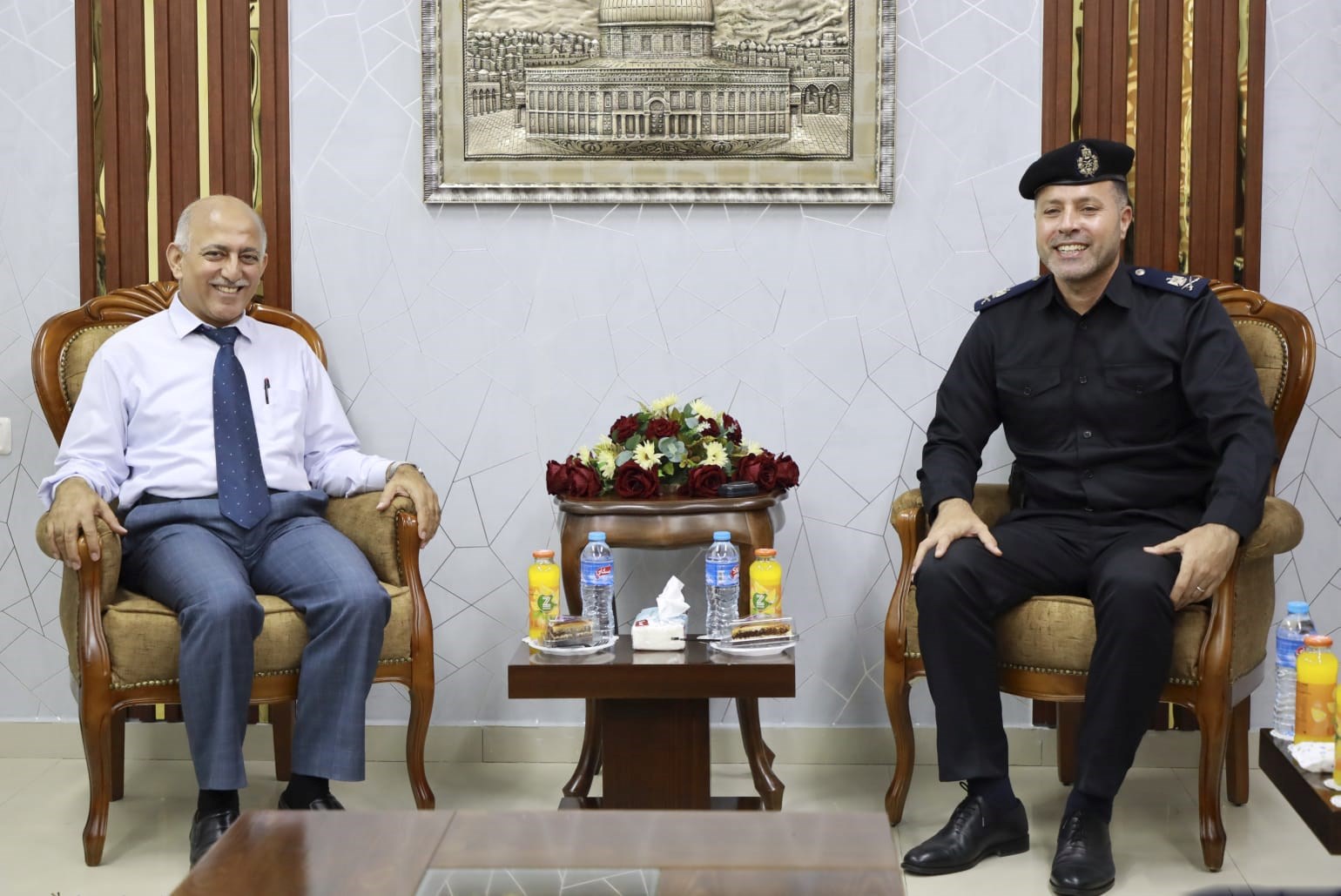 وناقش مدير عام الشرطة مع رئيس البلدية عدد من القضايا التي تلامس حاجة المواطن وسبل تعزيز وتطوير الخدمة المقدمة لأبناء شعبنا، لاسيما النجاحات التي حققتها البلدية بمشاركة دوائر شرطة البلديات في تنظيم وترتيب الأسواق العامة في كافة المحافظات، وإزالة التعديات المخالفة وبسط الأمن والنظام في الأماكن العامة واصطفاف المواطنين على شاطئ البحر.