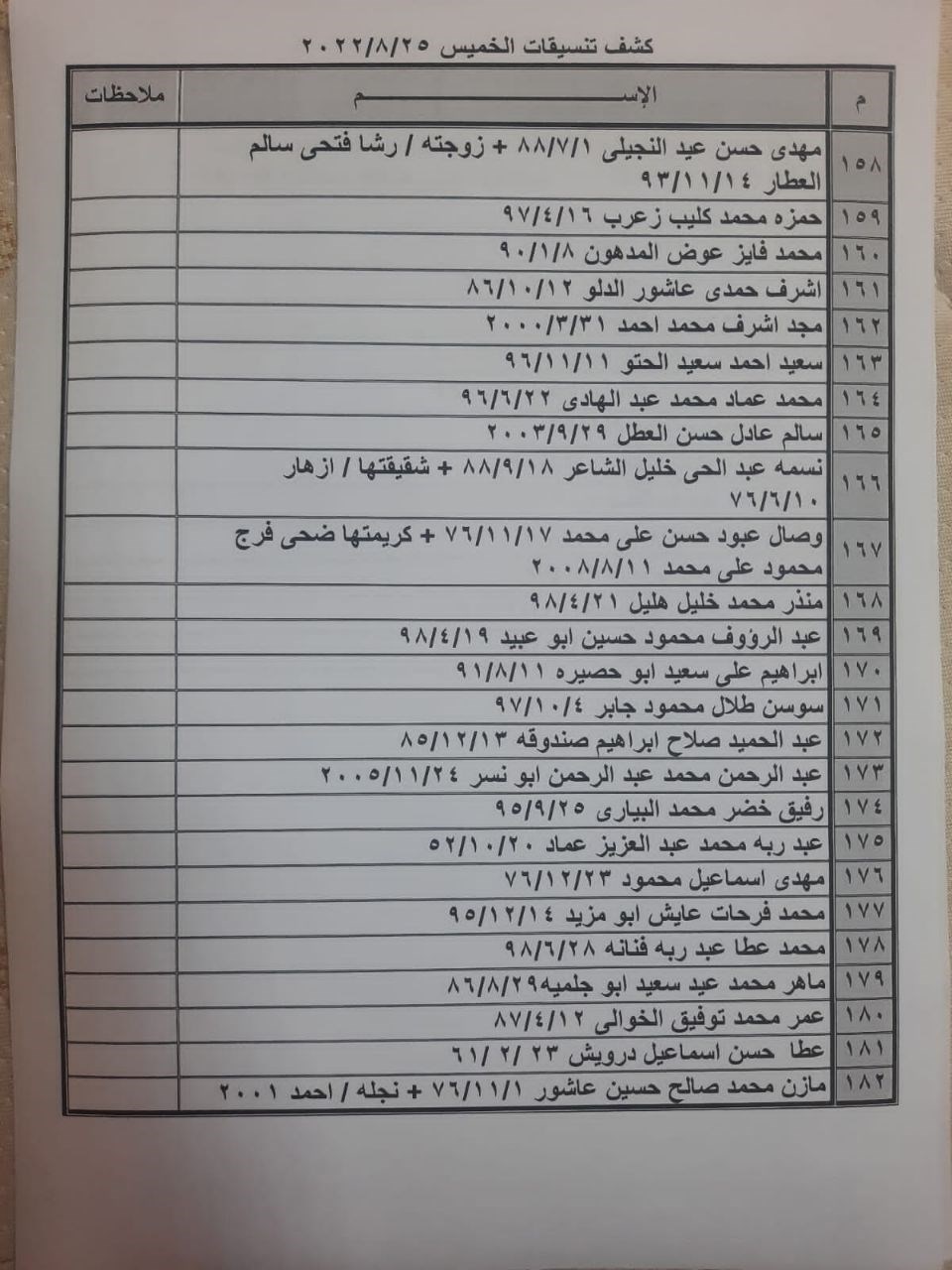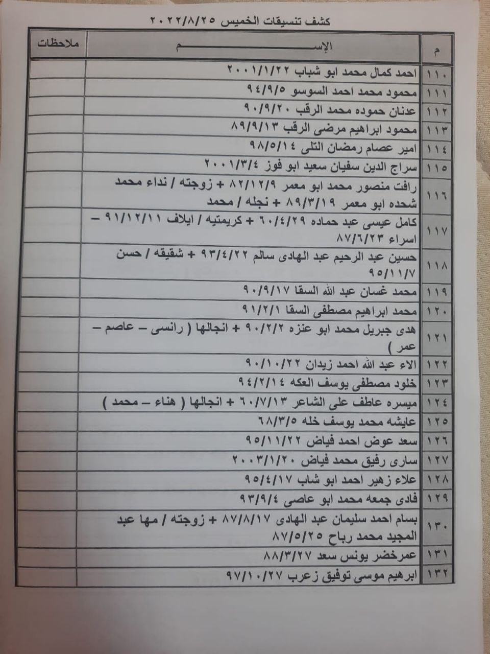 تعلن الهيئة العامة للمعابر والحدود بوزارة الداخلية والأمن الوطني عن وصول كشف "تنسيقات مصرية" للسفر عبر معبر رفح البري يوم الخميس (25 أغسطس)، والذين عليهم التواجد س 8:00 صباحاً في الصالة الخارجية للمعبر لتسهيل سفرهم.