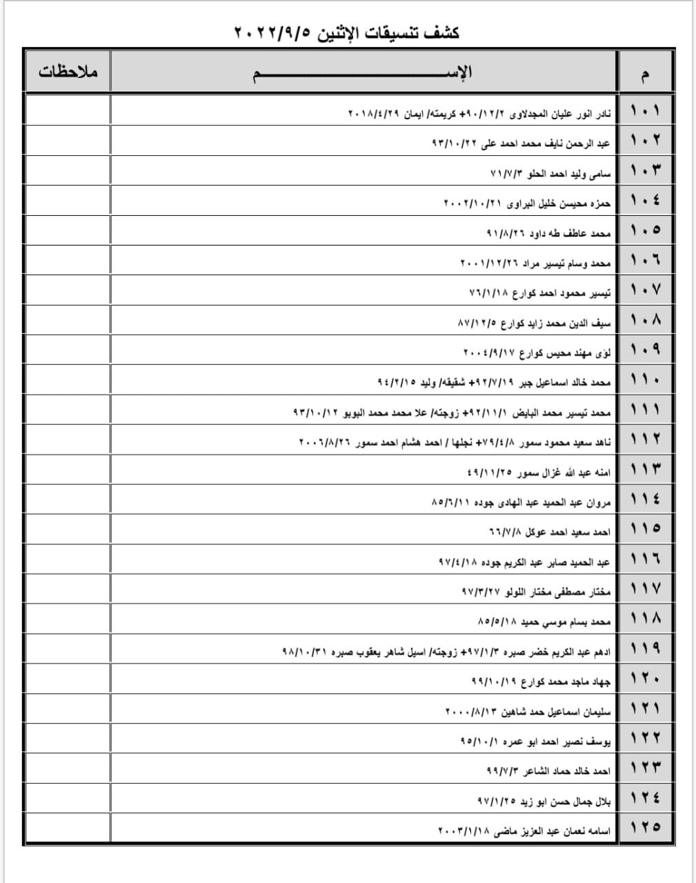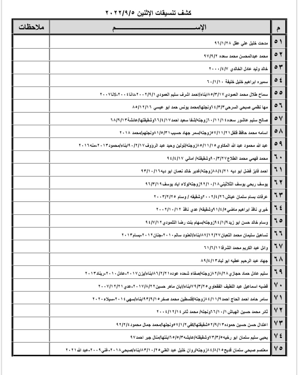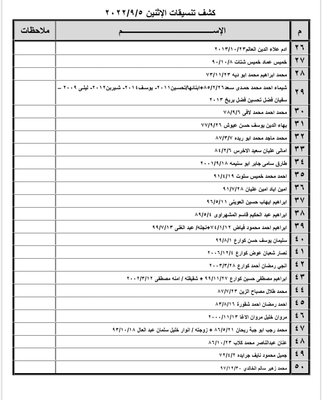 تعلن الهيئة العامة للمعابر والحدود بوزارة الداخلية والأمن الوطني عن وصول كشف "تنسيقات مصرية" للسفر عبر معبر رفح البري يوم الإثنين (5 سبتمبر)، والذين عليهم التواجد س 8:00 صباحاً في الصالة الخارجية للمعبر لتسهيل سفرهم.