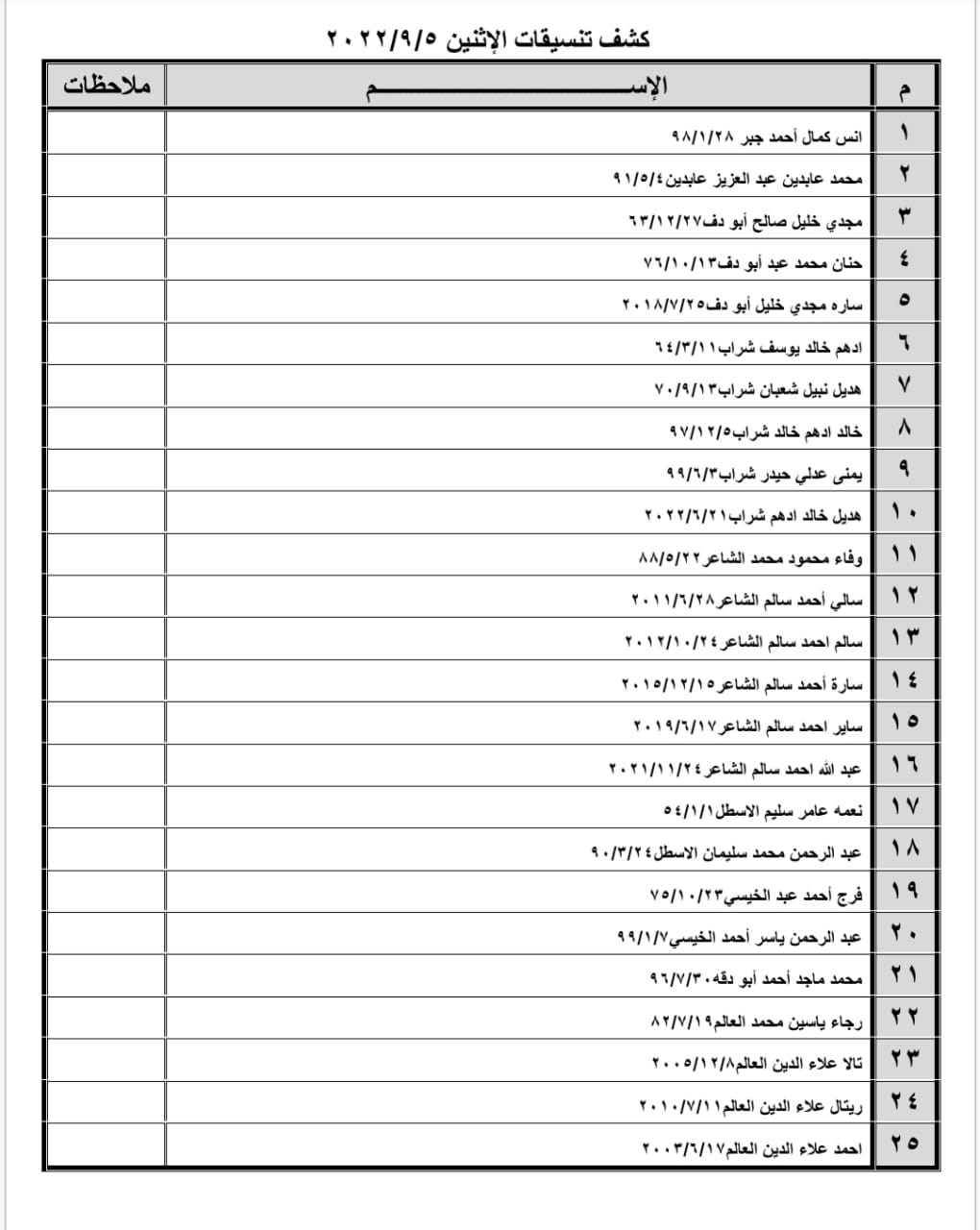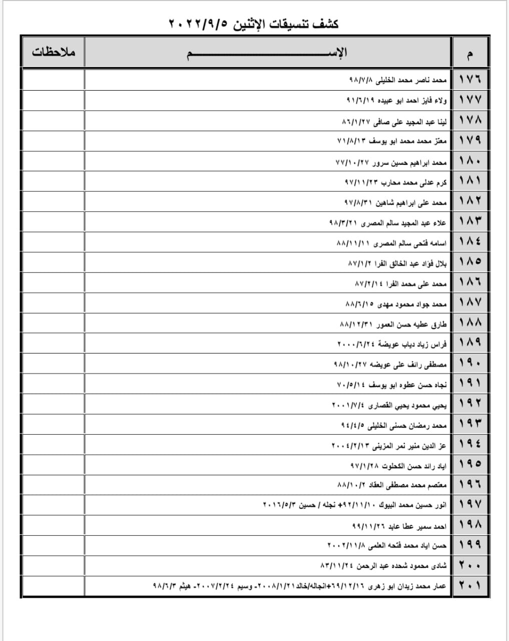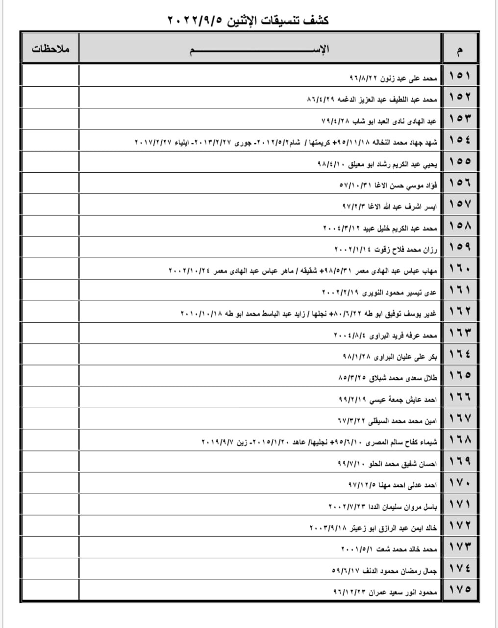 تعلن الهيئة العامة للمعابر والحدود بوزارة الداخلية والأمن الوطني عن وصول كشف "تنسيقات مصرية" للسفر عبر معبر رفح البري يوم الإثنين (5 سبتمبر)، والذين عليهم التواجد س 8:00 صباحاً في الصالة الخارجية للمعبر لتسهيل سفرهم.