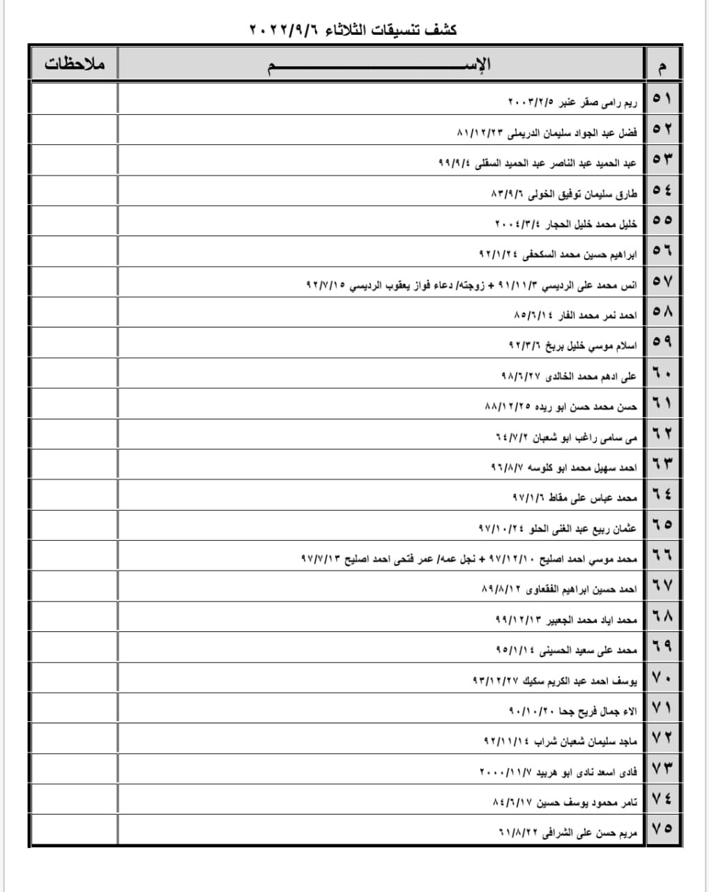 تعلن الهيئة العامة للمعابر والحدود بوزارة الداخلية والأمن الوطني عن وصول كشف "تنسيقات مصرية" للسفر عبر معبر رفح البري يوم الثلاثاء (6 سبتمبر)، والذين عليهم التواجد س 8:00 صباحاً في الصالة الخارجية للمعبر لتسهيل سفرهم.