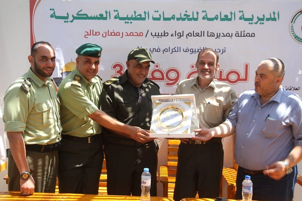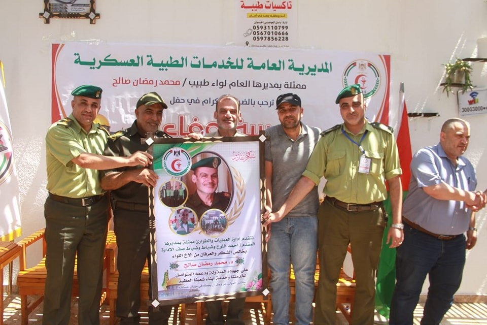 من جانب آخر، كرمت المديرية العامة للخدمات الطبية العسكرية الكوادر العاملة من مستشفى كمال عدوان، خلال العدوان الأخير على قطاع غزة، وذلك في صالة النخيل شمال مدينة غزة.