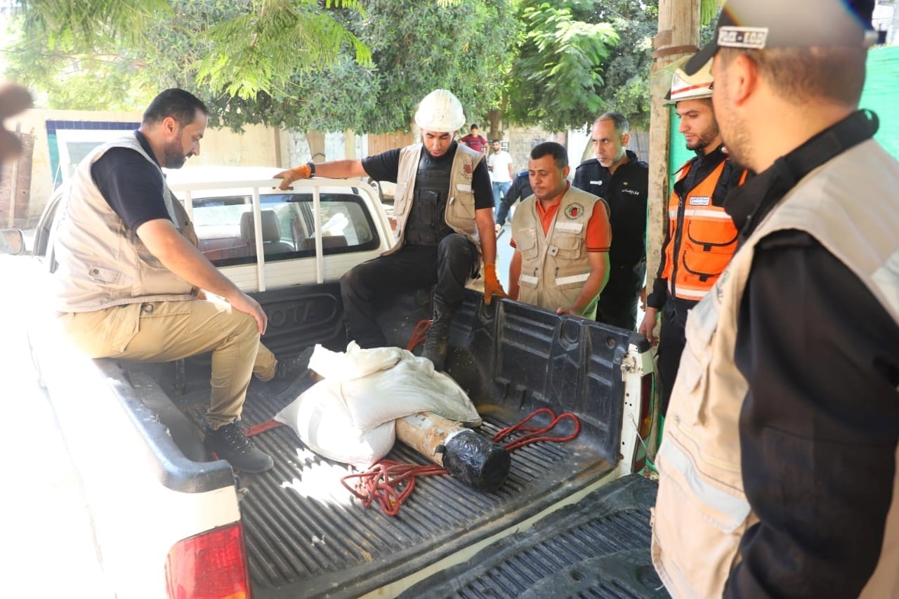 تمكنت إدارة الأدلة الجنائية وهندسة المتفجرات بالشرطة، من تحييد خطر قنبلة من مخلفات الاحتلال بعد استخراجها من منزل أحد المواطنين بمحافظة رفح جنوبي قطاع غزة، بالتعاون مع مؤسسة UNMAS الدولية.