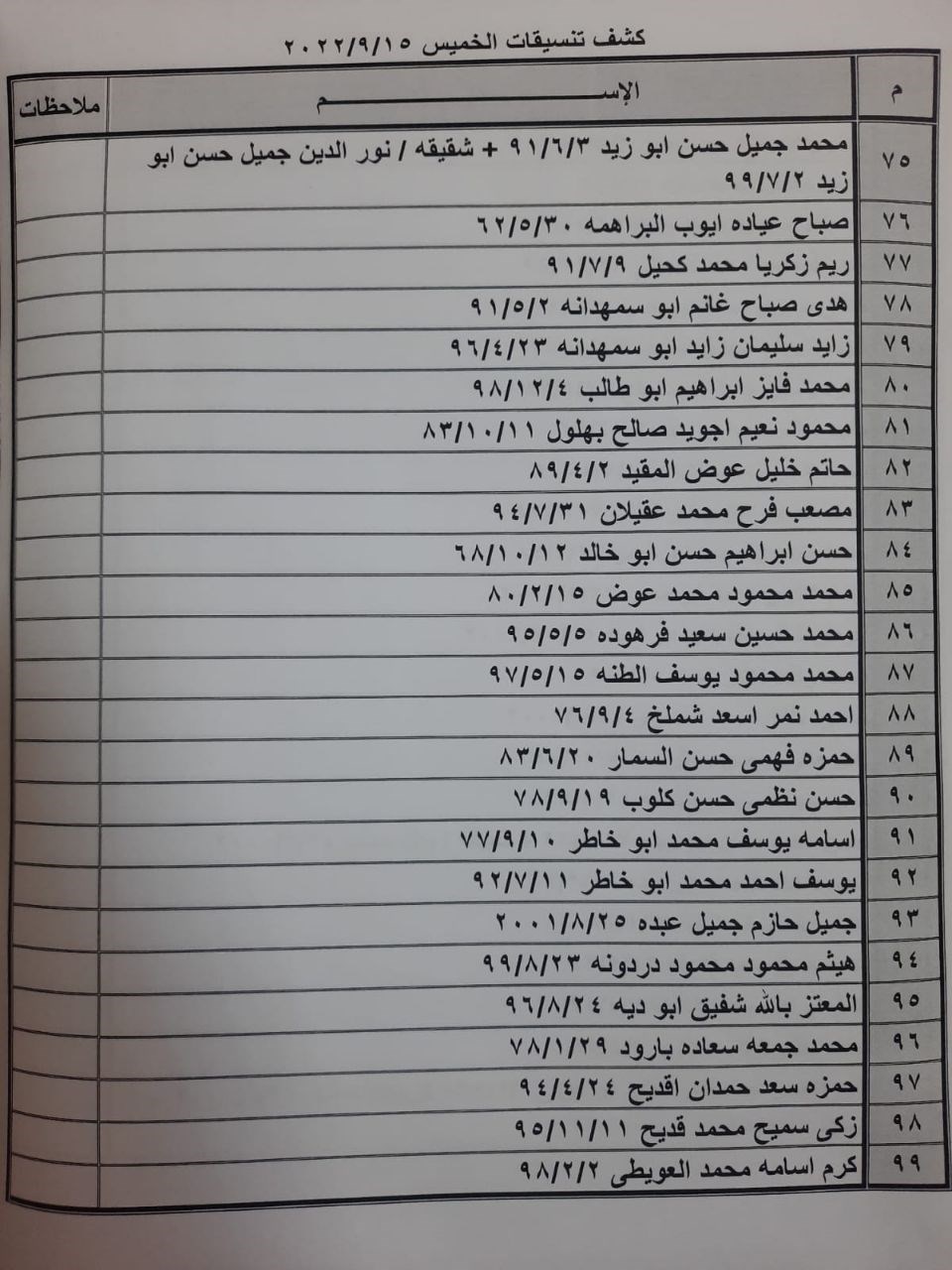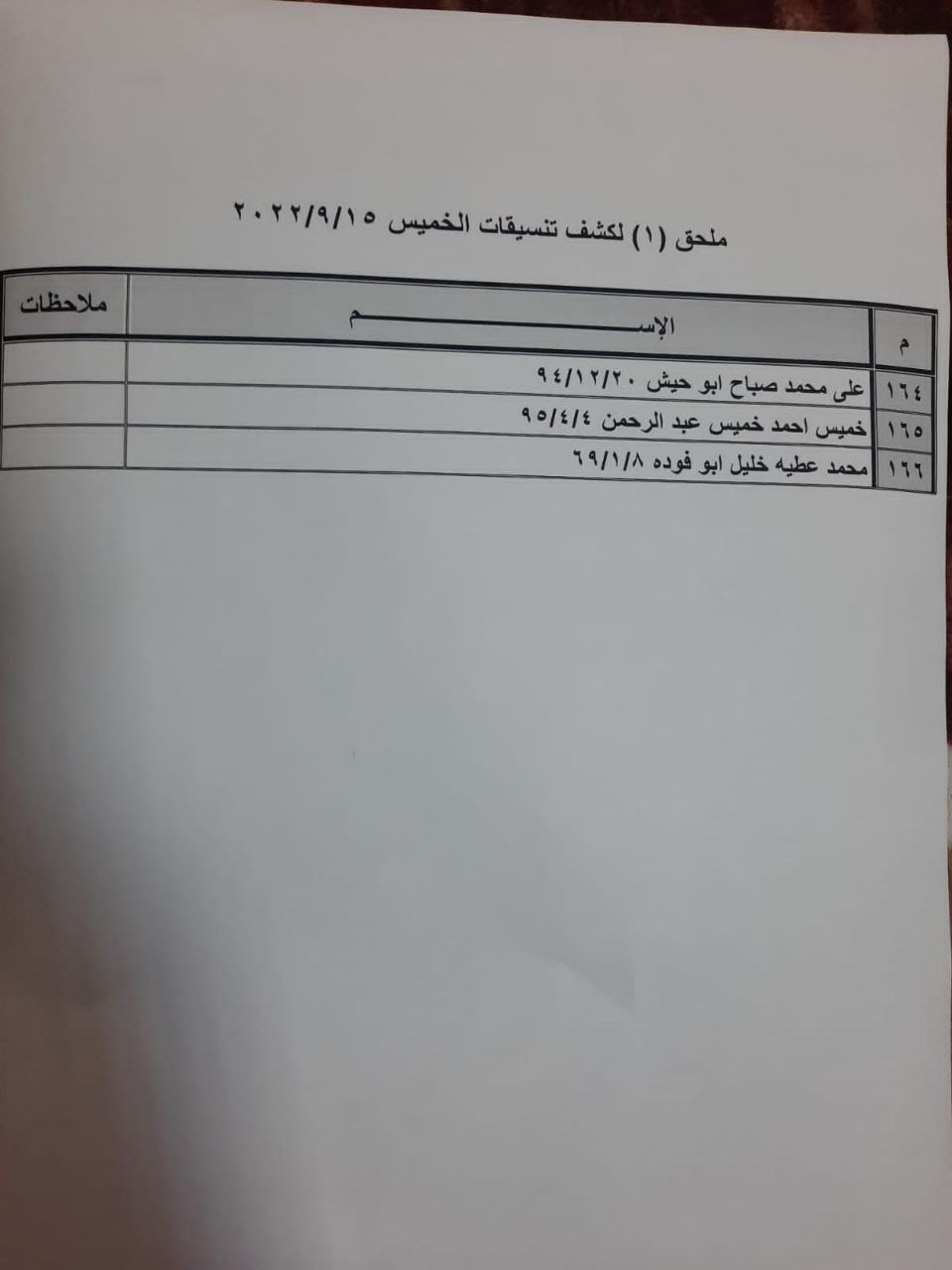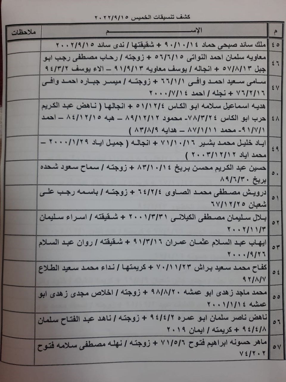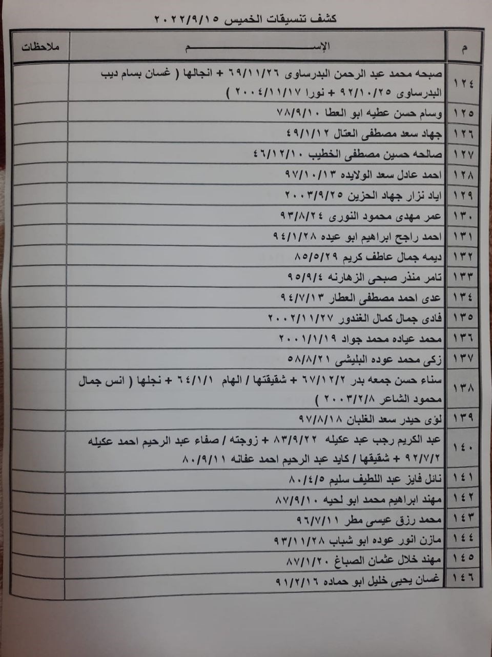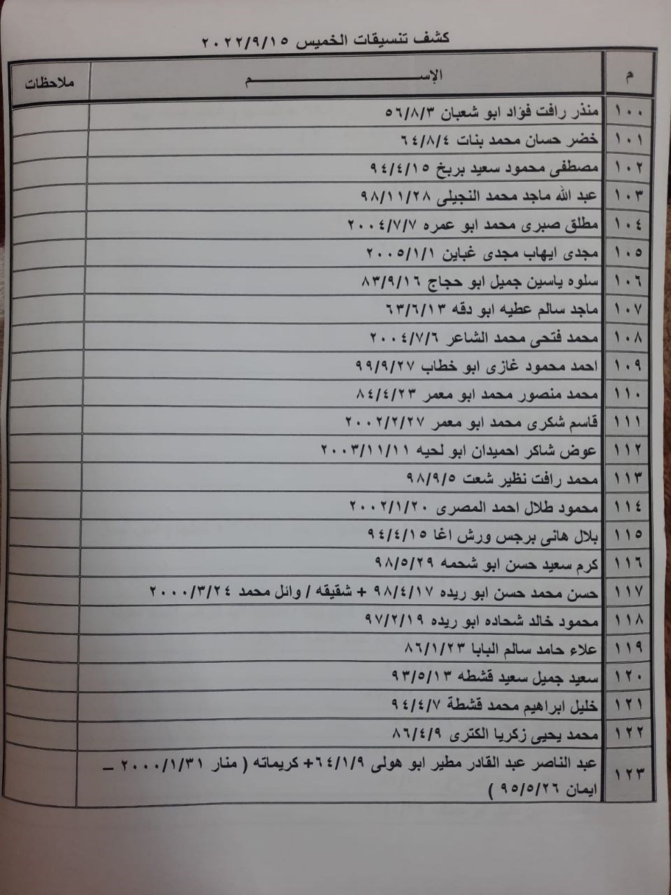 تعلن الهيئة العامة للمعابر والحدود بوزارة الداخلية والأمن الوطني عن وصول كشف "تنسيقات مصرية" للسفر عبر معبر رفح البري يوم الخميس (15 سبتمبر)، والذين عليهم التواجد س 8:00 صباحاً في الصالة الخارجية للمعبر لتسهيل سفرهم.
