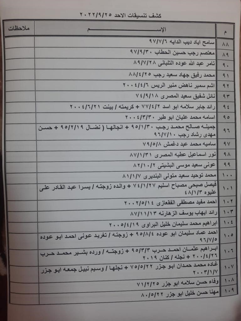 تعلن الهيئة العامة للمعابر والحدود بوزارة الداخلية والأمن الوطني عن وصول كشف "تنسيقات مصرية" للسفر عبر معبر رفح البري يوم الأحد (25 سبتمبر)، والذين عليهم التواجد س 8:00 صباحاً في الصالة الخارجية للمعبر لتسهيل سفرهم.