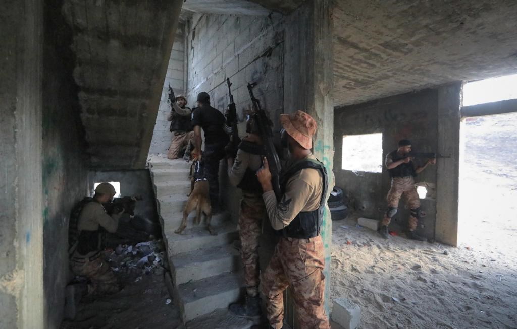نفذ طلاب دورة الصاعقة بكلية الرباط الجامعية بوزارة الداخلية والأمن الوطني، مناورة تدريبية تُحاكي عملية اقتحام عدة مبانٍ تضم "وكراً إجرامياً" لخارجين عن القانون ومروجي مخدرات.