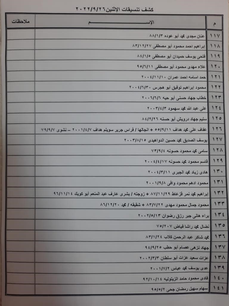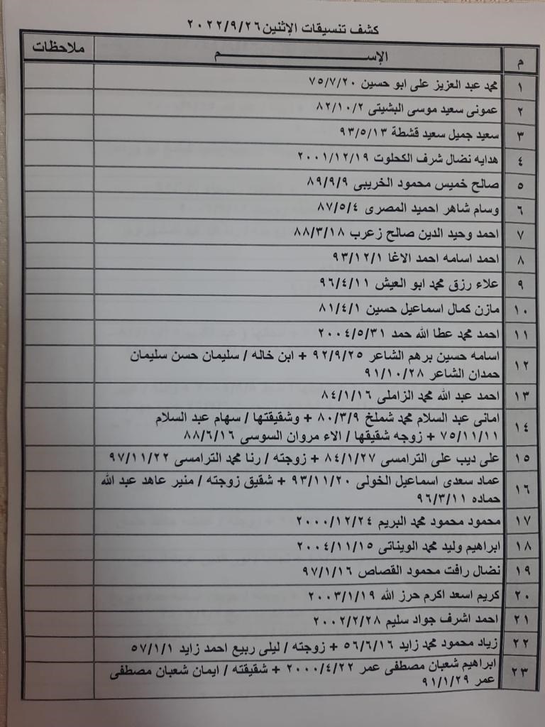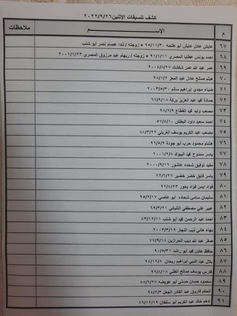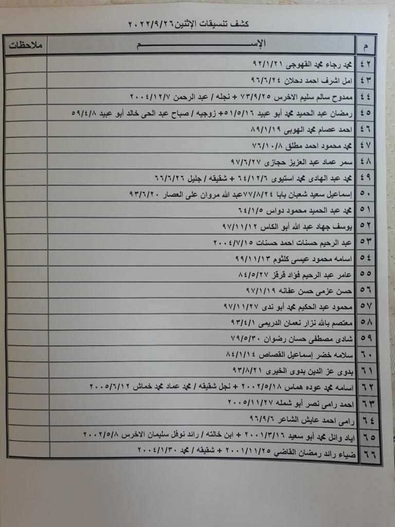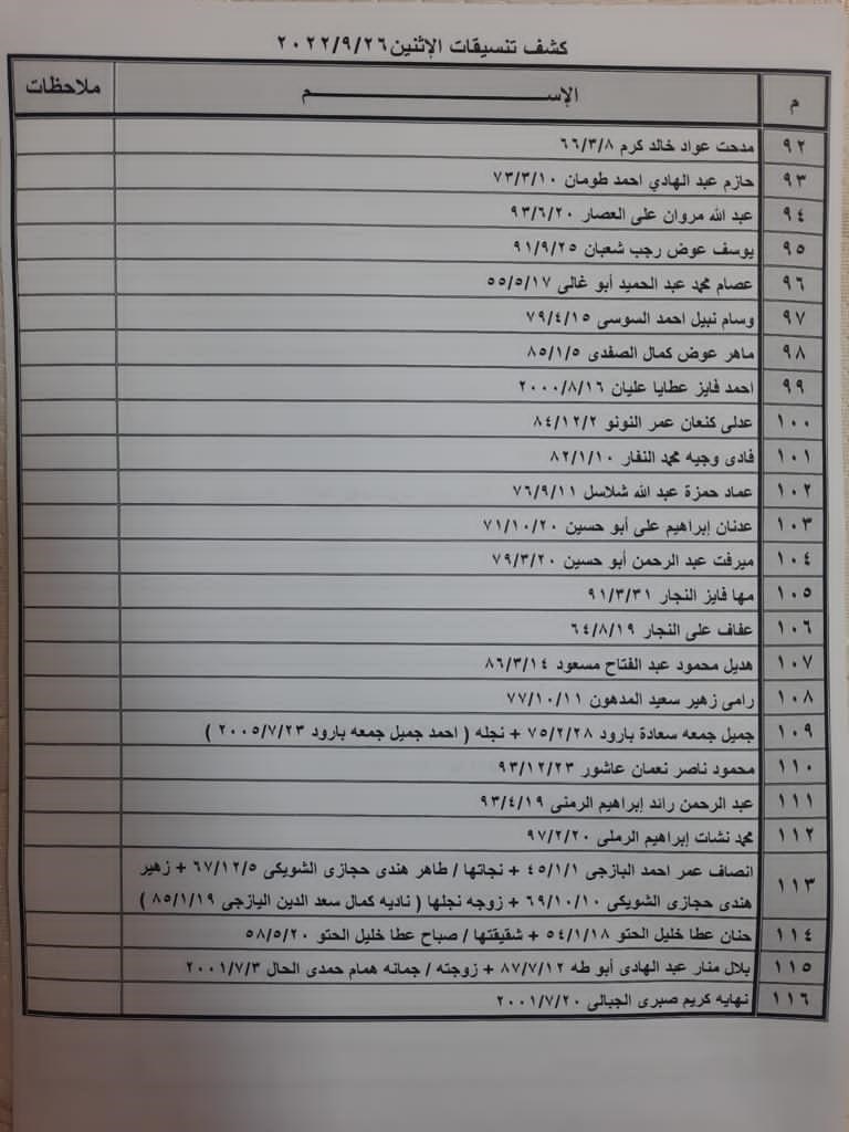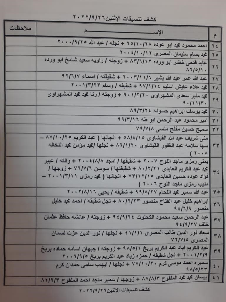 تعلن الهيئة العامة للمعابر والحدود بوزارة الداخلية والأمن الوطني عن وصول كشف "تنسيقات مصرية" للسفر عبر معبر رفح البري يوم الإثنين (26 سبتمبر)، والذين عليهم التواجد س 8:00 صباحاً في الصالة الخارجية للمعبر لتسهيل سفرهم.