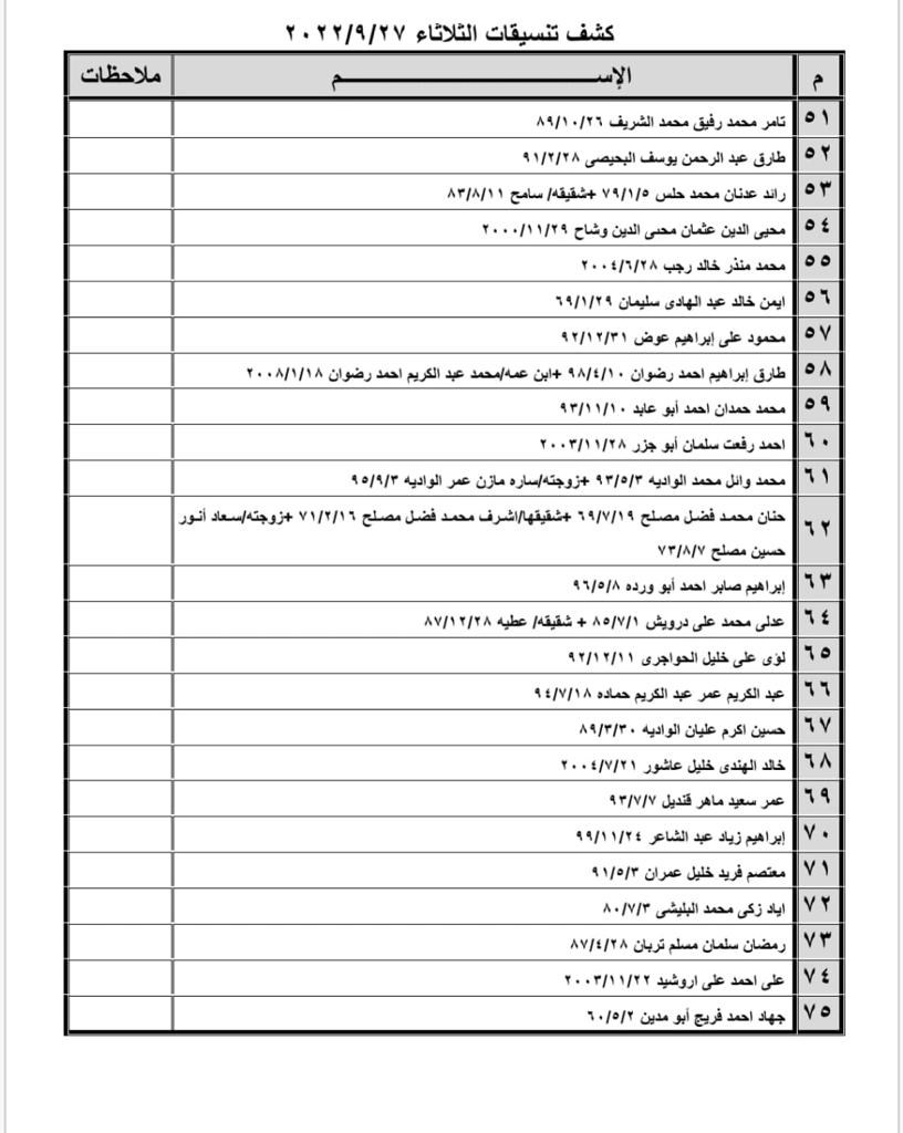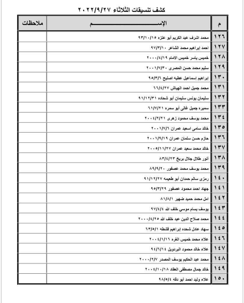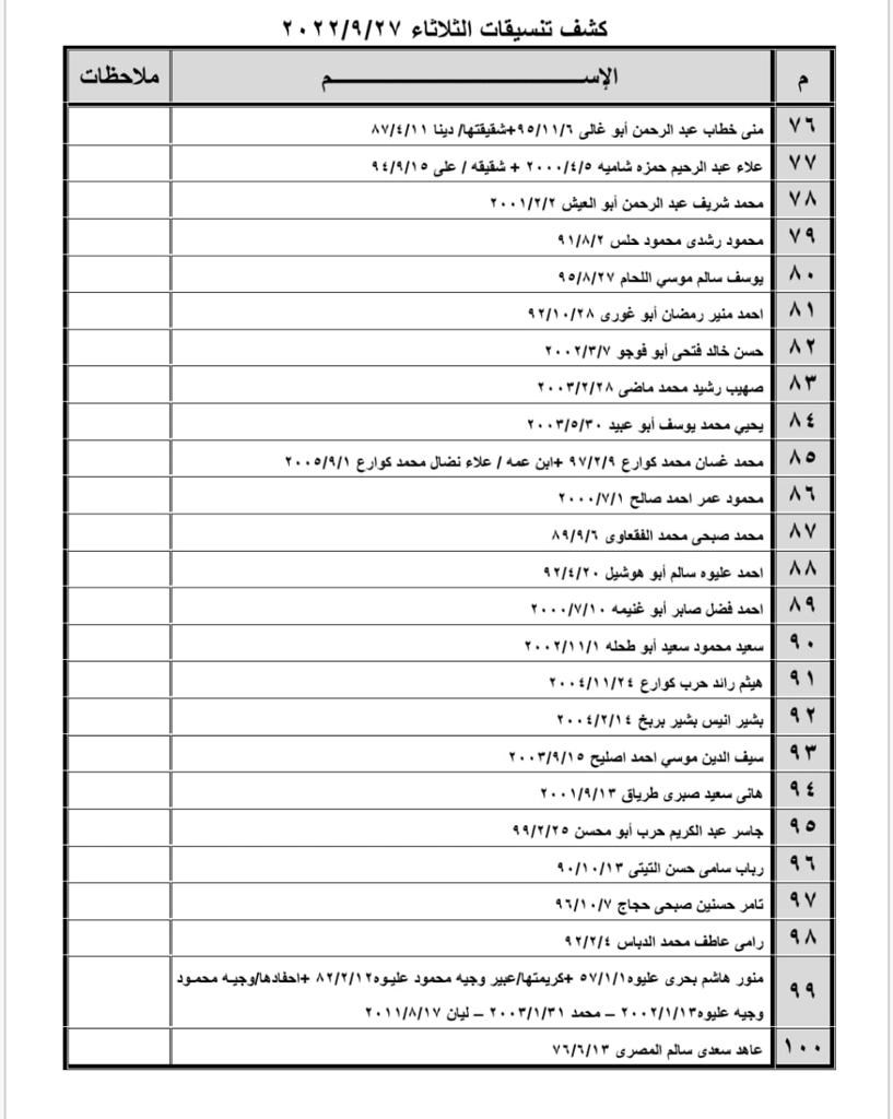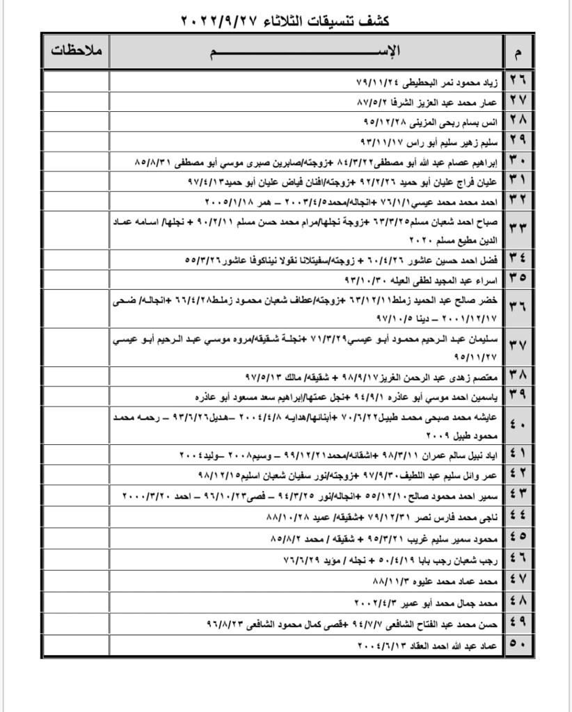 تعلن الهيئة العامة للمعابر والحدود بوزارة الداخلية والأمن الوطني عن وصول كشف "تنسيقات مصرية" للسفر عبر معبر رفح البري يوم غد الثلاثاء (27 سبتمبر)، والذين عليهم التواجد س 8:00 صباحاً في الصالة الخارجية للمعبر لتسهيل سفرهم.