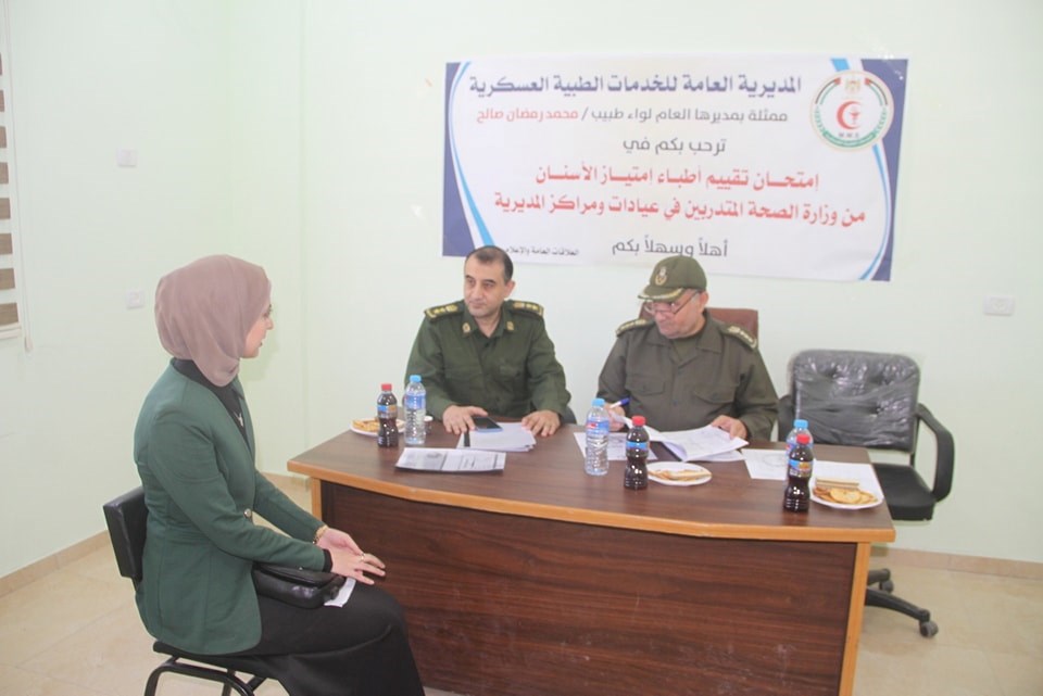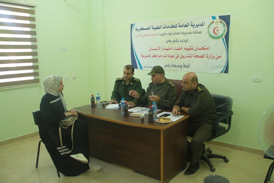 أجرت وحدة التنمية البشرية بالمديرية العامة للخدمات الطبية العسكرية بوزارة الداخلية اختبارات تقييم "امتياز" أطباء الأسنان الواردين من وزارة الصحة والذين أنهوا فترات تدريبهم لدي مستشفيات وعيادات ومراكز المديرية في كافة محافظات قطاع غزة وذلك بمقرها الإداري الجديد "بلسم" بموقع أنصار غرب مدينة غزة.