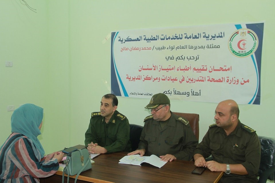 كما ضمت اللجنة المكلفة بإجراء الاختبارات كل من العميد محمد عوض مساعد المدير العام لشؤون التخطيط والموارد البشرية والعقيد علاء الهبيل مدير وحدة التنمية البشرية والعقيد سعدو خلف مدير لجنة إختبارات امتياز أطباء الأسنان.