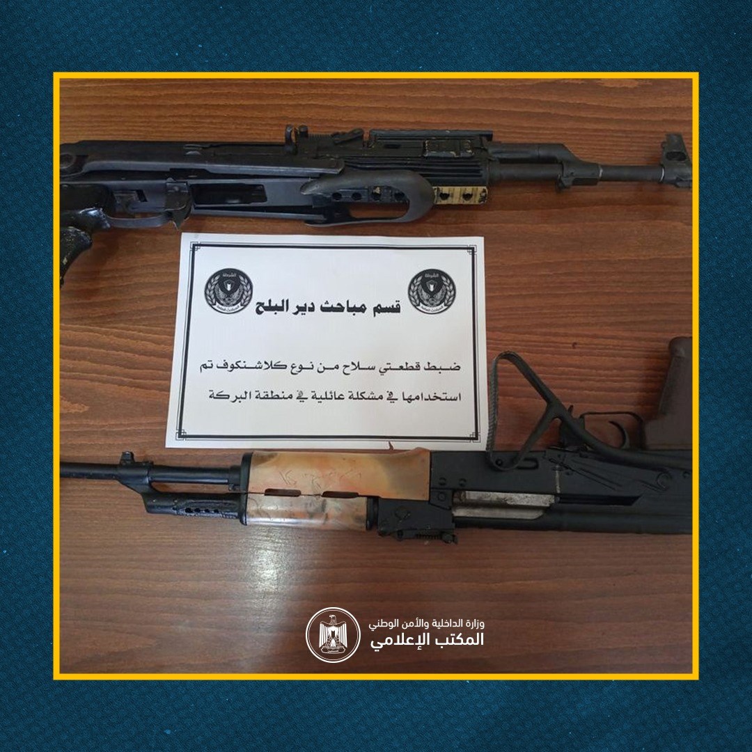 وأشارت مباحث دير البلح إلى أن الموقوفين المذكورين أقرا بإطلاقهما للنار خلال الشجار، وبدلالتهما تم ضبط السلاحين المستخدم في الواقعة وهما من نوع كلاشنكوف.