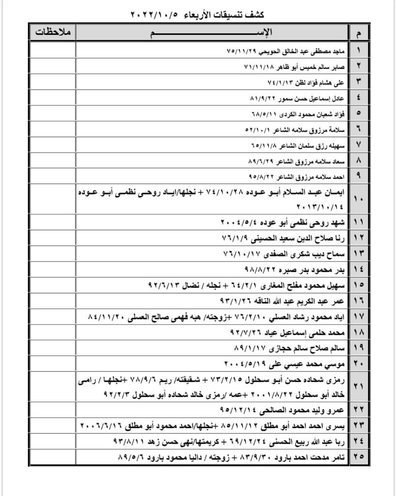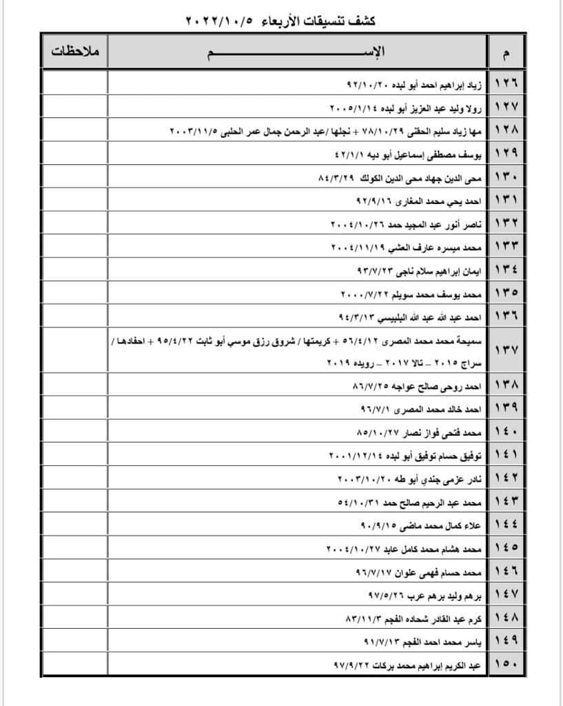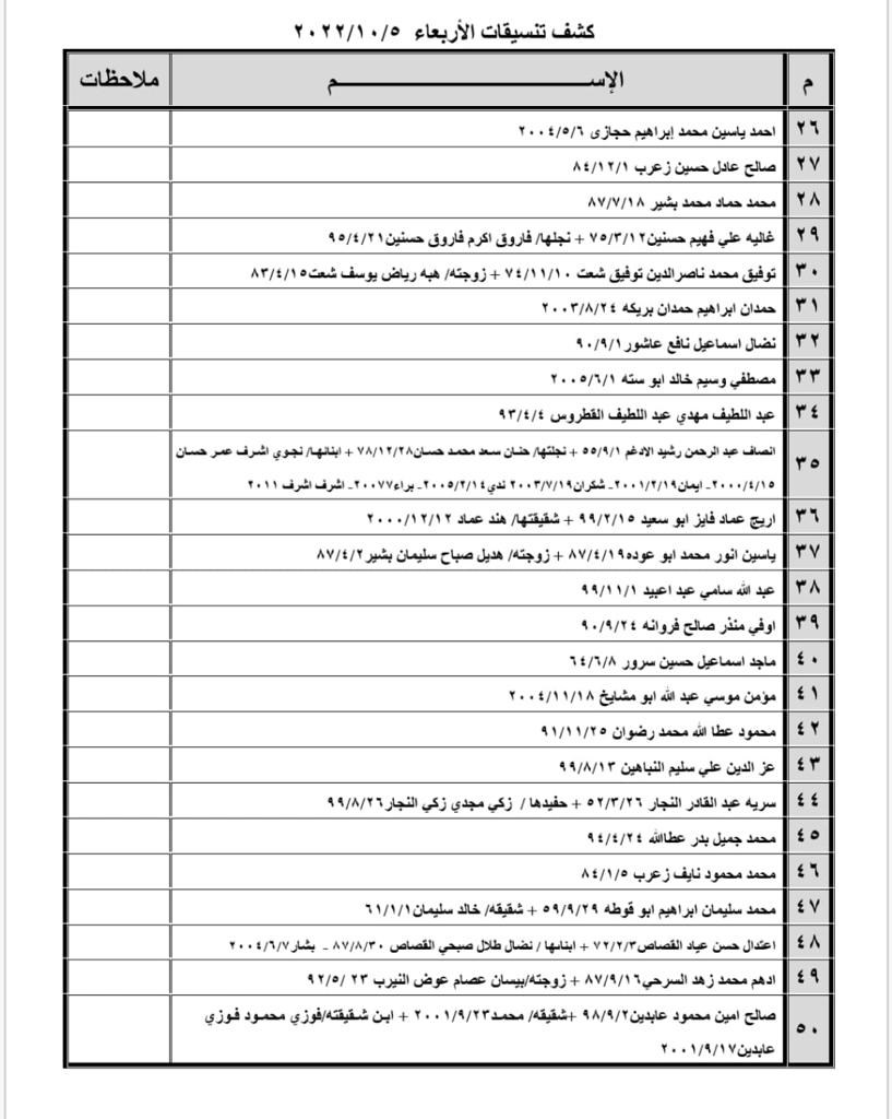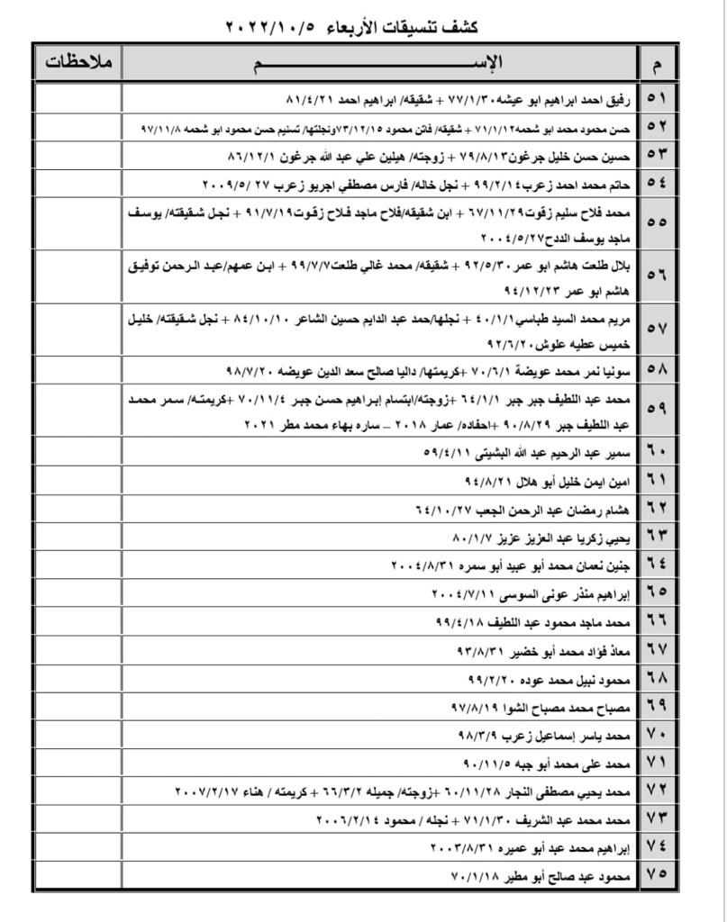 تعلن الهيئة العامة للمعابر والحدود بوزارة الداخلية والأمن الوطني عن وصول كشف "تنسيقات مصرية" للسفر عبر معبر رفح البري يوم الأربعاء (5 أكتوبر)، والذين عليهم التواجد س 8:00 صباحاً في الصالة الخارجية للمعبر لتسهيل سفرهم.