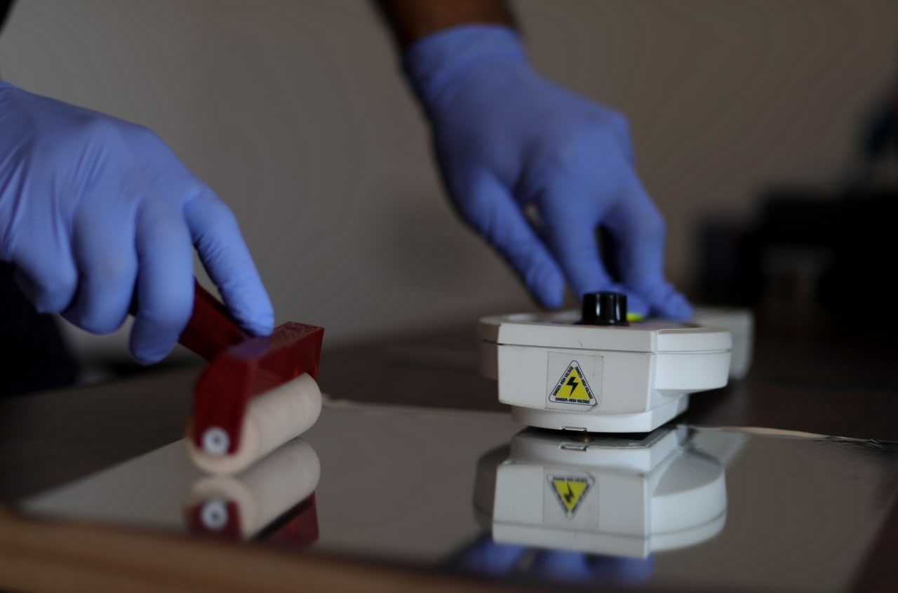 - ويضم القسم ثلاثة أجهزة وأدوات هي: جهاز المجهر المقارن، وجهاز رافع آثار القدم الإلكتروستاتيكي، ولاقط المقذوفات والظروف الفارغة.