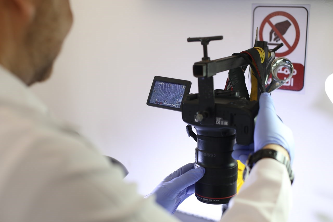 ويرتكز عمل المعمل الجنائي بإدارة الأدلة الجنائية وهندسة المتفجرات، على معاينة مسرح الجريمة والحفاظ عليه وجمع الآثار الموجودة بالأساليب العلمية، ومن ثم إخضاعها للفحص الدقيق.