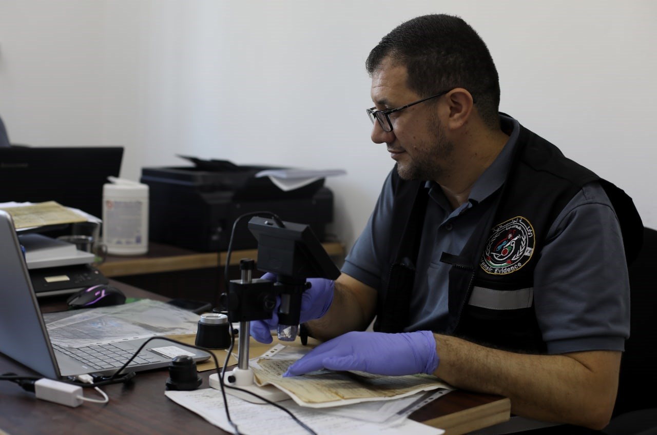 - يعمل على تطوير الخبرة الأمنية في كشف التزييف والتزوير للمستندات والوثائق الرسمية بأنواعها كافة، والعملات الورقية، والجوازات، وكشف التوقيعات والأختام المزورة، والبطاقات الائتمانية وغيرها.