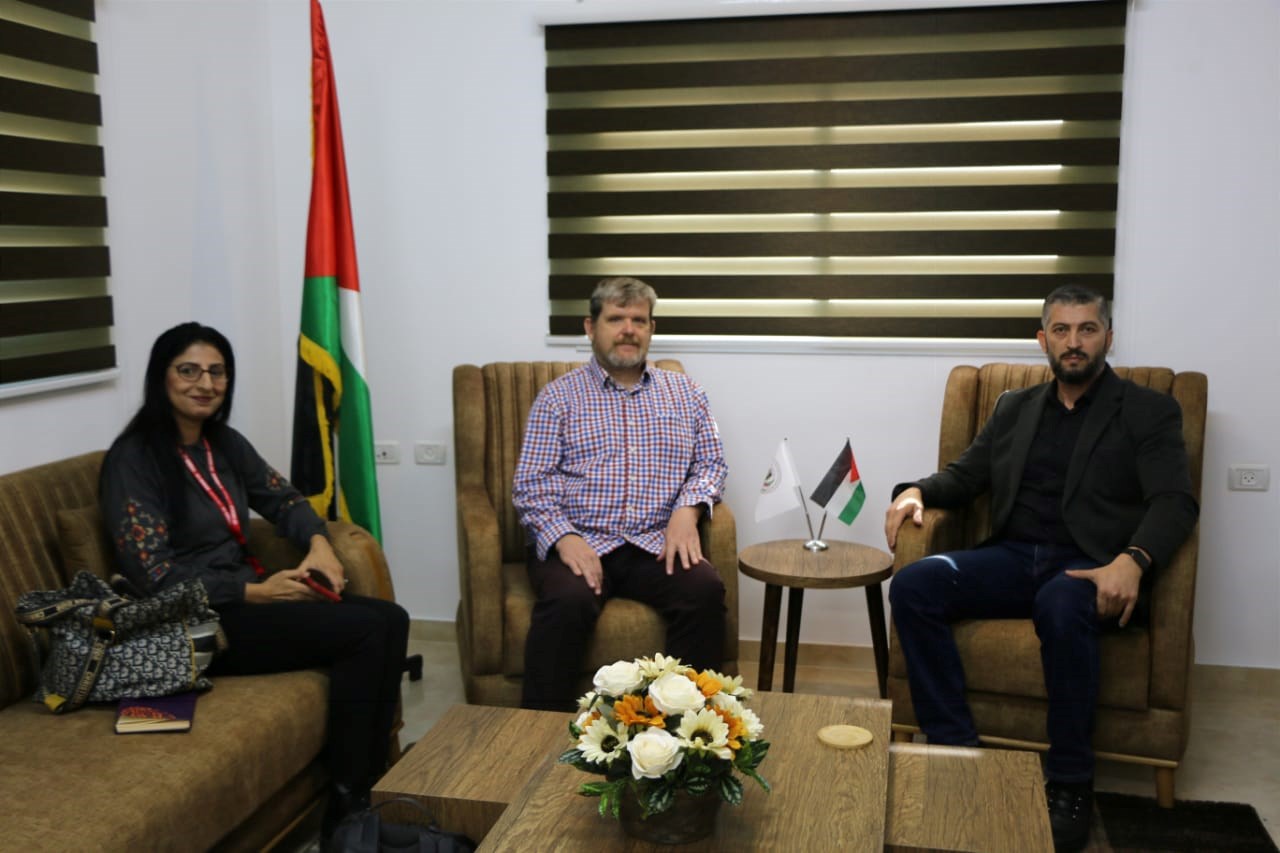 بحث مدير إدارة الأدلة الجنائية وهندسة المتفجرات بالشرطة العميد عائد حمادة سبل التعاون المشترك مع مدير مؤسسة UNMAS الدولية - مكتب فلسطين السيد مارك كانولي خلال لقائه بمكتبه بمدينة عرفات للشرطة بمدينة غزة.