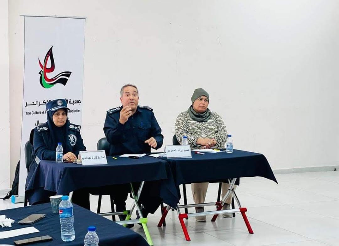 وحضر الورشة كل من: نائب مدير إدارة الشرطة المجتمعية العميد رائد العامودي، ومديرة دائرة الأسرة والطفولة المقدم فايزة عبد الدايم، وأ. مها الراعي مديرة شبكة "وصال" التابعة لجمعية الثقافة والفكر الحر، وعدد من أعضاء وممثلي الجمعية.