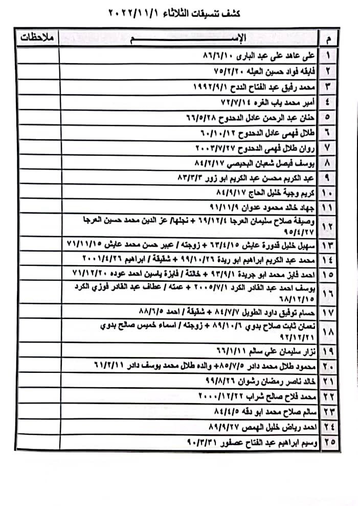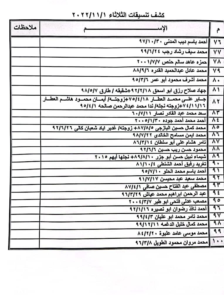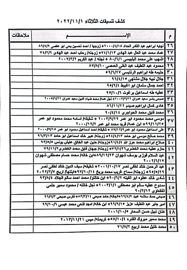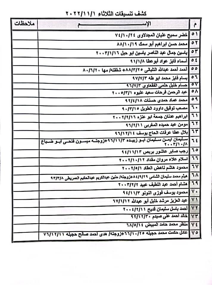 تعلن الهيئة العامة للمعابر والحدود بوزارة الداخلية والأمن الوطني عن وصول كشف "تنسيقات مصرية" للسفر عبر معبر رفح البري يوم الثلاثاء (1 نوفمبر)، والذين عليهم التواجد س 7:00 صباحاً في الصالة الخارجية للمعبر لتسهيل سفرهم.