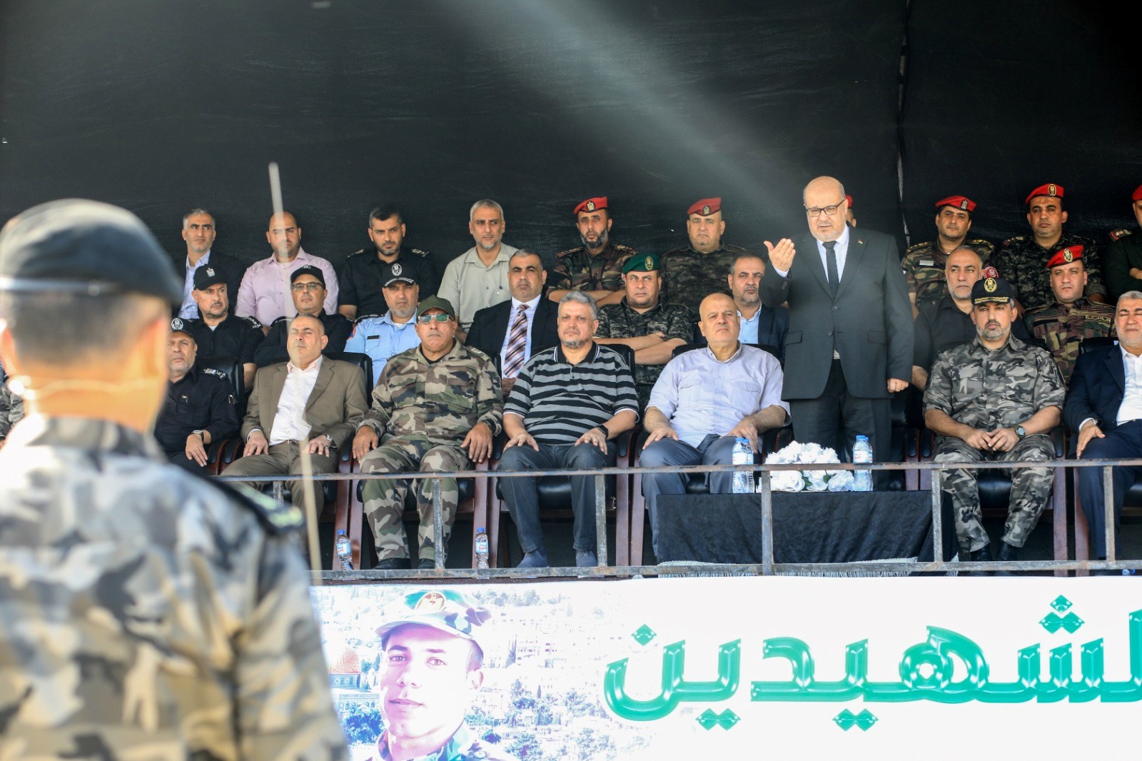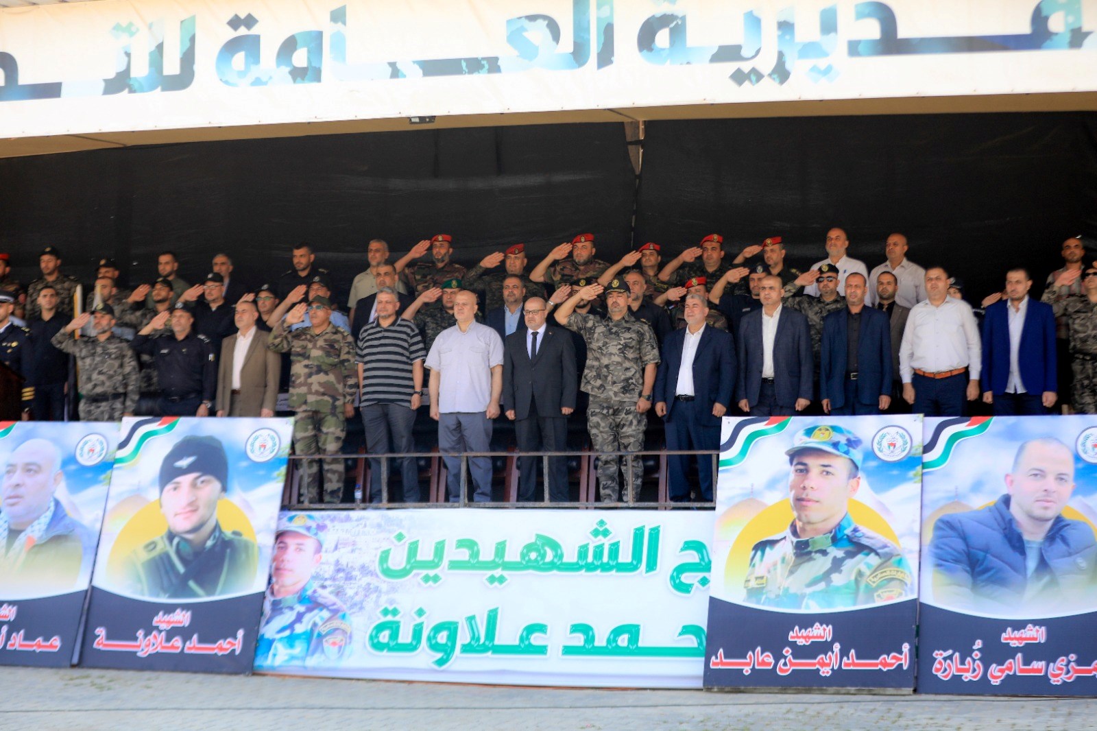 وخلال كلمة له، قال رئيس متابعة العمل الحكومي أ. عصام الدعليس تحت هذا العنوان المهيب يأتي حفلنا اليوم، الذي يحمل اسم أسدين هصورين من أسود الأجهزة الأمنية، وهما الشهيد أحمد عابد والشهيد أحمد علاونة اللذين أقدما على مقارعة الاحتلال بلباسهما الرسمي، وأثخنا فيه بعد ممارسة عنجهيته وهمجيته تجاه أبناء شعبنا.