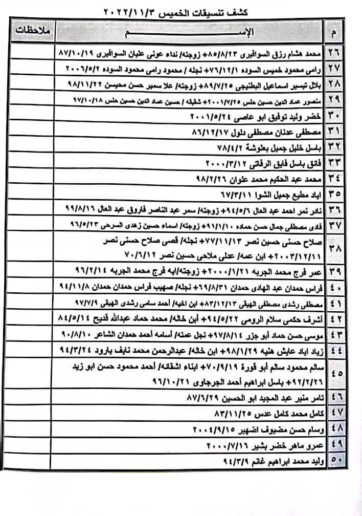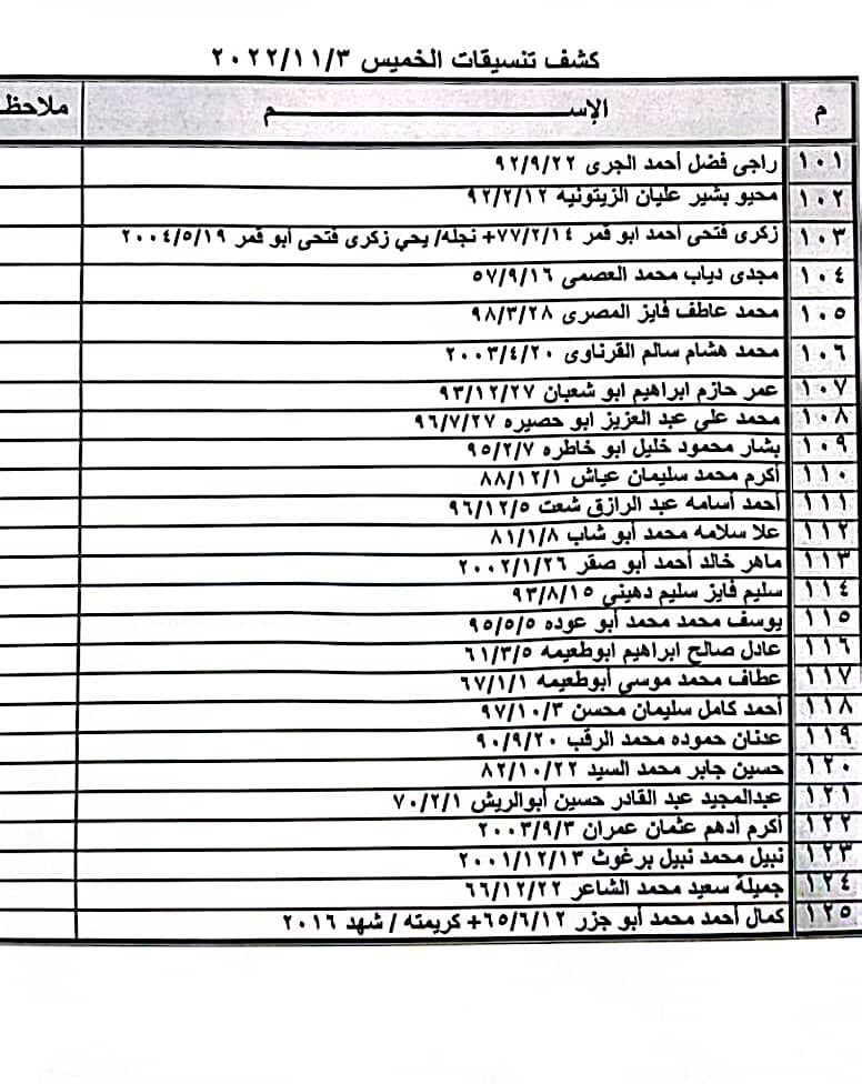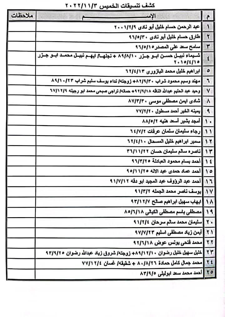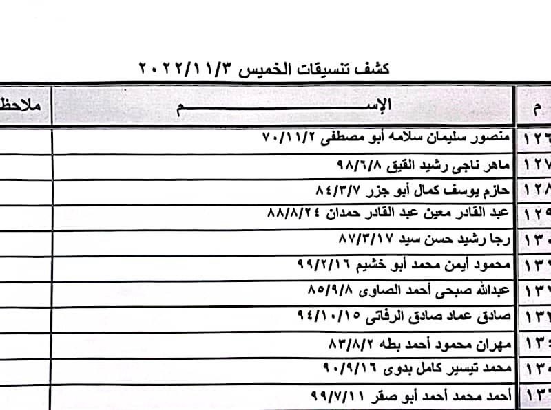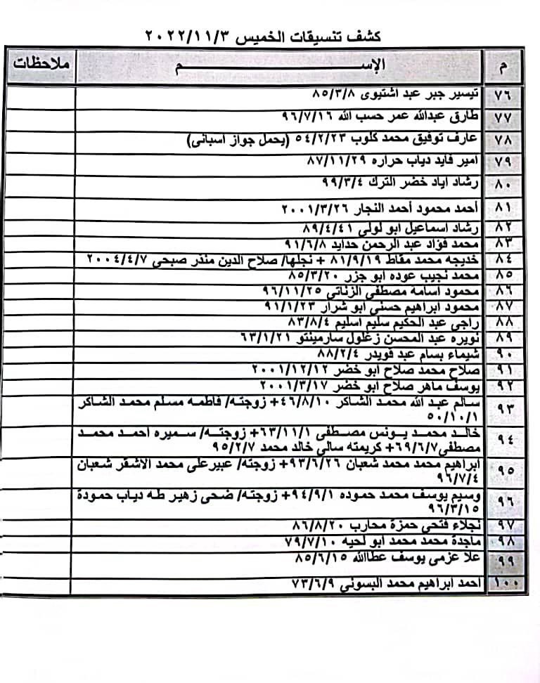 تعلن الهيئة العامة للمعابر والحدود بوزارة الداخلية والأمن الوطني عن وصول كشف "تنسيقات مصرية" للسفر عبر معبر رفح البري يوم غد الخميس (3 نوفمبر)، والذين عليهم التواجد س 7:00 صباحاً في الصالة الخارجية للمعبر لتسهيل سفرهم.