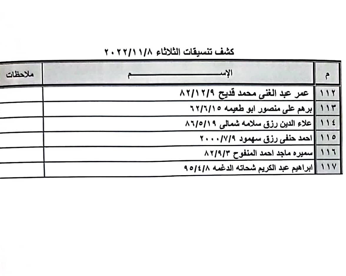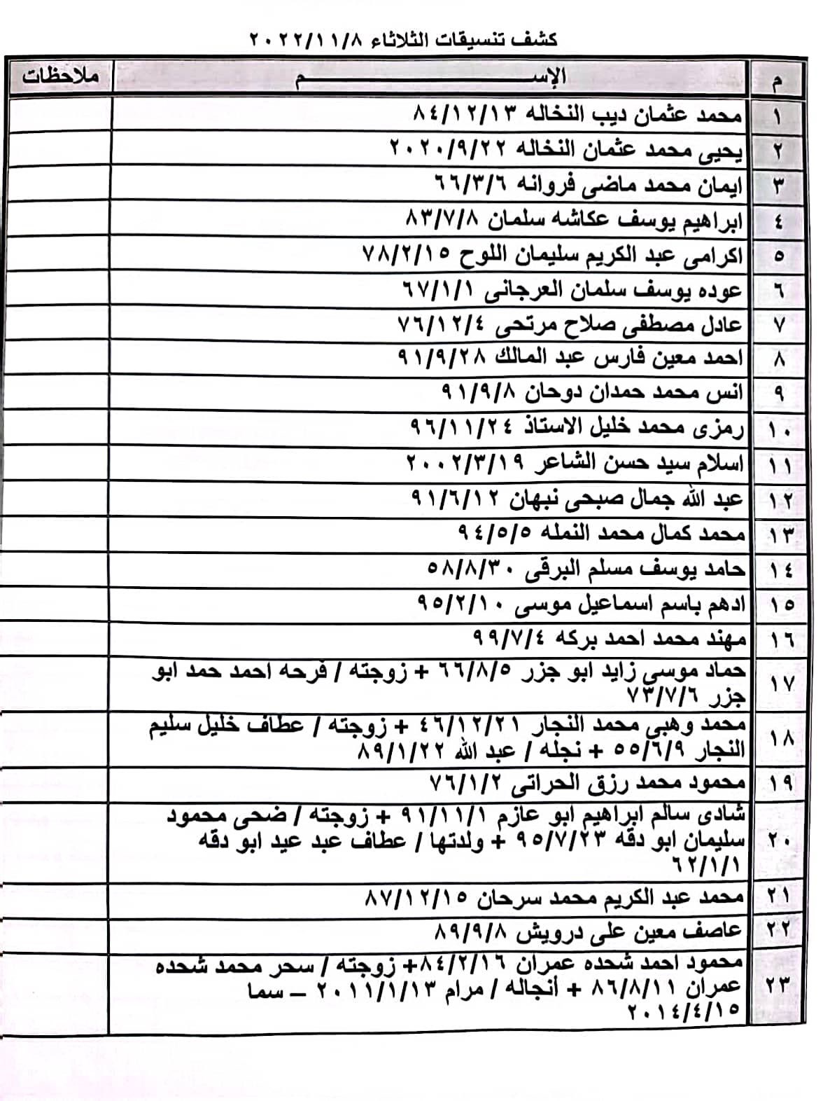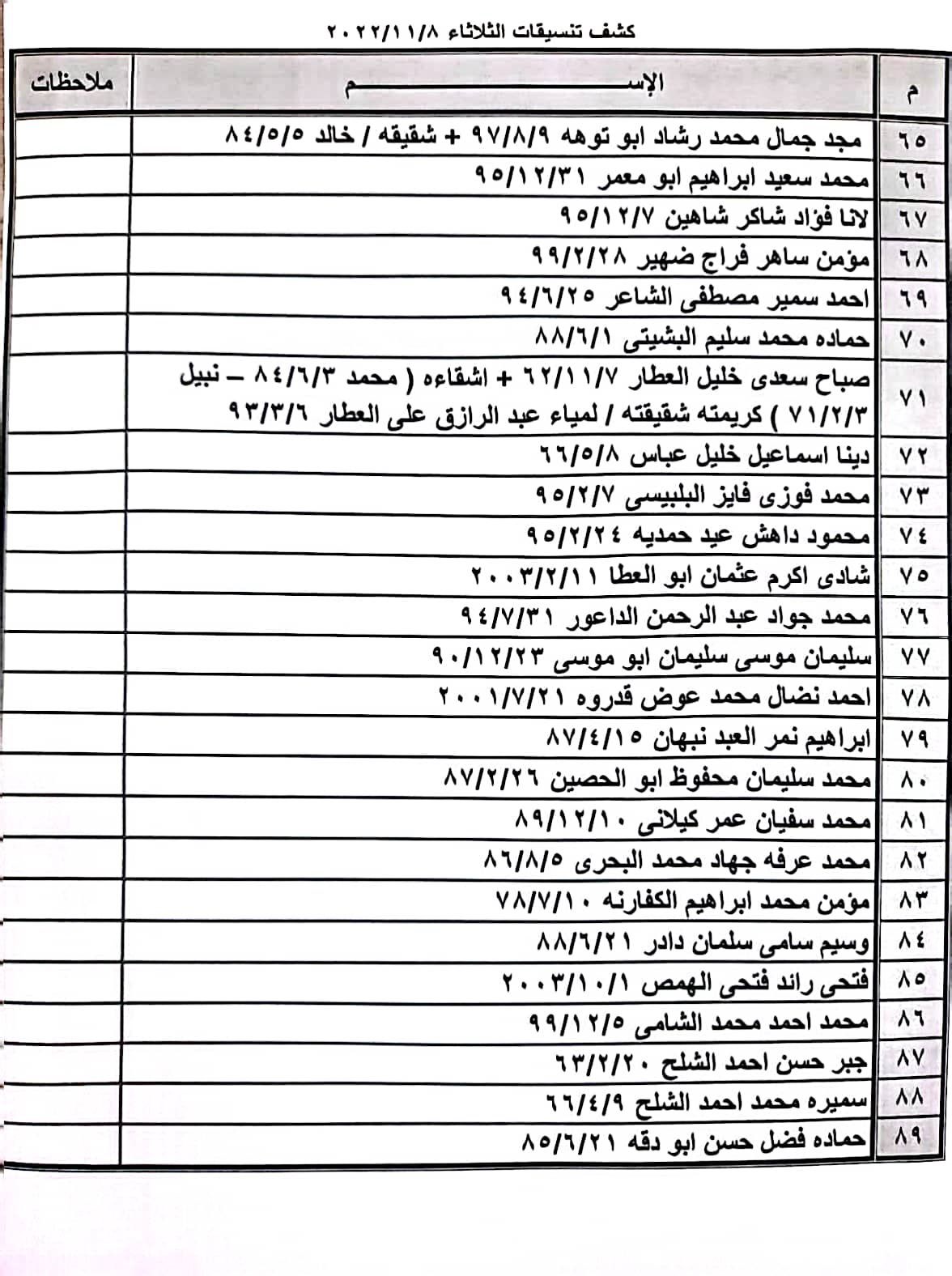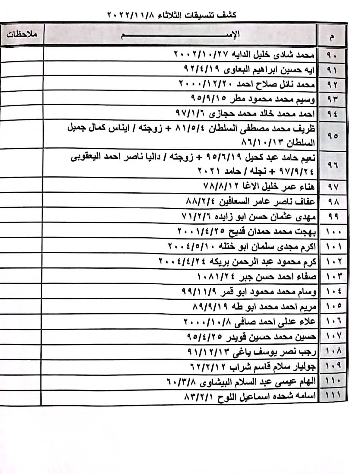 تعلن الهيئة العامة للمعابر والحدود بوزارة الداخلية والأمن الوطني عن وصول كشف "تنسيقات مصرية" للسفر عبر معبر رفح البري يوم الثلاثاء (8 نوفمبر)، والذين عليهم التواجد س 7:00 صباحاً في الصالة الخارجية للمعبر لتسهيل سفرهم.