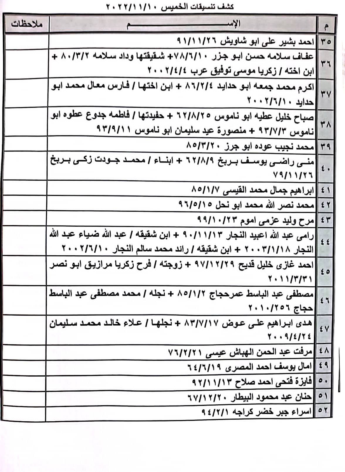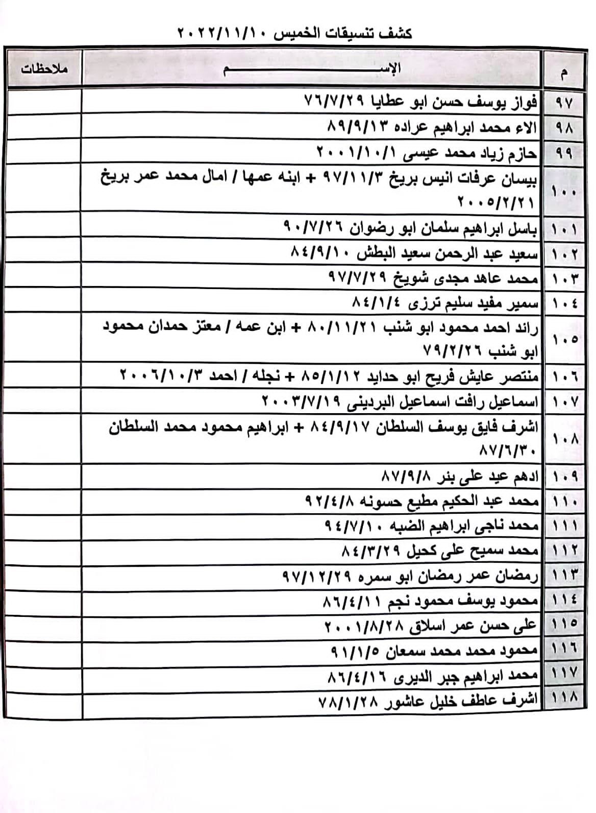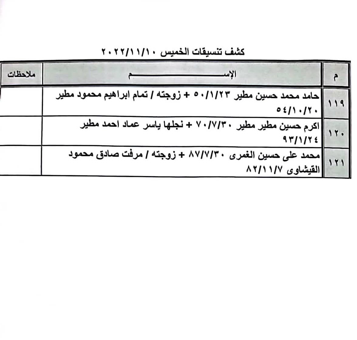 تعلن الهيئة العامة للمعابر والحدود بوزارة الداخلية والأمن الوطني عن وصول كشف "تنسيقات مصرية" للسفر عبر معبر رفح البري يوم الخميس (10 نوفمبر)، والذين عليهم التواجد س 7:00 صباحاً في الصالة الخارجية للمعبر لتسهيل سفرهم.