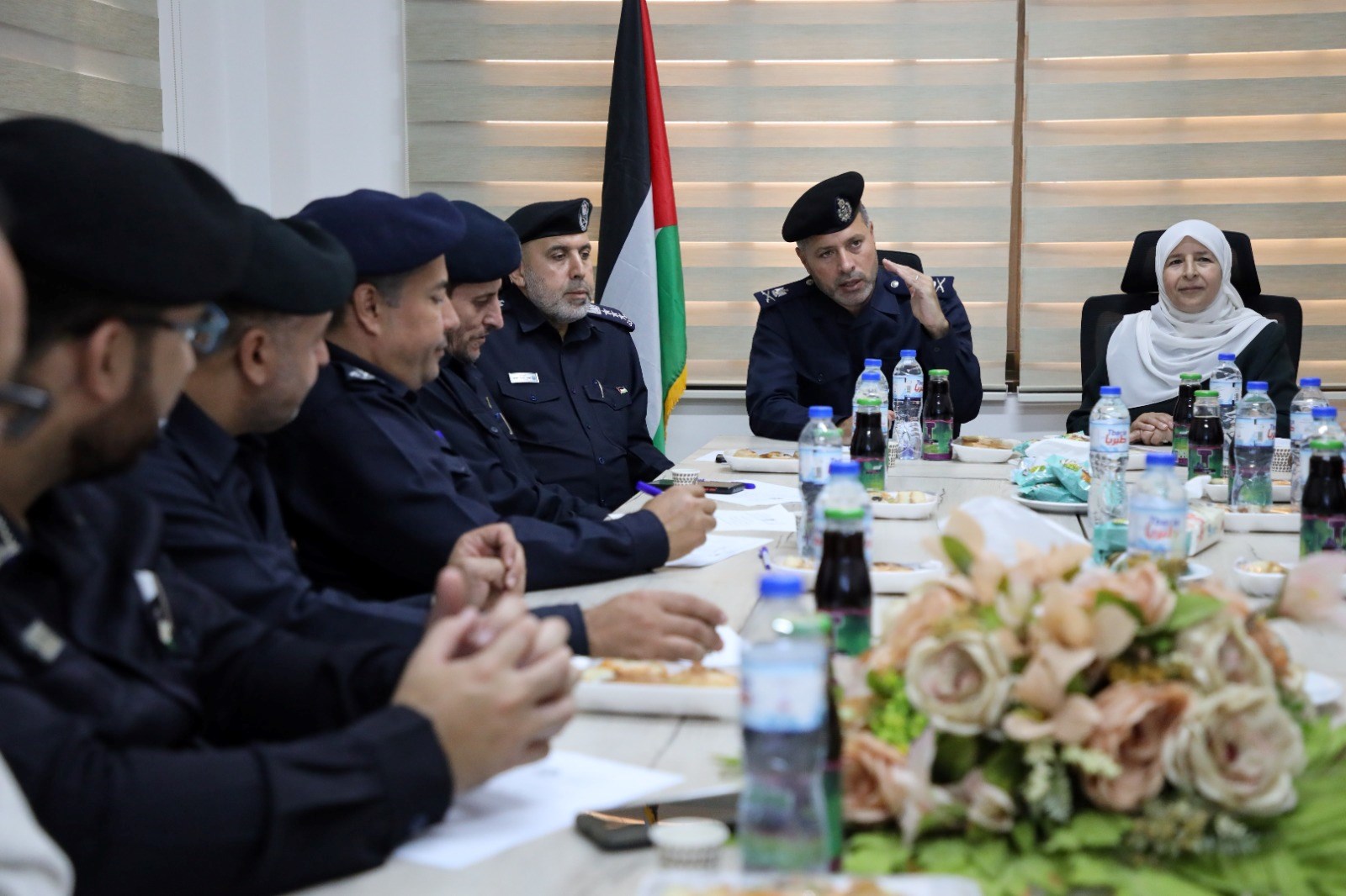 ناقش مدير عام الشرطة الفلسطيينة اللواء محمود صلاح سبل تعزيز حماية المرأة ومعالجة قضاياها، مع وكيل مساعد وزارة شؤون المرأة أ. أميرة هارون، وذلك خلال ورشة عمل مشتركة بين الطرفين.