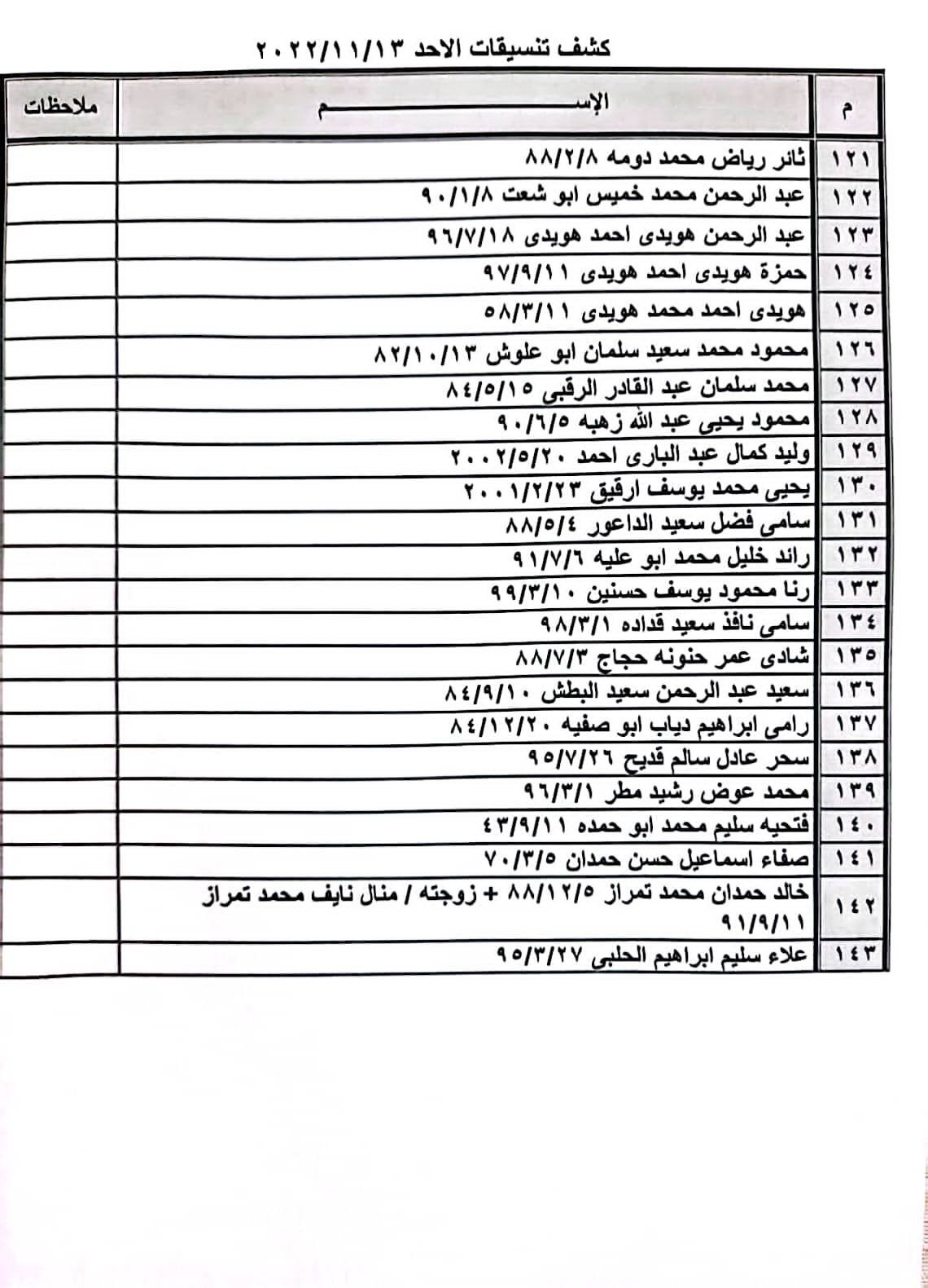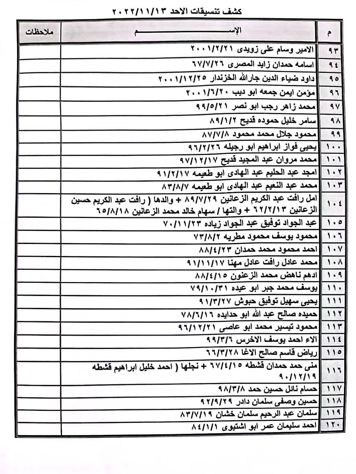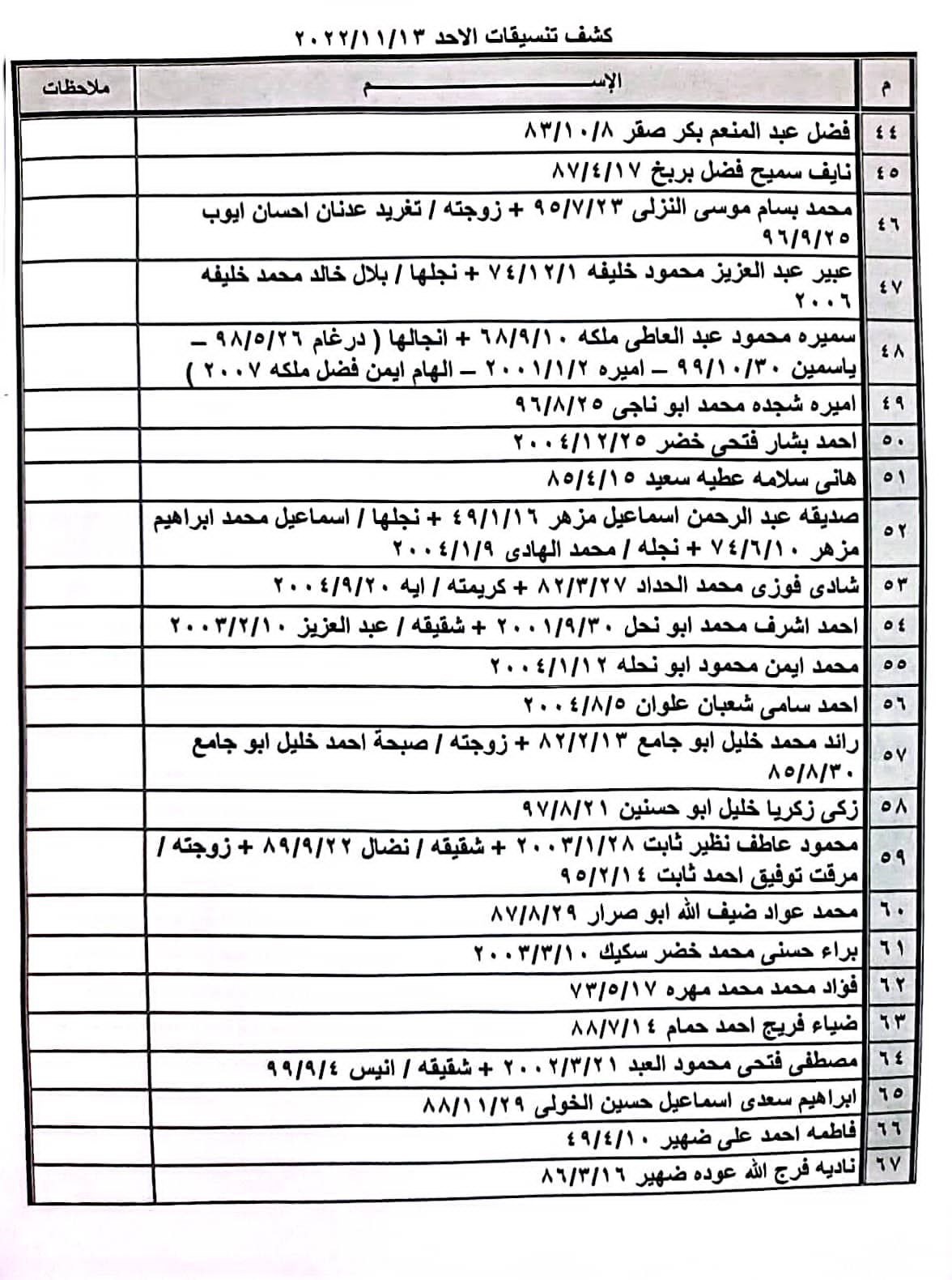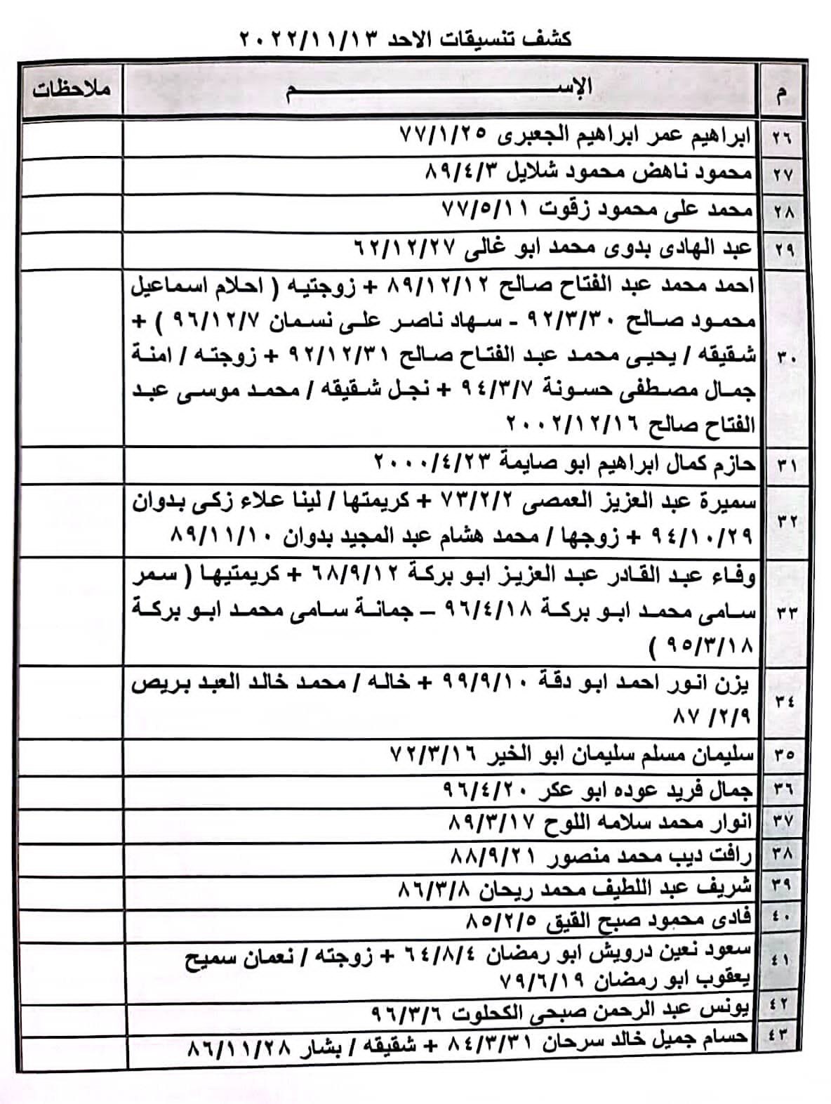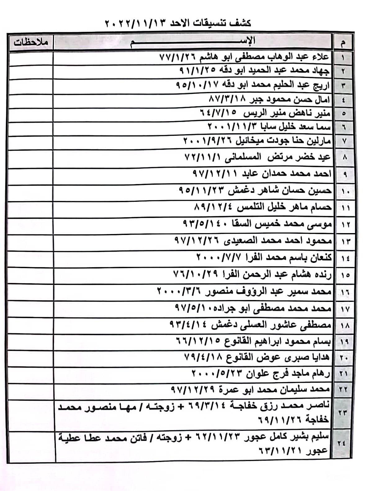 تعلن الهيئة العامة للمعابر والحدود بوزارة الداخلية والأمن الوطني عن وصول كشف "تنسيقات مصرية" للسفر عبر معبر رفح البري يوم الأحد (13 نوفمبر)، والذين عليهم التواجد س 7:00 صباحاً في الصالة الخارجية للمعبر لتسهيل سفرهم.