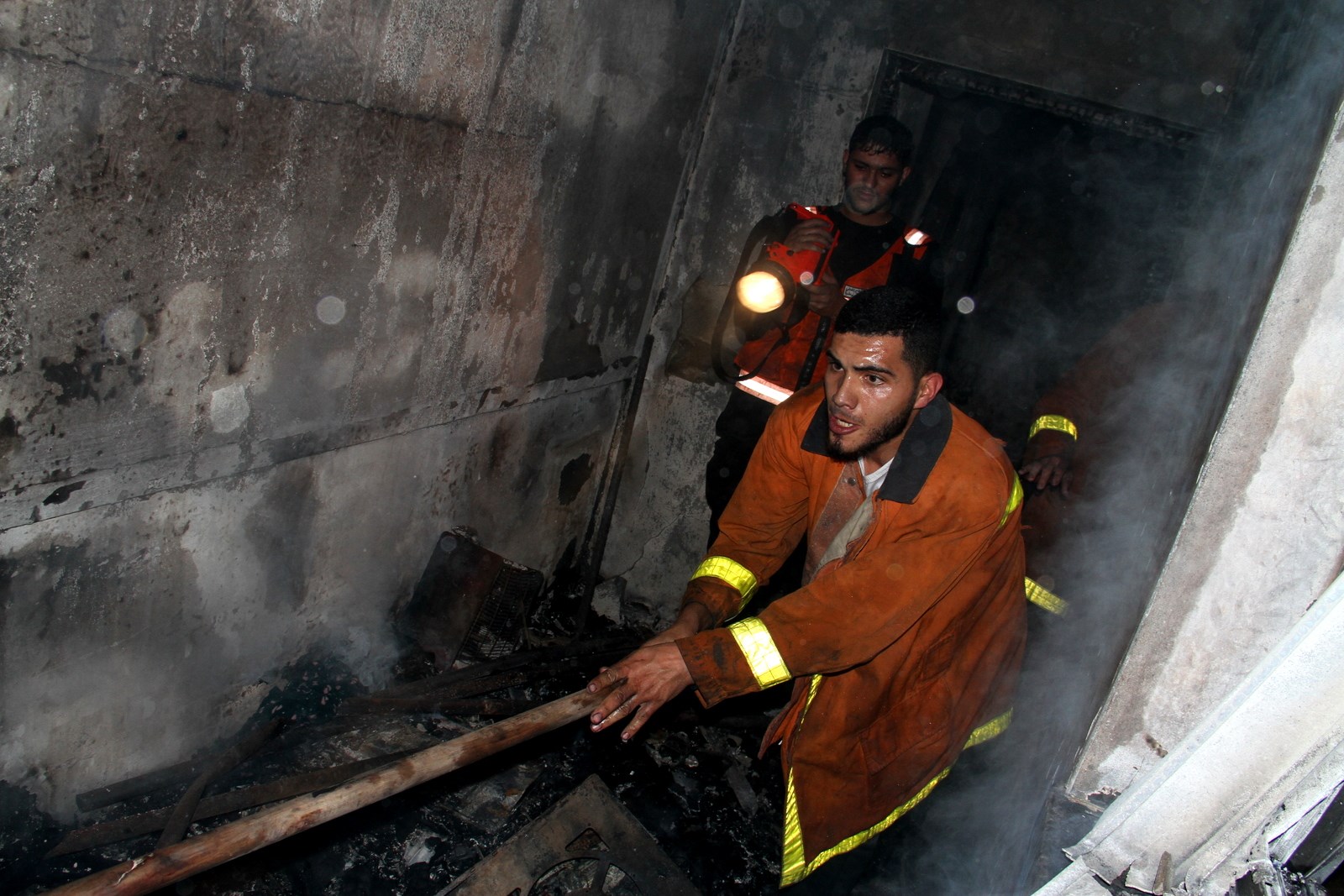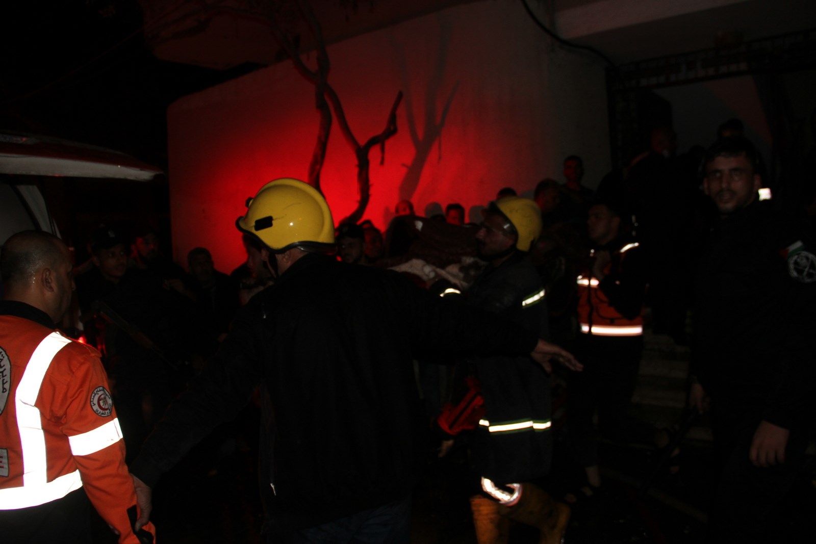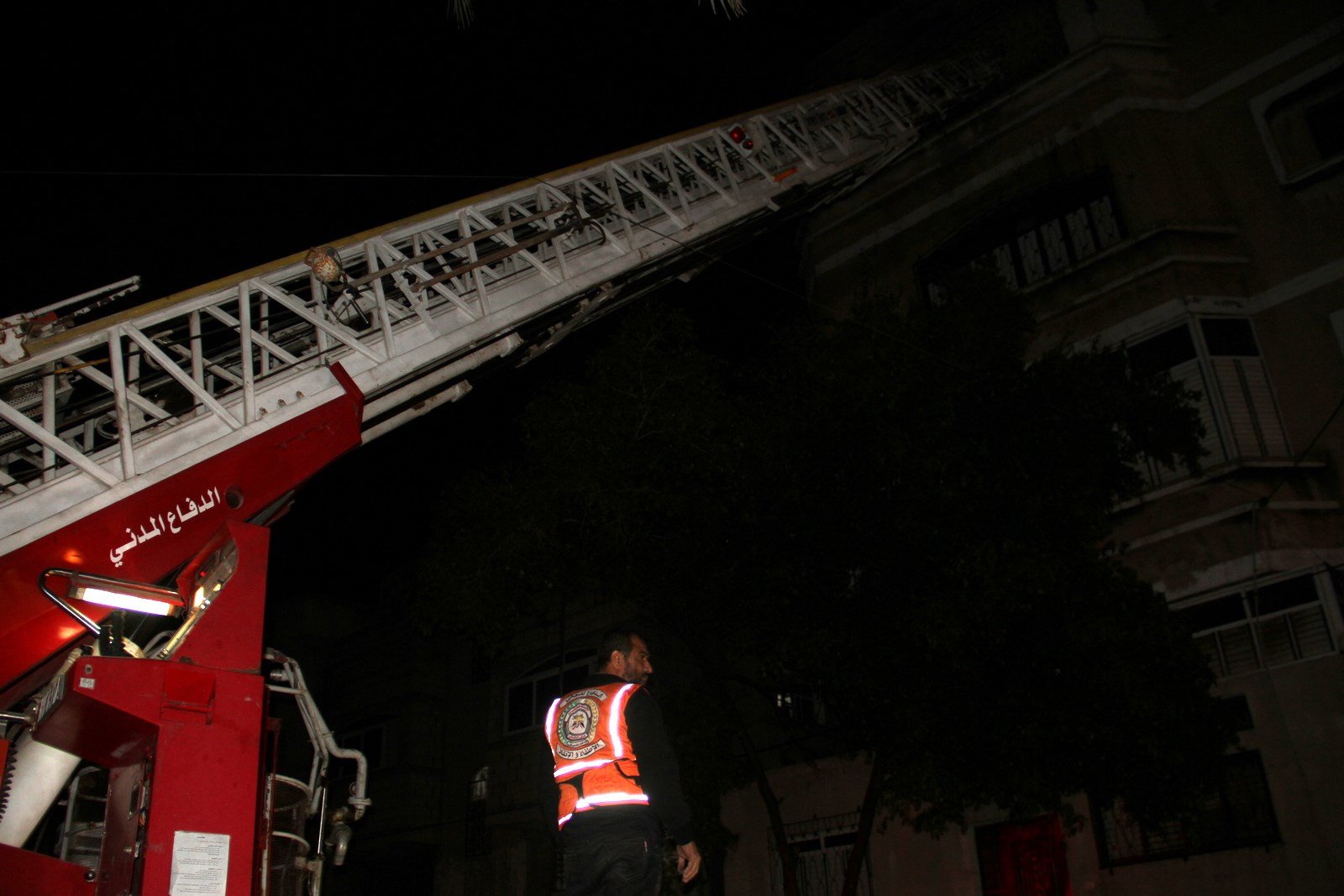 صور من تعامل قوات الدفاع المدني والشرطة مع الحريق الكبير الذي اندلع في بناية سكنية بمخيم جباليا شمالي قطاع غزة مساء اليوم، وأدى لوفاة 21 مواطناً.